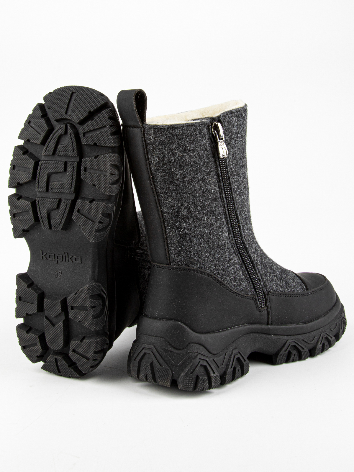 Теплые сапоги из войлока – надежная защита от холода даже при сильных морозах. Подкладка выполнена из 30% шерстяного меха, а стелька из 80% . Толстая подошва, состоящая из полимерного материала, обеспечивает легкость и, при этом, предотвращает скольжение.
