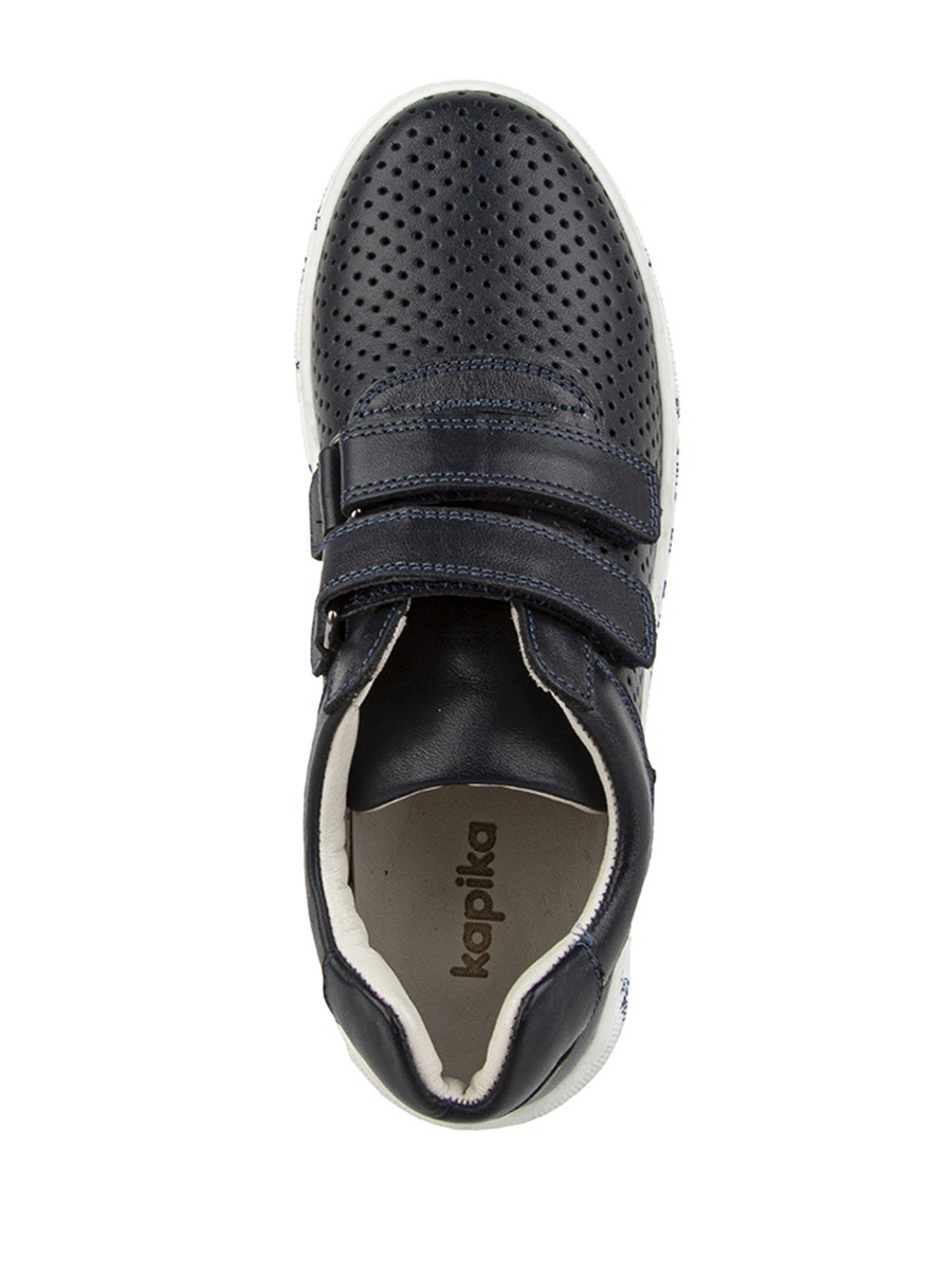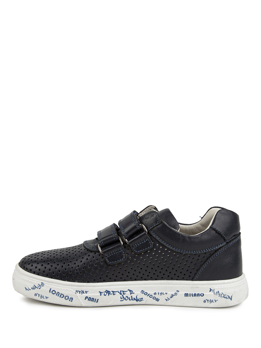 Полуботинки из натуральной кожи для мальчиков. Подкладка из натуральной кожи и антибактериальная кожаная стелька обеспечивают гигиеничность. Застежка в виде липучки ускоряет и облегчает процесс обувания. Гибкая износостойкая подошва дарит комфорт при носке. Модель подойдет в качестве сменной обуви.