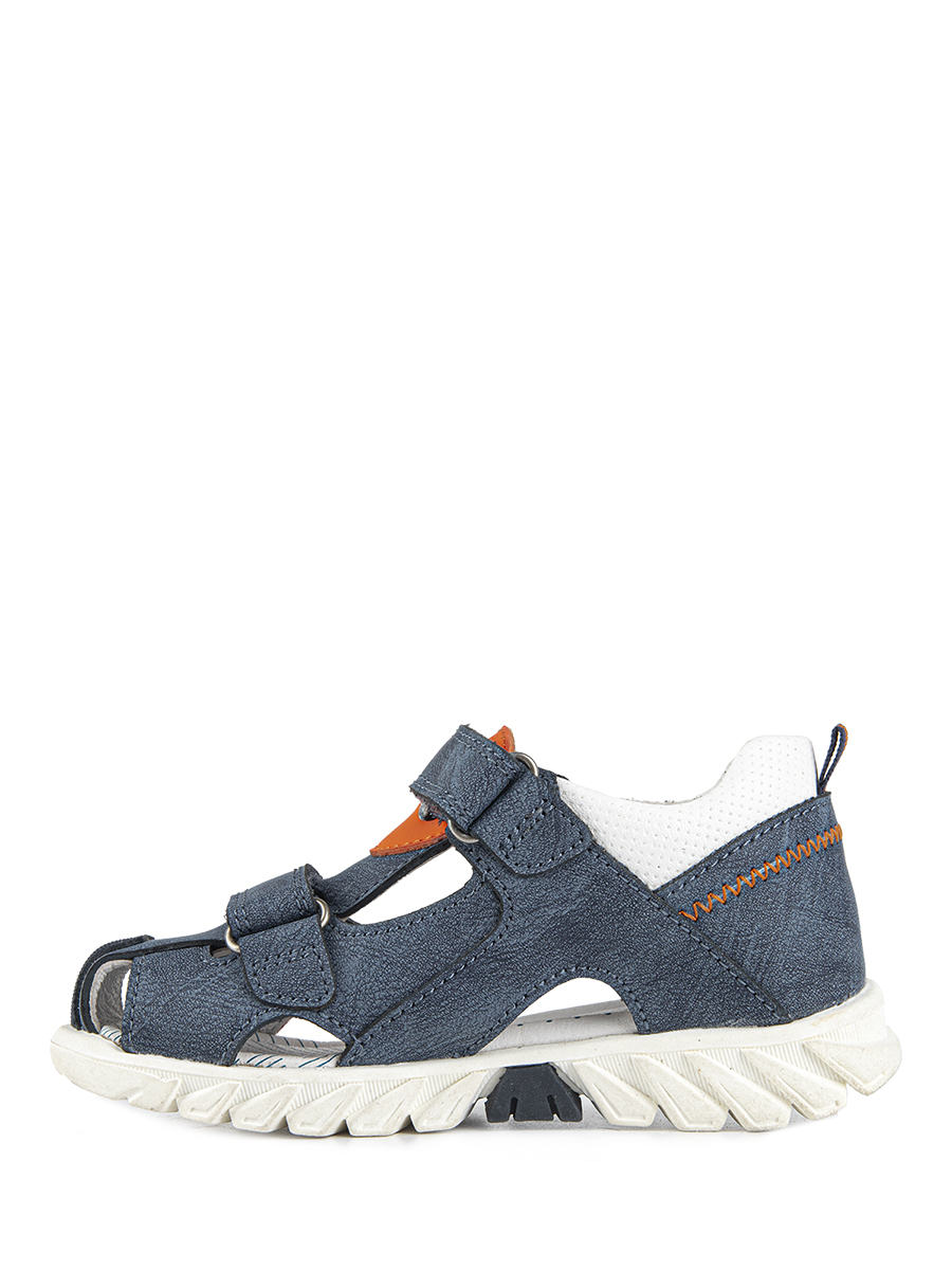 Модные сандалий для мальчика. Верх модели сочетает в себе натуральную кожу и экокожу. Наличие жесткого задника и подсводника обеспечивает правильную фиксацию стопы и профилактический эффект для всего опорно-двигательного аппарата. Натуральная кожа в подкладке и стельке обеспечит комфортное ношение в течении дня. Застежки- липучки позволяют регулировать обувь по полноте. Долговечная ТЭП подошва продлевает срок службы обуви.