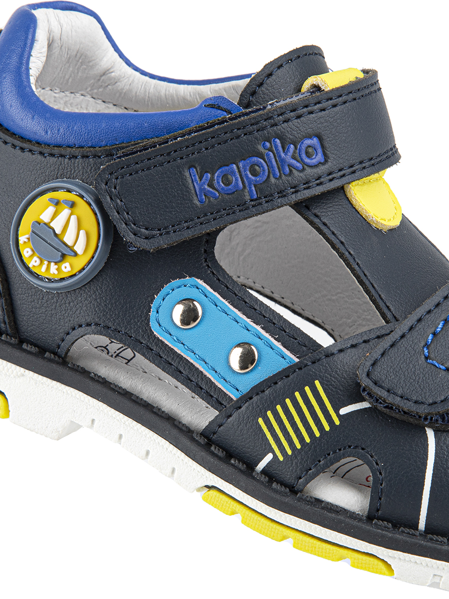 Сандалий для мальчика с верхом из высокопрочной искусственной кожи. Наличие жесткого задника и подсводника обеспечивает правильную фиксацию стопы и профилактический эффект для всего опорно-двигательного аппарата. Натуральная кожа в подкладке и стельке обеспечит комфортное ношение в течении дня. Застежки- липучки позволяют регулировать обувь по полноте. Долговечная ТЭП подошва продлевает срок службы обуви.