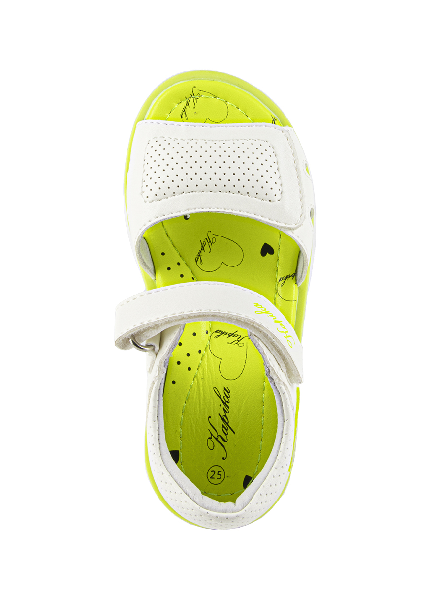 Эти сандалии для девочки изготовлены из искусственного материала для верхней части, но имеют подкладку и стельку из натуральной кожи для комфорта. Они также имеют жесткий задник и подсводник для поддержки и формирования правильной формы стопы. Подошва сделана из термопластичной резины (TPR), что обеспечивает долговечность и сцепление с поверхностью.