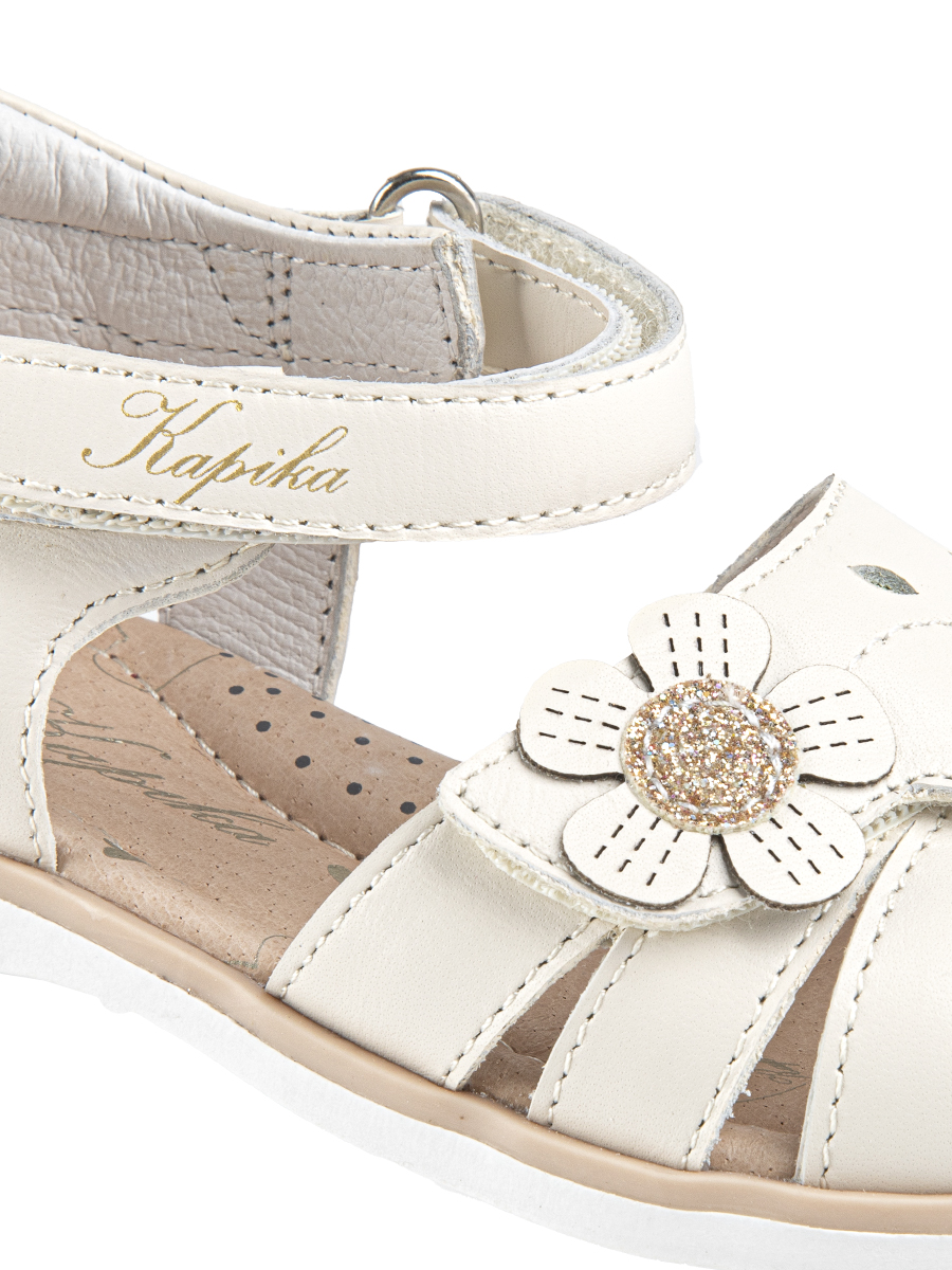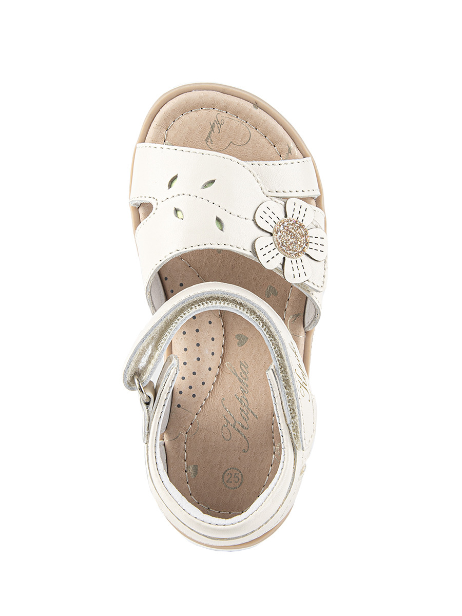 Сандалии для девочки изготовлены из натуральной кожи (верх, подкладка и стелька). Сандалии имеют жесткий задник и подсводник для поддержки и формирования правильной формы стопы. Подошва произведена из термопластичной резины (TPR), что обеспечивает долговечность и хорошее сцепление с поверхностью.