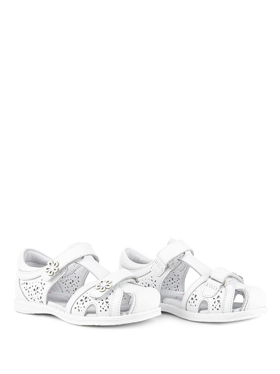 Сандалии для девочки изготовлены из натуральной кожи (верх, подкладка и стелька). Сандалии имеют жесткий задник и подсводник для поддержки и формирования правильной формы стопы. Подошва произведена из термопластичной резины (TPR), что обеспечивает долговечность и хорошее сцепление с поверхностью.