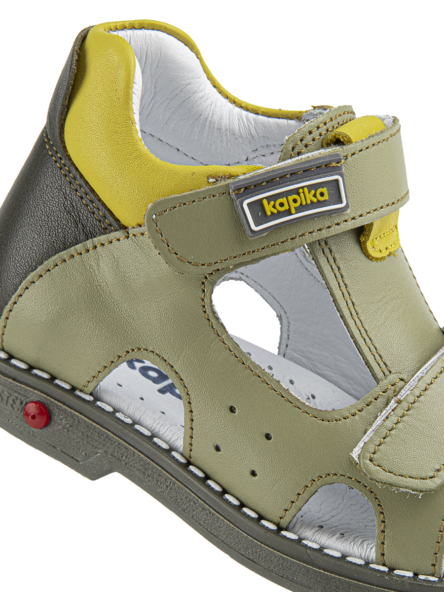 Кожаные босоножки на первый шаг удовлетворяют всем требованиям этой категории: жесткий задник, наличие подсводника и каблука Томаса обеспечивают правильную фиксацию стопы и профилактический эффект для всего опорно-двигательного аппарата. Застежки- липучки позволяют регулировать обувь по полноте. ТЭП подошва обеспечивает долговечность и гибкость, оставаясь при этом довольно легкой.