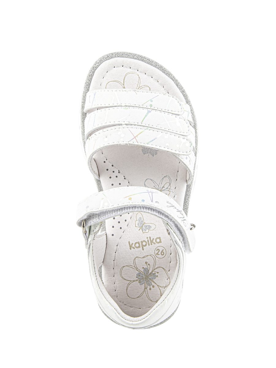 Эти сандалии для девочки изготовлены из искусственного материала для верхней части, но имеют подкладку и стельку из натуральной кожи для комфорта. Они также имеют жесткий задник и подсводник для поддержки и формирования правильной формы стопы. Подошва сделана из термопластичной резины (TPR), что обеспечивает долговечность и сцепление с поверхностью.