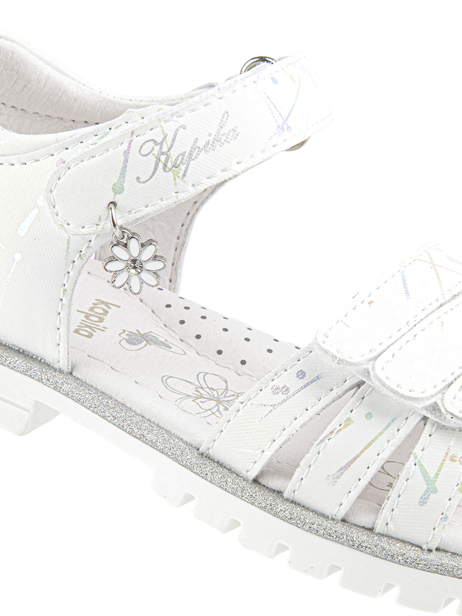 Эти сандалии для девочки изготовлены из искусственного материала для верхней части, но имеют подкладку и стельку из натуральной кожи для комфорта. Они также имеют жесткий задник и подсводник для поддержки и формирования правильной формы стопы. Подошва сделана из термопластичной резины (TPR), что обеспечивает долговечность и сцепление с поверхностью.