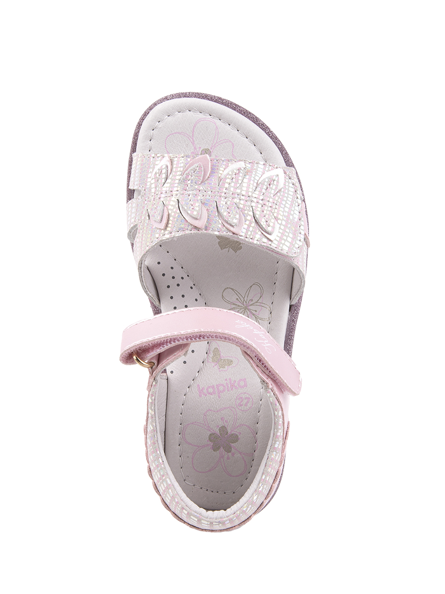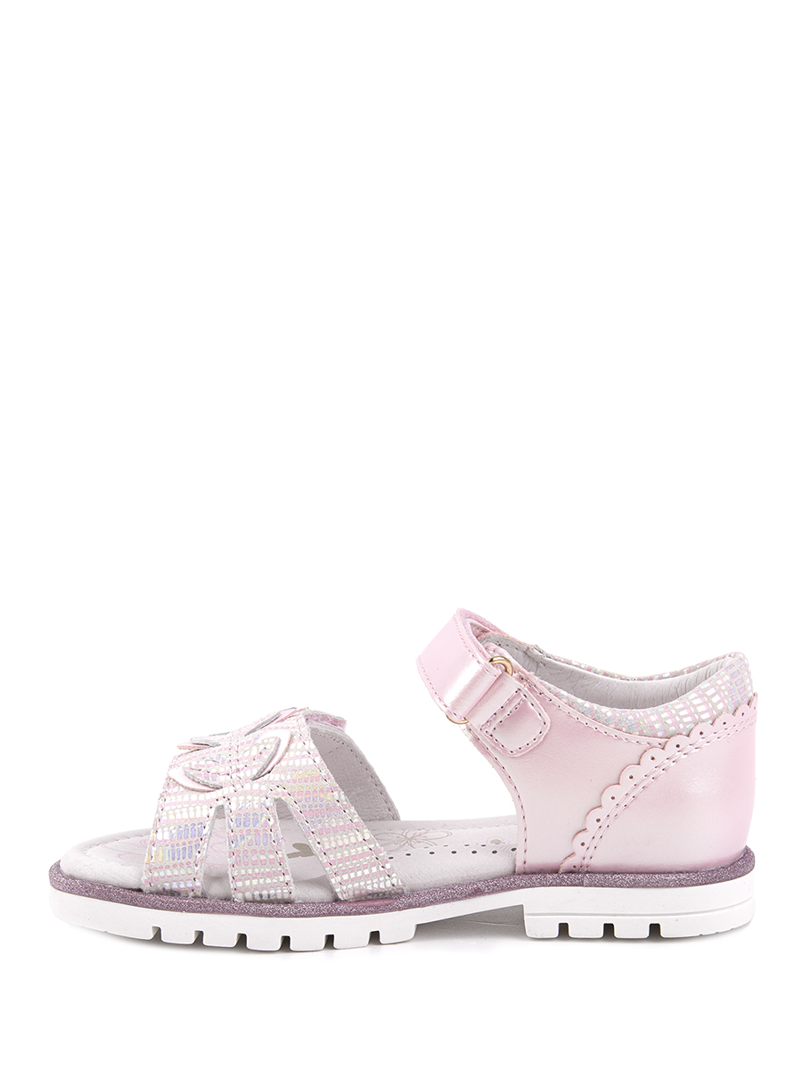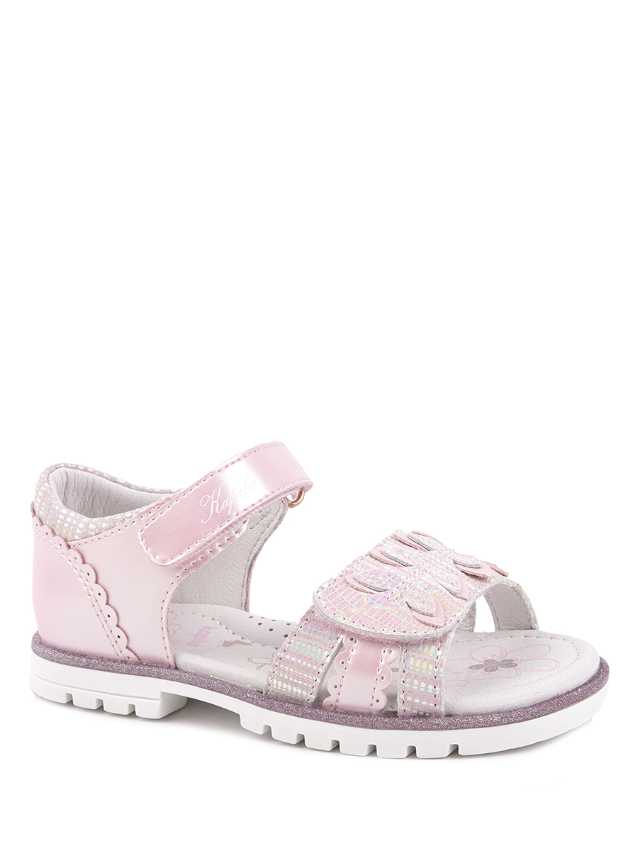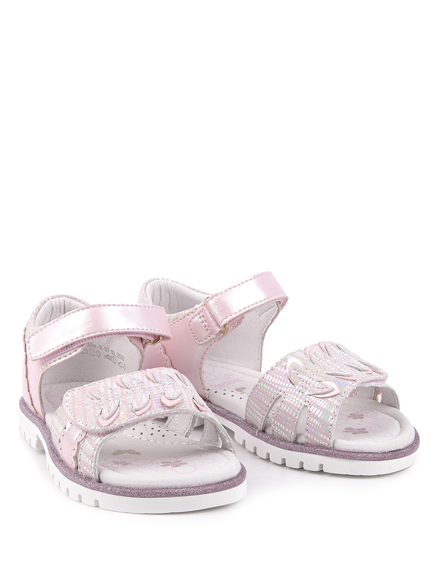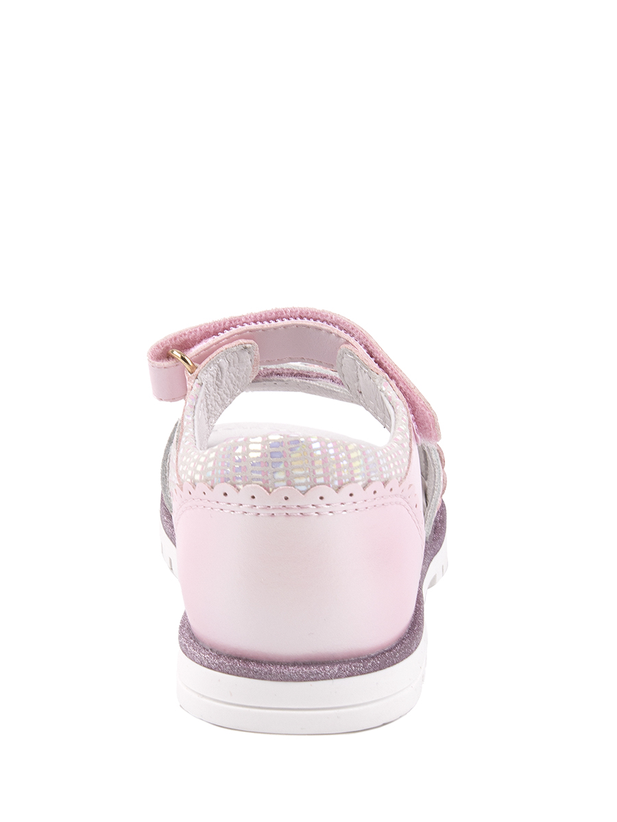 Сандалии для девочки с комбинированным материалом верха. Подкладка и стелька из натуральной кожи. Жесткий задник и подсводник обеспечивают правильную постановку стопы и комфорт. Долговечная ТЭП подошва продлевает срок службы обуви.