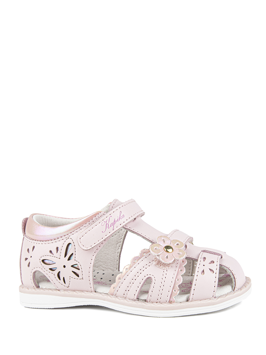Сандалии для девочки из натуральной кожи. Подкладка и стелька из натуральной кожи. Жесткий задник и подсводник обеспечивают правильную постановку стопы и комфорт, а закрытый мыс, дополнительную защиту пальчиков. Долговечная ТЭП подошва продлевает срок службы обуви.