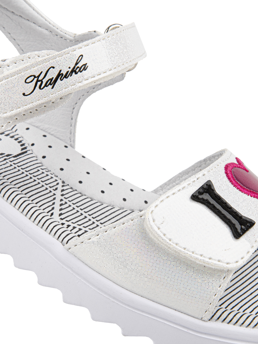 Модные босоножки для девочки с верхом из высокопрочной искуственной кожи, будут надежно фиксироваться на ноге, за счет липучки. Натуральная кожа в подкладке и стельке обеспечит комфортное ношение в течении дня. Облегченная подошва отличается отличной амортизацией.