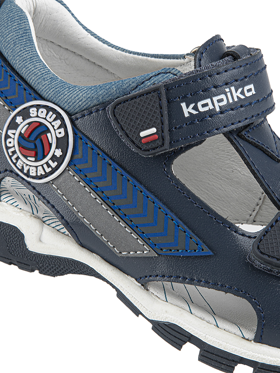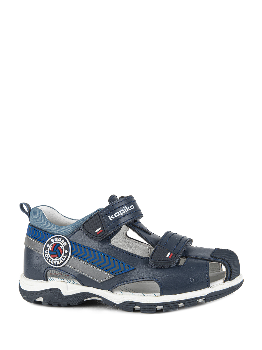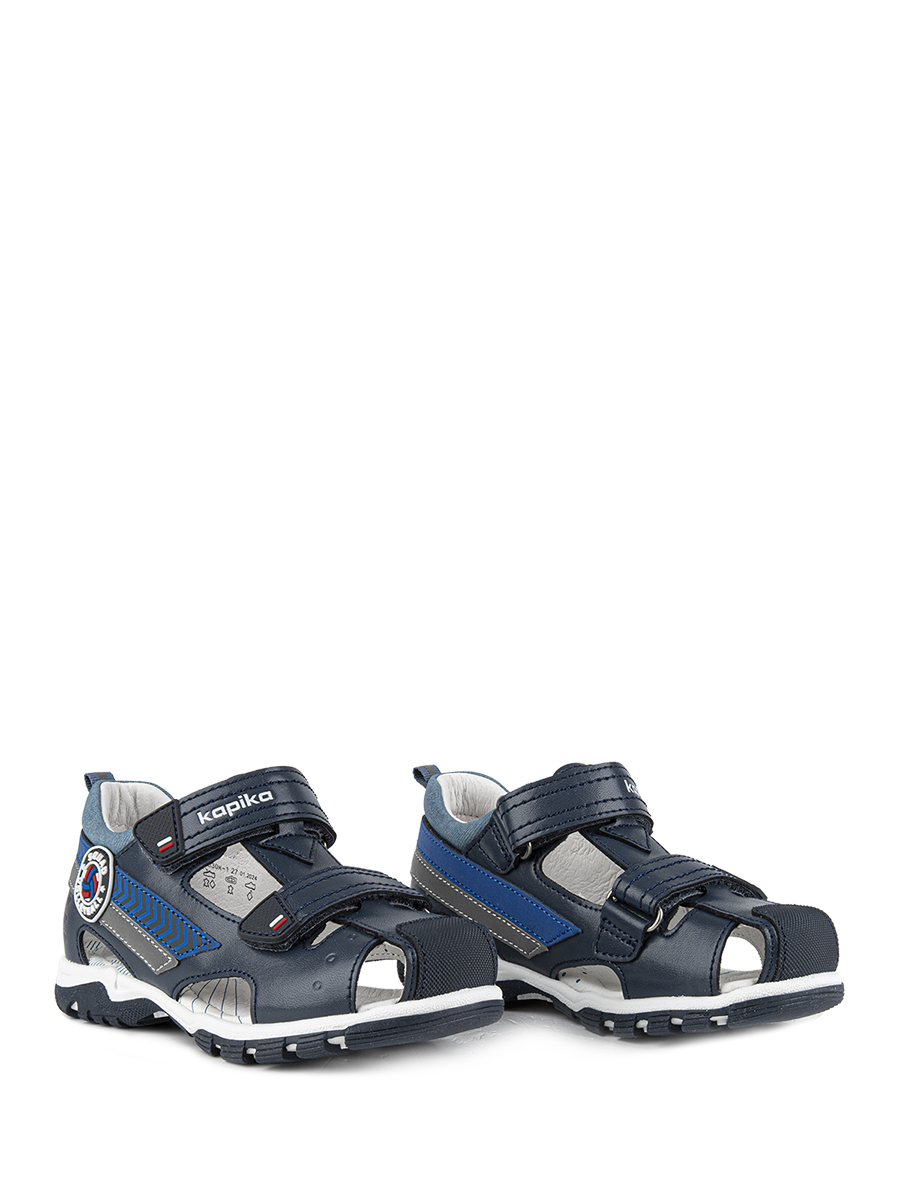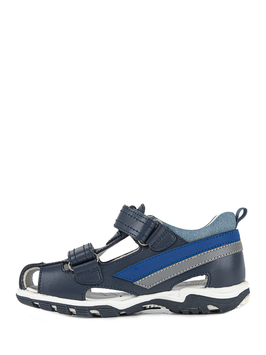 Модные сандалий для мальчика. Верх модели сочетает в себе натуральную кожу и экокожу. Наличие жесткого задника и подсводника обеспечивает правильную фиксацию стопы и профилактический эффект для всего опорно-двигательного аппарата. Натуральная кожа в подкладке и стельке обеспечит комфортное ношение в течении дня. Застежки- липучки позволяют регулировать обувь по полноте. Долговечная ТЭП подошва продлевает срок службы обуви.