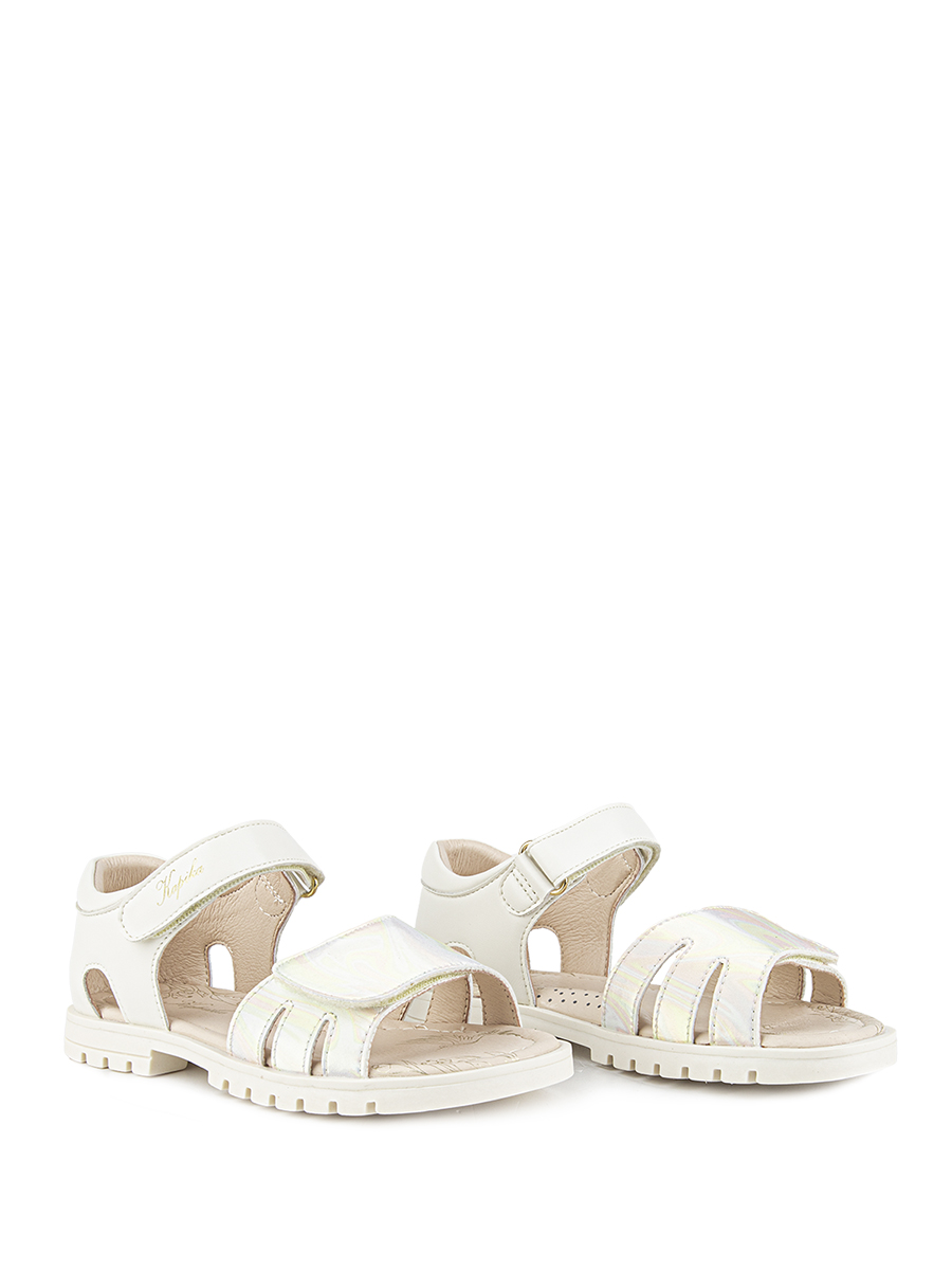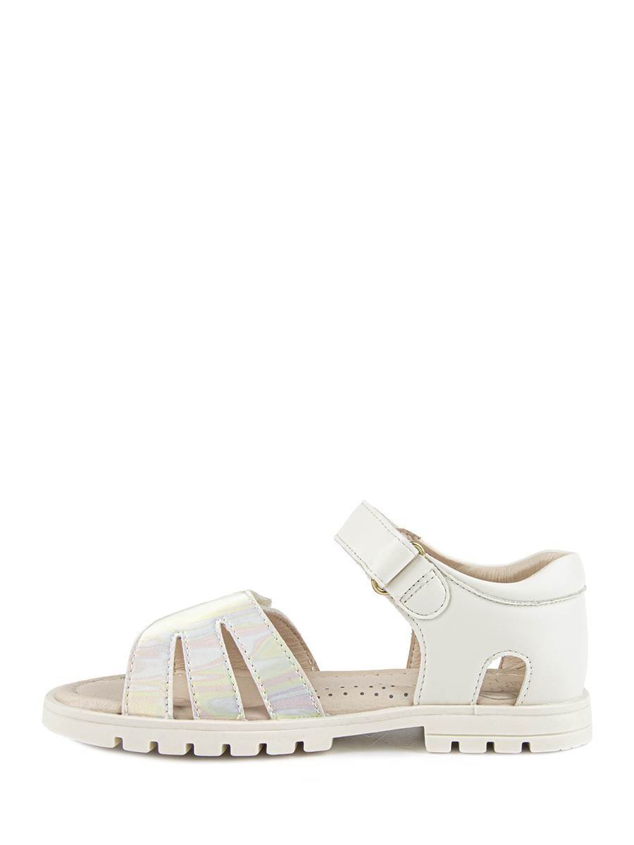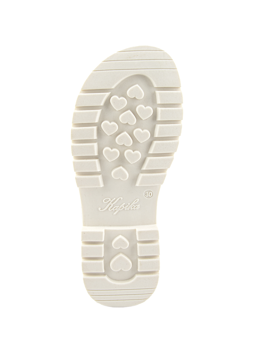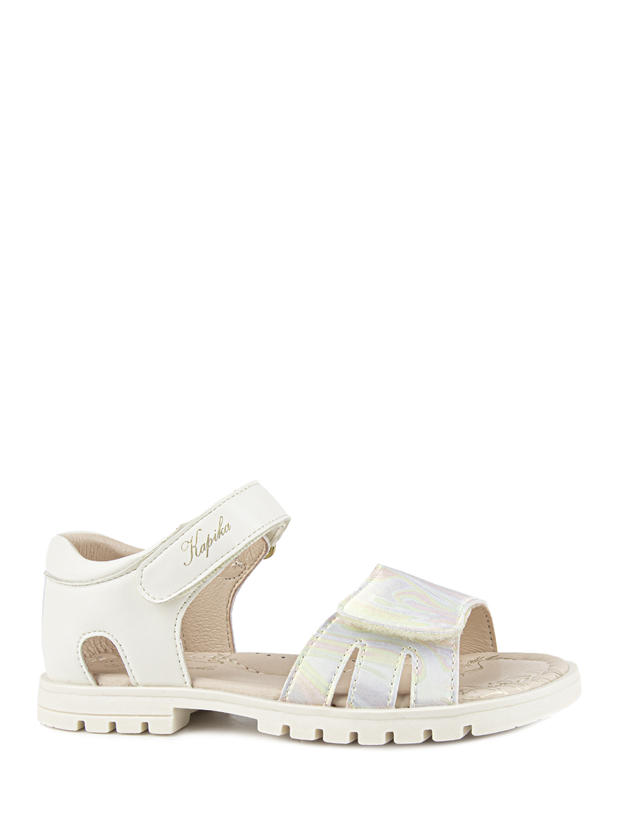 Эти сандалии для девочки изготовлены из искусственного материала для верхней части, но имеют подкладку и стельку из натуральной кожи для комфорта. Они также имеют жесткий задник и подсводник для поддержки и формирования правильной формы стопы. Подошва сделана из термопластичной резины (TPR), что обеспечивает долговечность и сцепление с поверхностью.