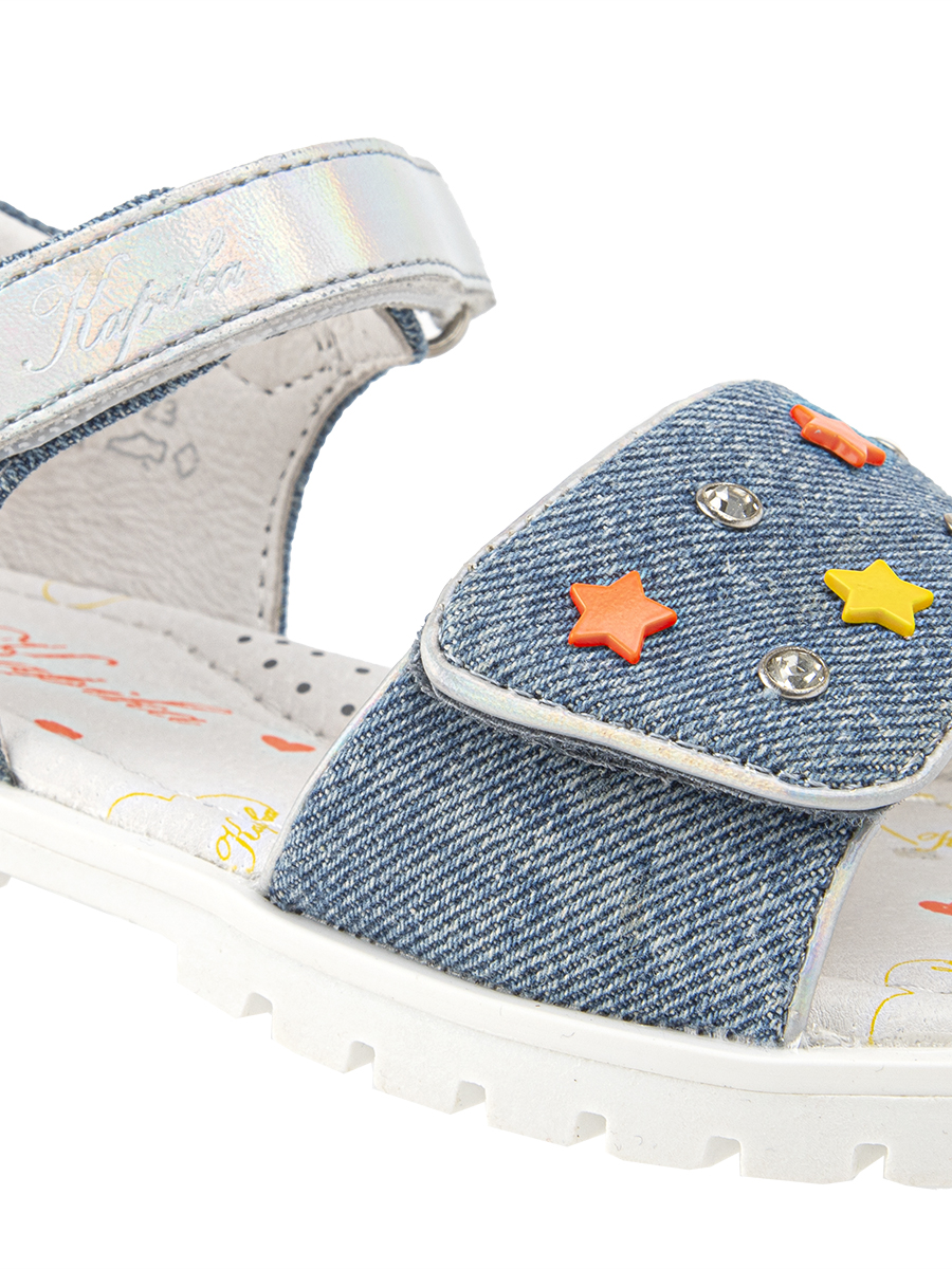 Эти сандалии для девочки изготовлены из текстиля и искусственного материала для верхней части, но имеют подкладку и стельку из натуральной кожи для комфорта. Они также имеют жесткий задник и подсводник для поддержки и формирования правильной формы стопы. Подошва сделана из термопластичной резины (TPR), что обеспечивает долговечность и сцепление с поверхностью.