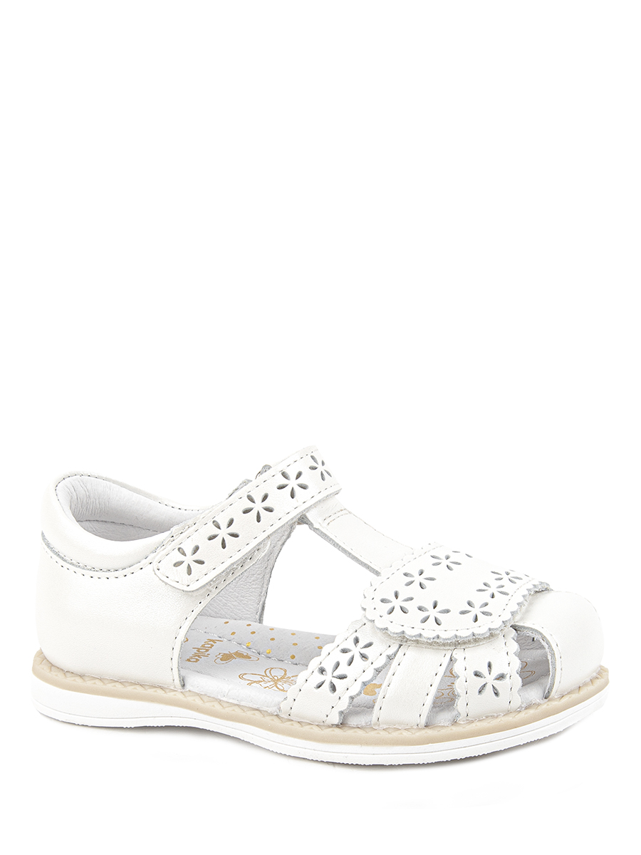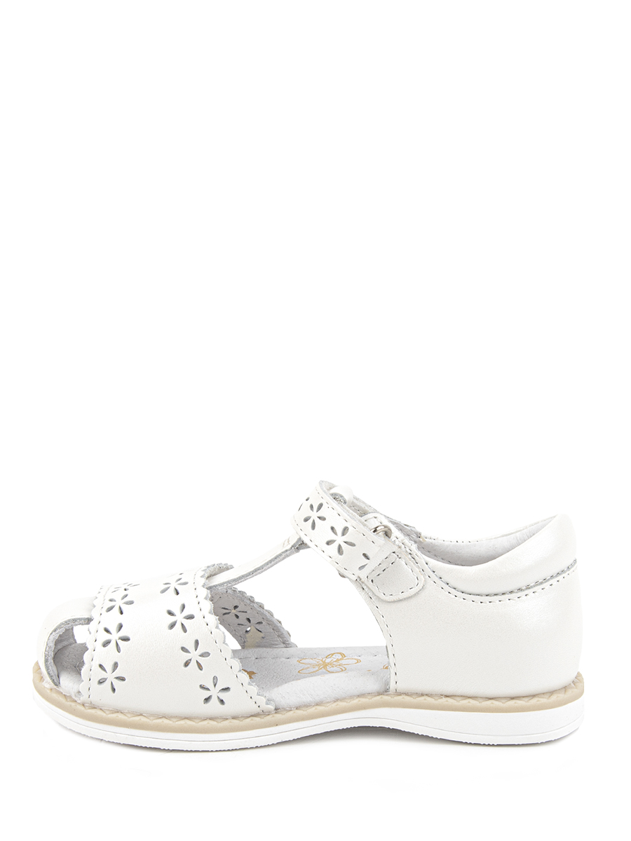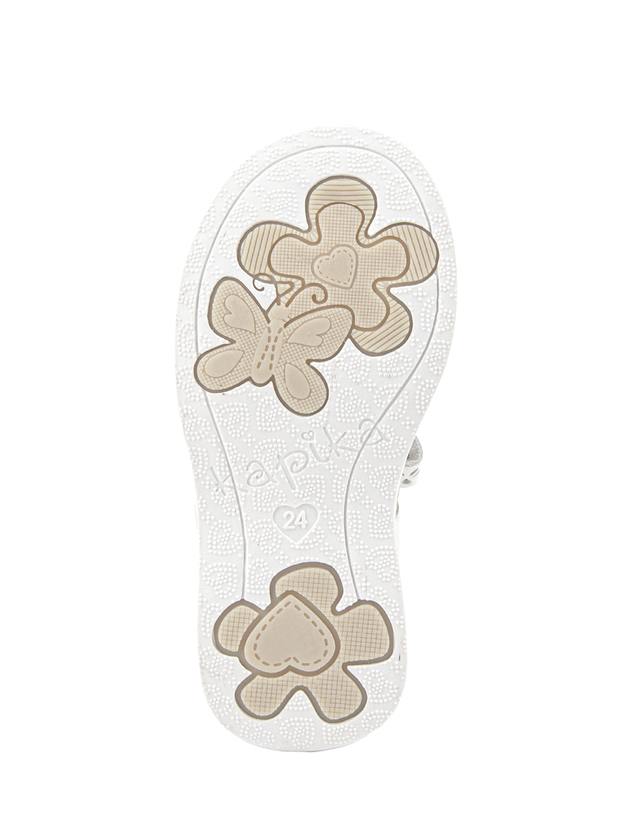 Сандалии для девочки изготовлены из натуральной кожи (верх, подкладка и стелька). Сандалии имеют жесткий задник и подсводник для поддержки и формирования правильной формы стопы. Подошва произведена из термопластичной резины (TPR), что обеспечивает долговечность и хорошее сцепление с поверхностью.