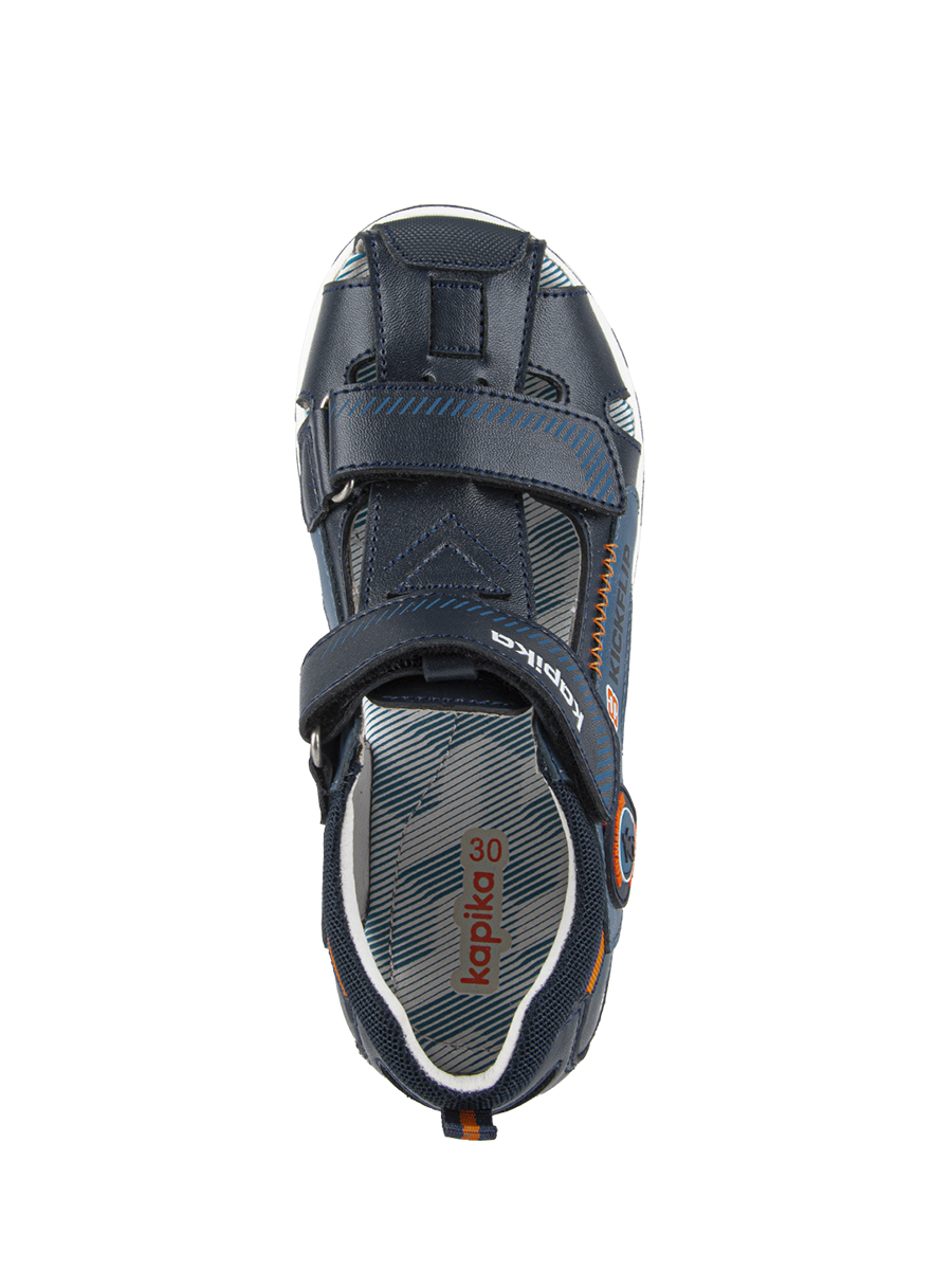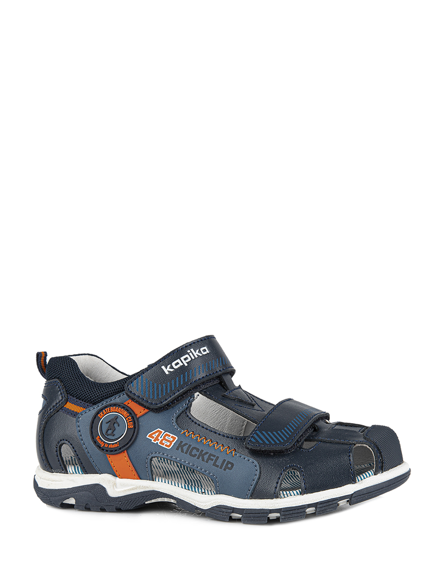 Закрытые сандалии для мальчика. Верх модели сделан из натуральной кожи. Наличие жесткого задника и подсводника обеспечивает правильную фиксацию стопы и профилактический эффект для всего опорно-двигательного аппарата. Натуральная кожа в подкладке и стельке обеспечит комфортное ношение в течении дня. Застежки- липучки позволяют регулировать обувь по полноте. Долговечная ТЭП подошва продлевает срок службы обуви.
