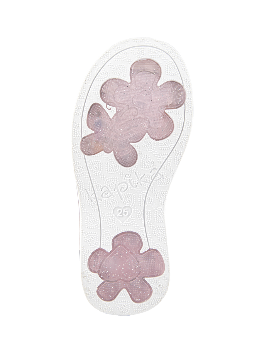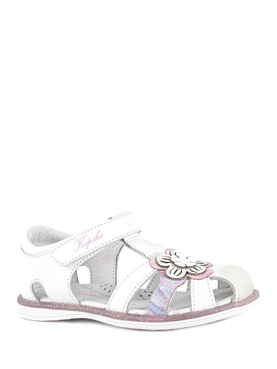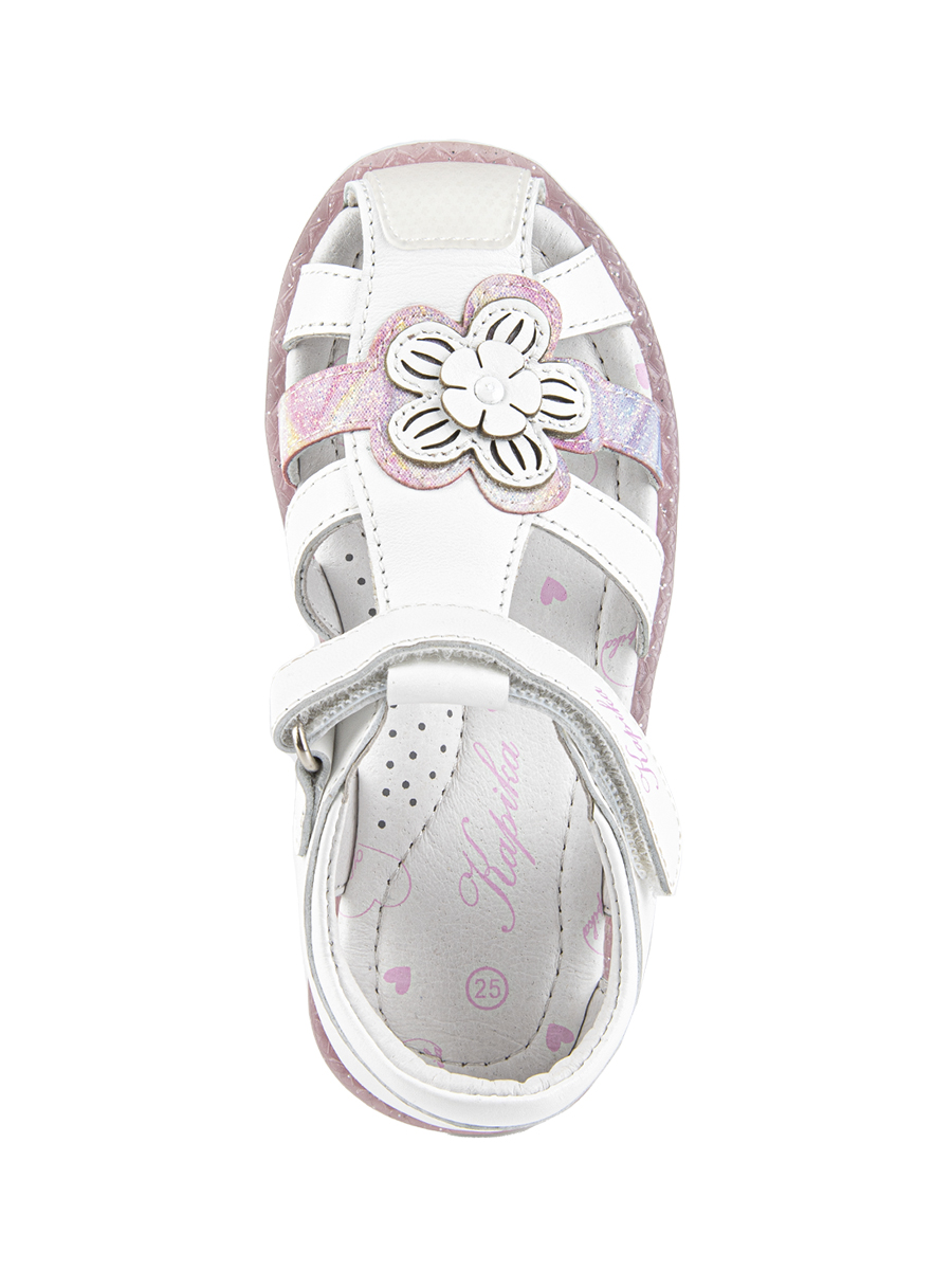 Сандалии для девочки с комбинированным материалом верха. Подкладка и стелька из натуральной кожи. Жесткий задник и подсводник обеспечивают правильную постановку стопы и комфорт. Долговечная ТЭП подошва продлевает срок службы обуви.