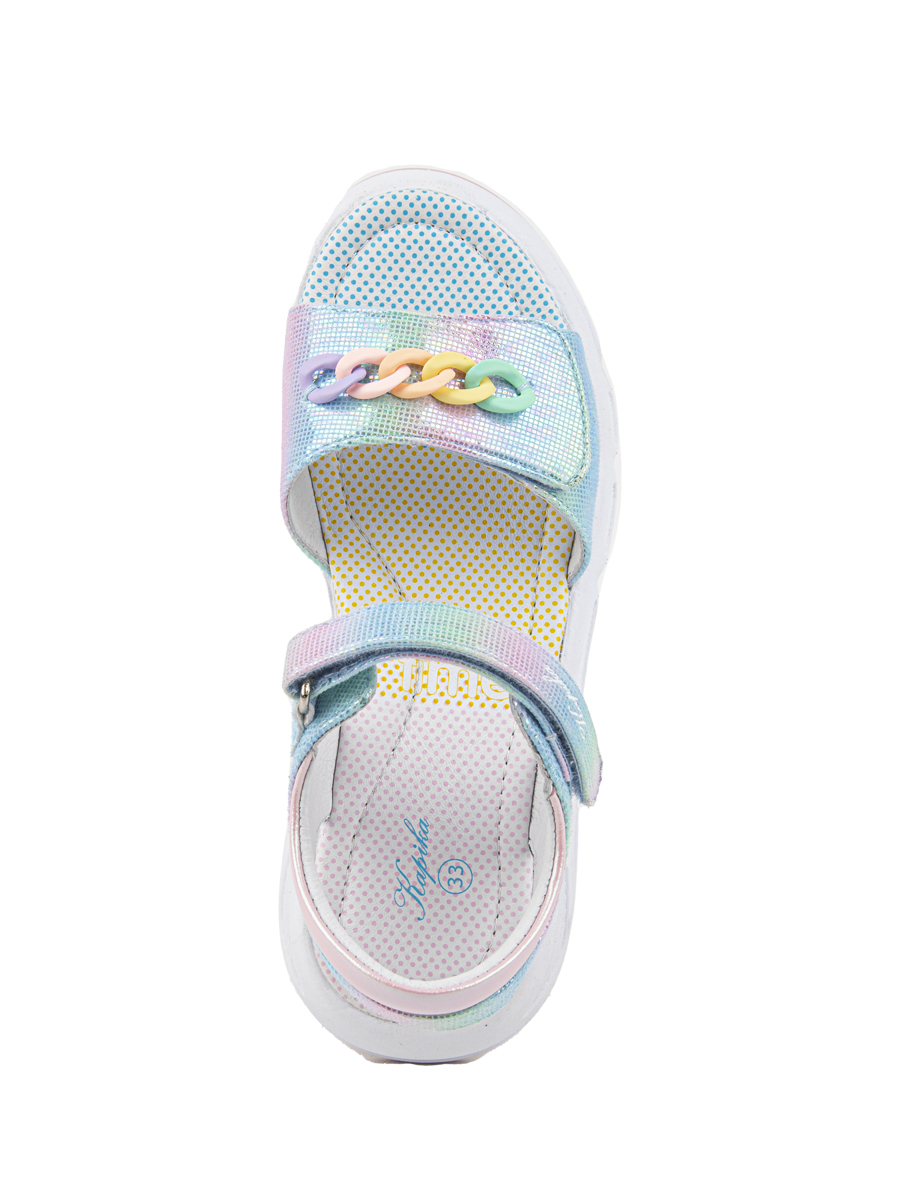 Модные босоножки для девочки с верхом из высокопрочной искуственной кожи, будут надежно фиксироваться на ноге, за счет липучки. Натуральная кожа в подкладке и стельке обеспечит комфортное ношение в течении дня. Облегченная подошва отличается отличной амортизацией.