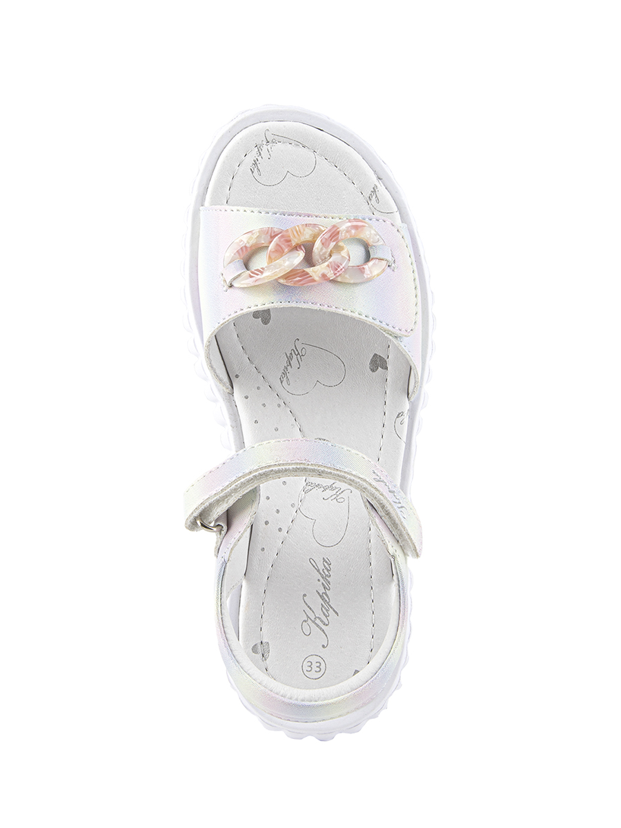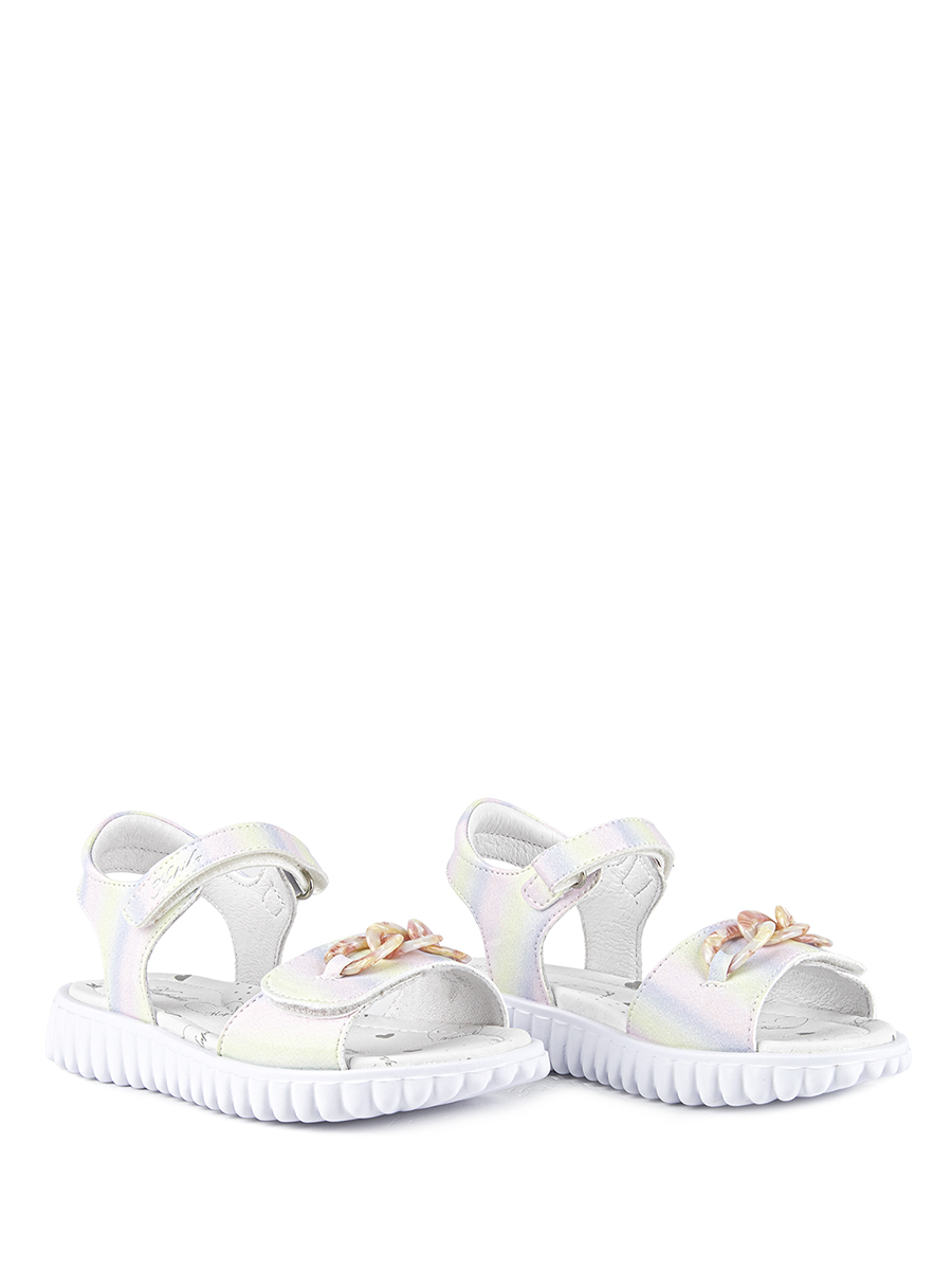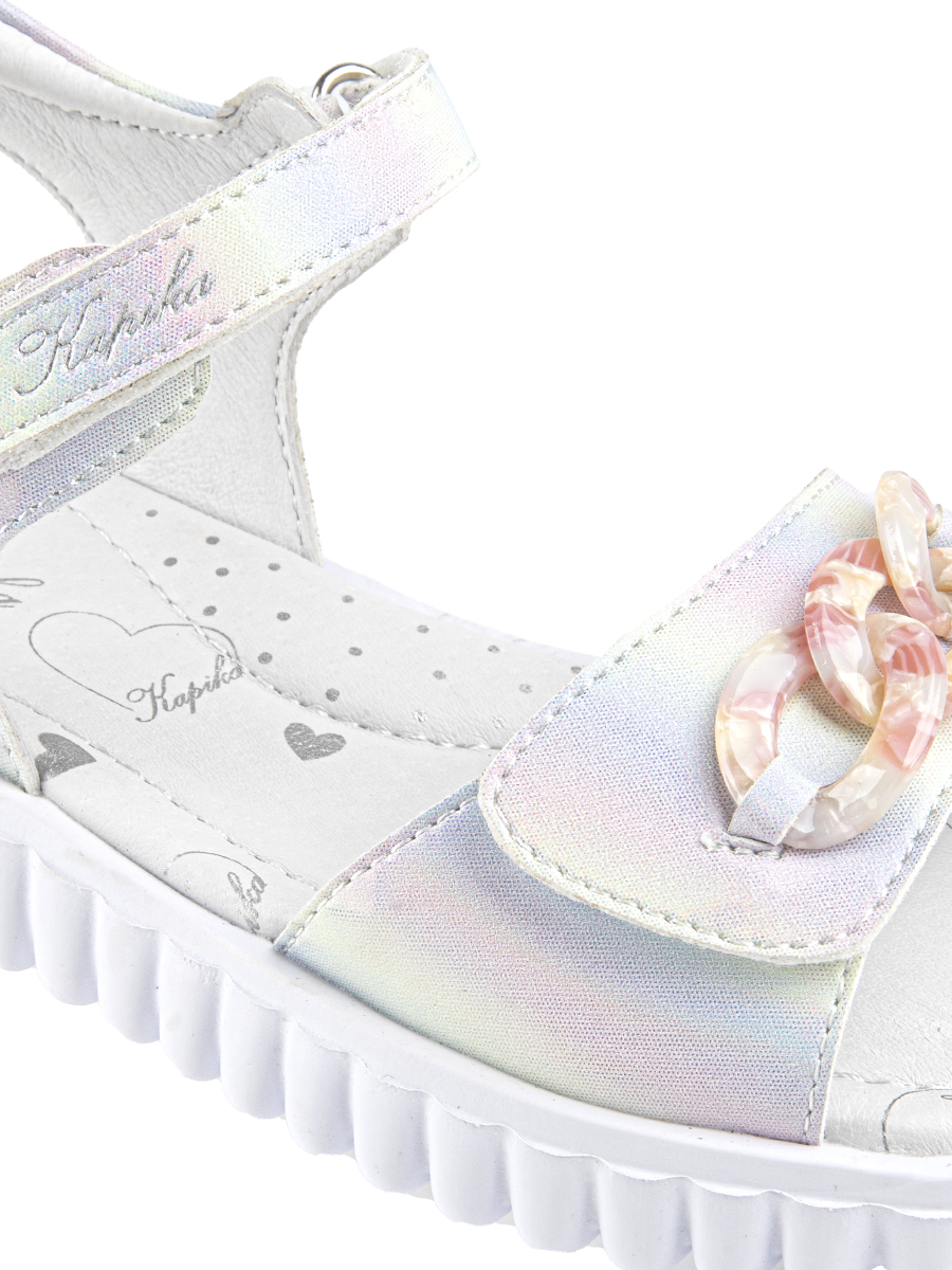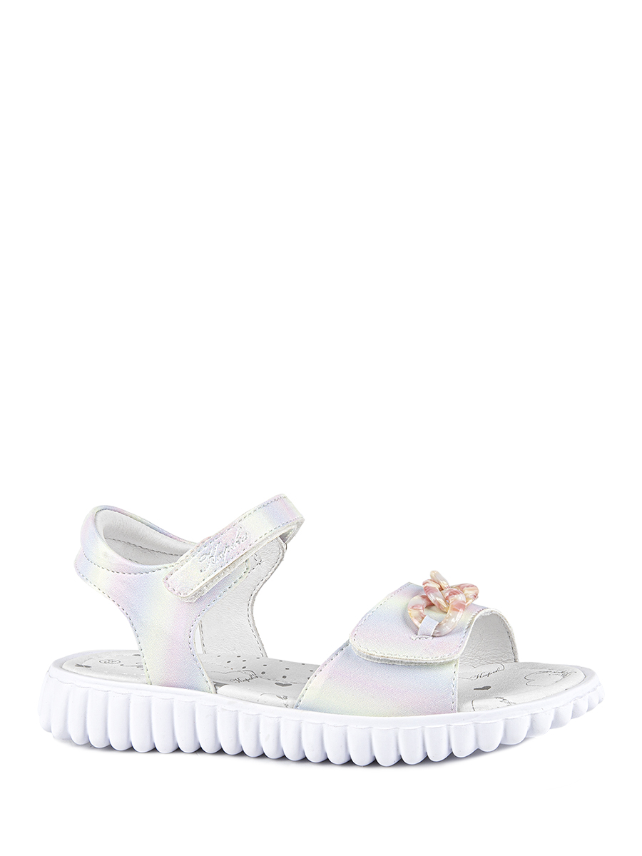 Сандалии для девочки с с верхом из высокопрочной искуственной кожи. Подкладка и стелька из натуральной кожи, обеспечат комфортную носку в течении дня. Подсводник обеспечивают правильную постановку стопы и комфорт. Подошва выполнена из полиуретана и отличается отличной амортизацией и легкостью.