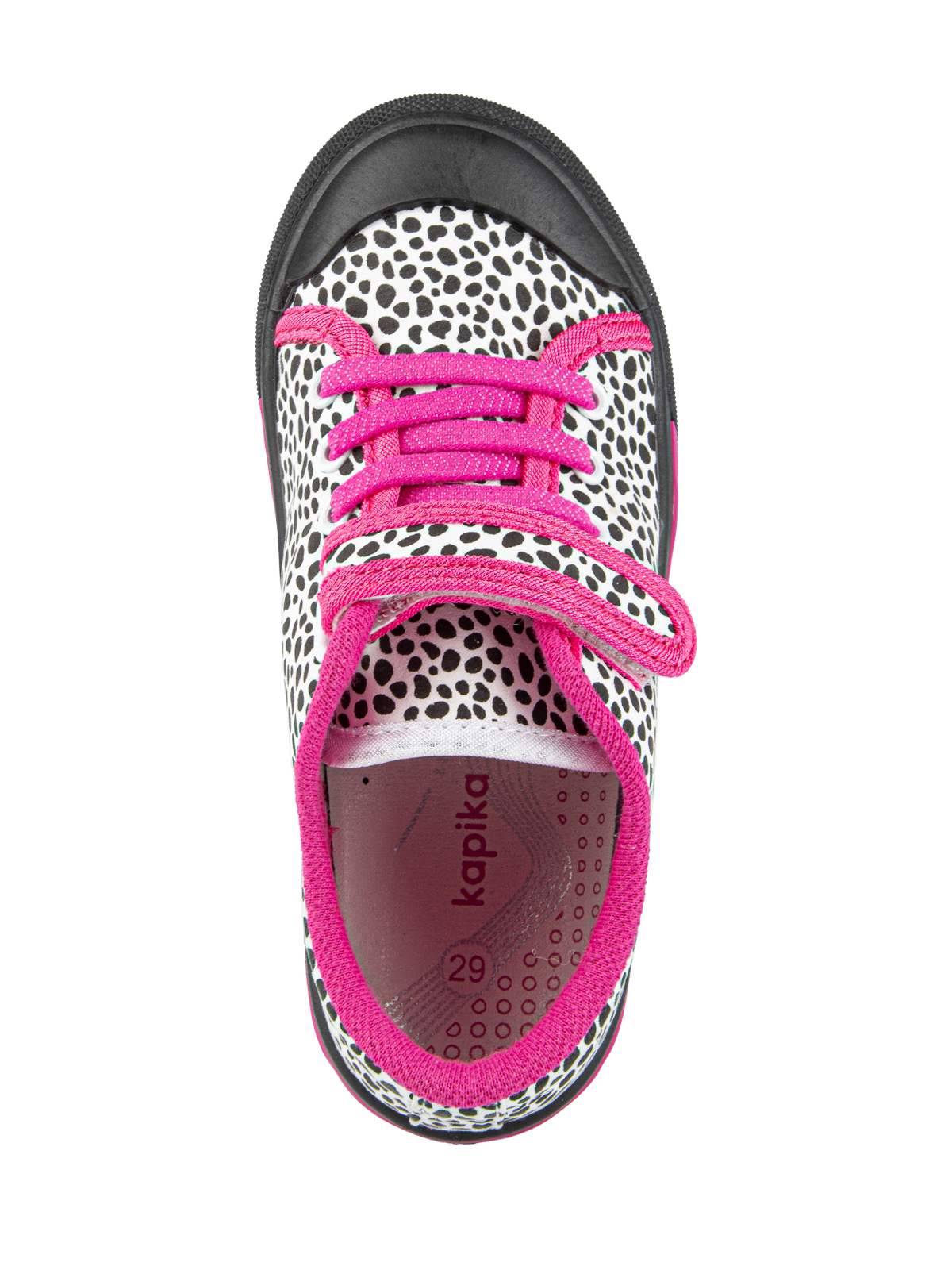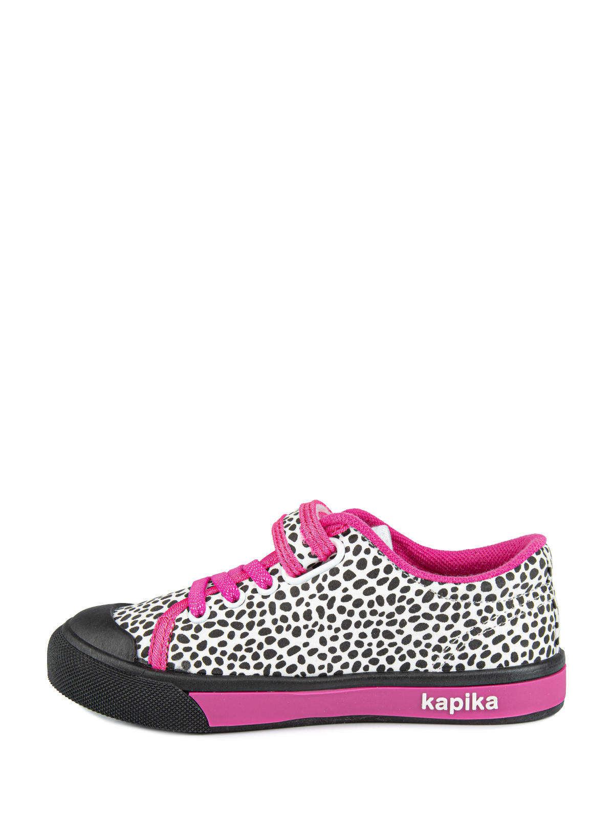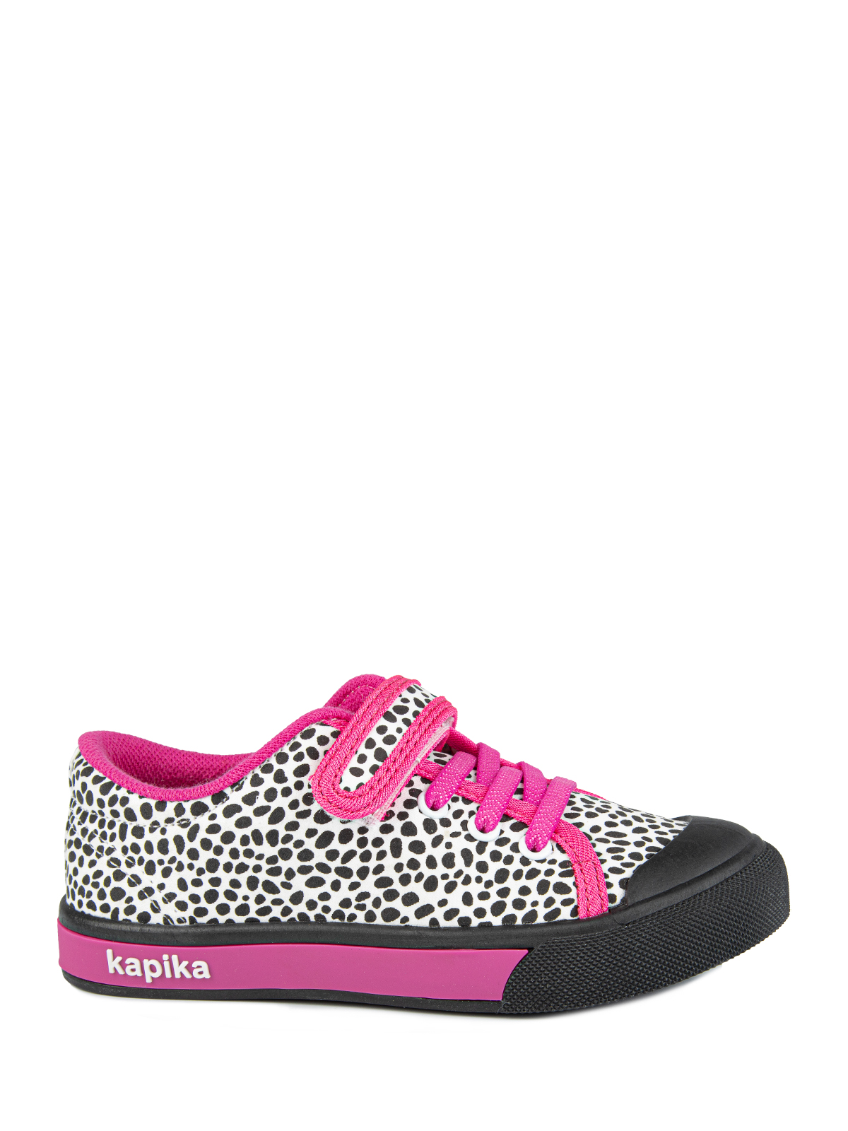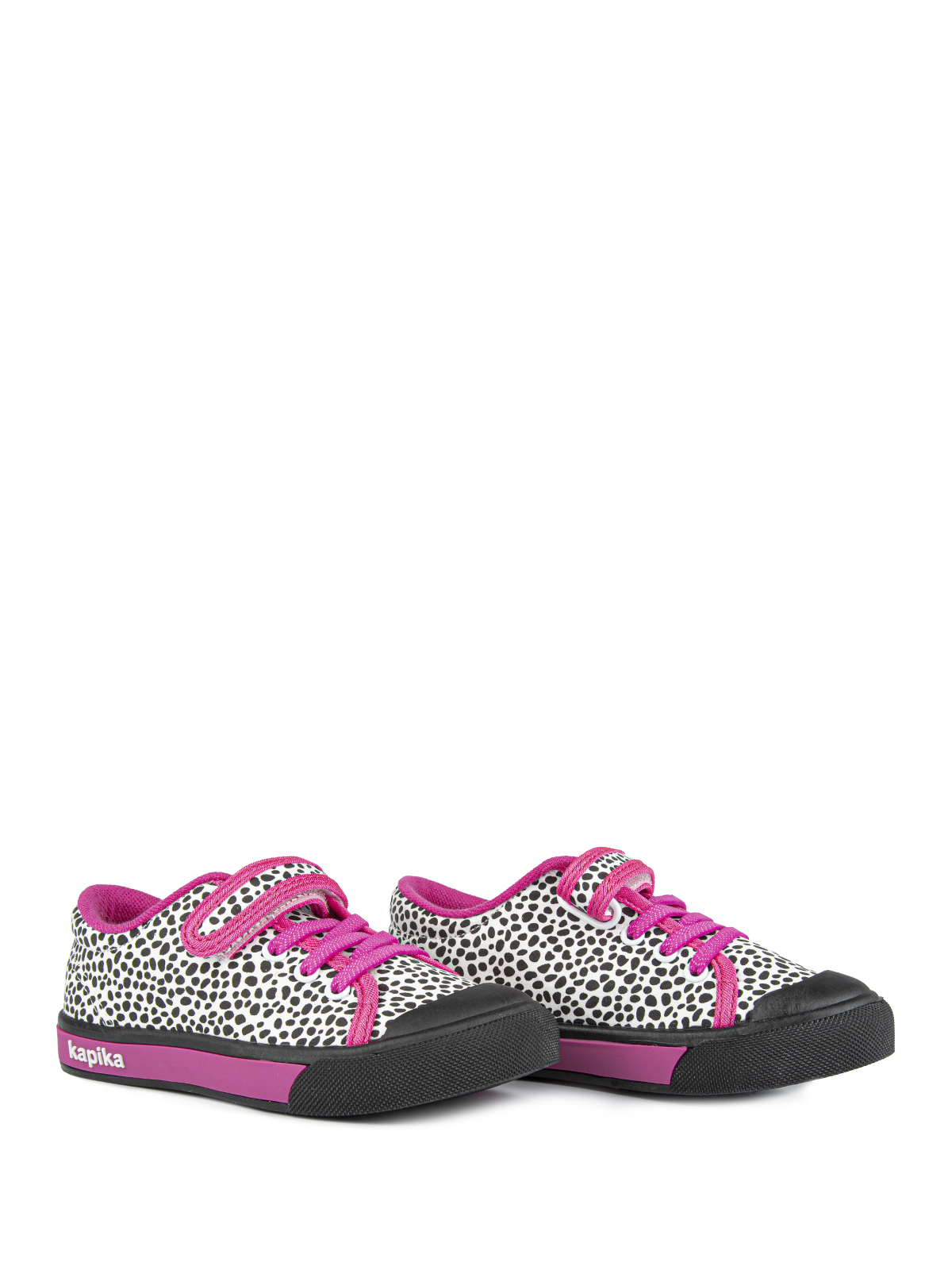 Кеды Капика из плотного хлопка с яркими застежками-липучками и принтом обязательно понравятся каждой девочке. Подкладка из хлопка, гибкая подошва с защищенной носовой частью из ПВХ и кожаная стелька обеспечивают комфорт и удобство при ношении. Капика создает качественную и стильную обувь для маленьких модниц.
