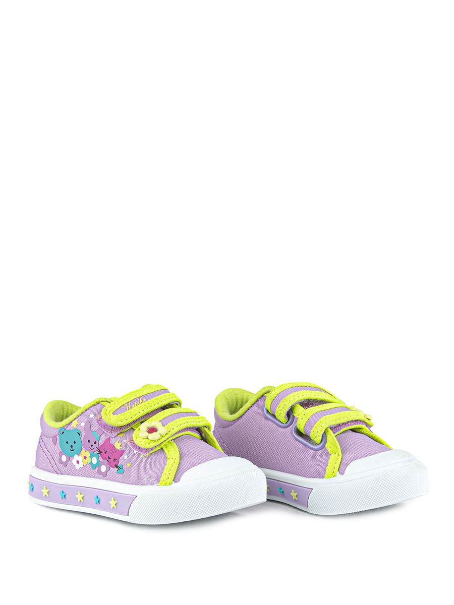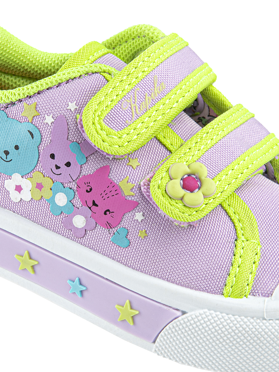 Кеды Капика из плотного хлопка с яркими застежками-липучками и принтом обязательно понравятся каждой девочке. Подкладка из хлопка, гибкая подошва с защищенной носовой частью из ПВХ и кожаная стелька обеспечивают комфорт и удобство при ношении. Капика создает качественную и стильную обувь для маленьких модниц.