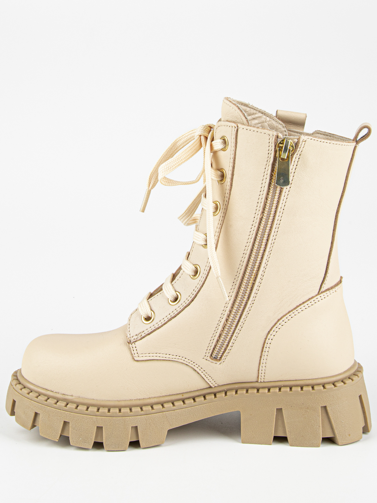Стильные демисезонные ботинки из натуральной кожи на массивной подошве. Утепленная подкладка с добавлением шерсти защищает от холода, долговечная ТЭП подошва продлевает срок службы обуви. Застежка молния облегчает процесс обувания.