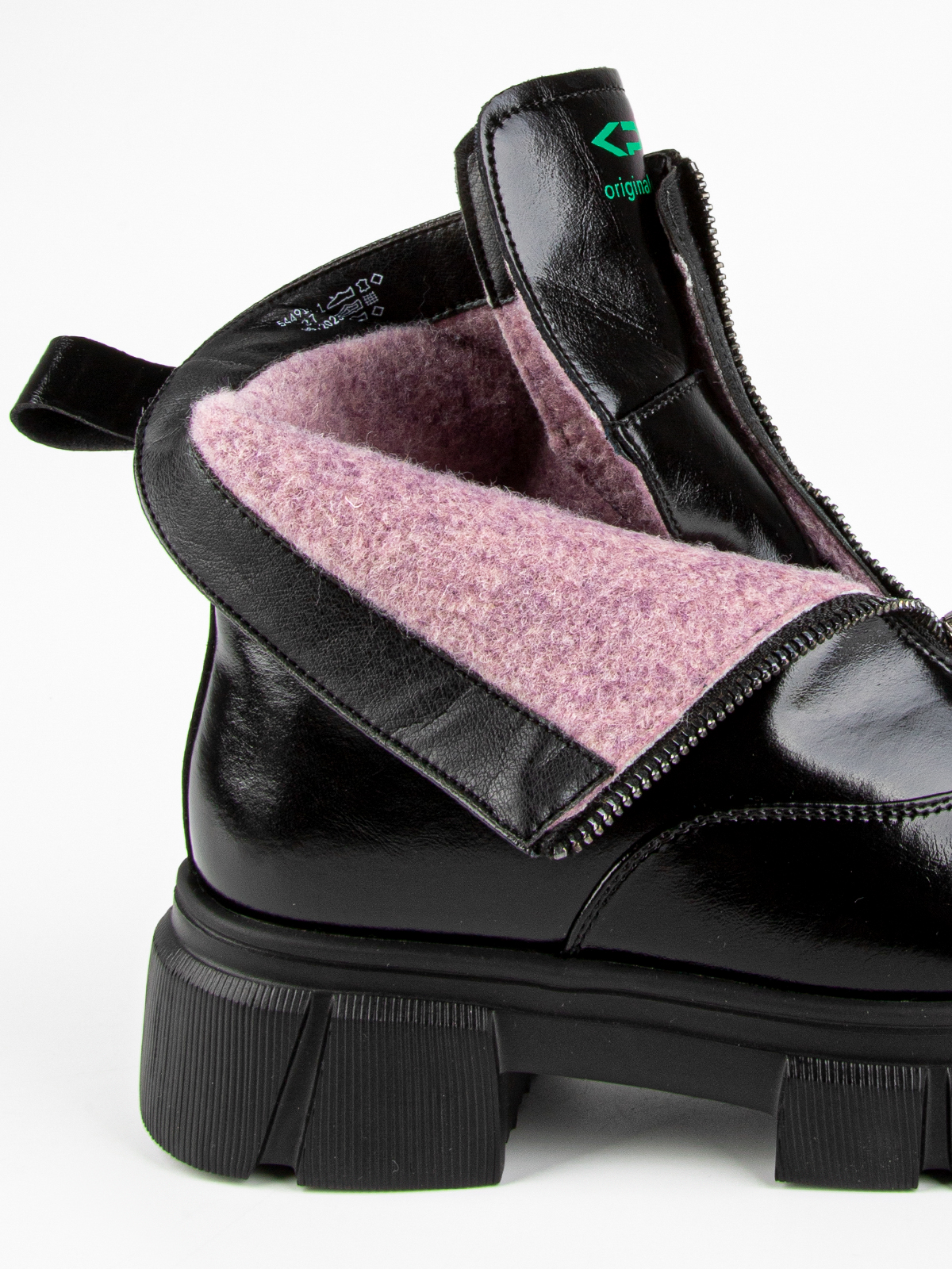 Стильные демисезонные ботинки для девочки.Утепленная подкладка с содержанием шерсти надежно защитит от холода. Подошва, состоящая из материалов ЭВА и резины, обеспечивает легкость и, при этом, предотвращает скольжение. Антибактериальная стелька обеспечит гигиеничность. Застежка молния облегчает процесс обувания.