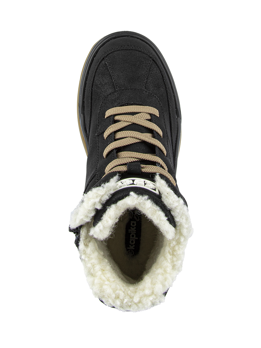 Зимние ботинки для девочки с подкладкой из шерстяного меха согреют даже в самые морозные дни. Благодаря противоскользящей подошве из полиуретана и ТЭПа, сохраняющего тепло в течение длительного времени, в этой обуви будет комфортно в любую погоду.