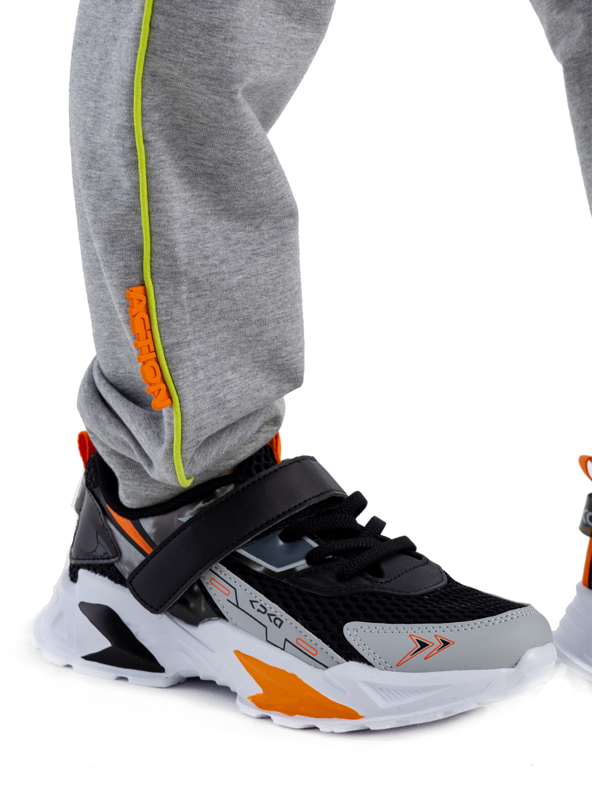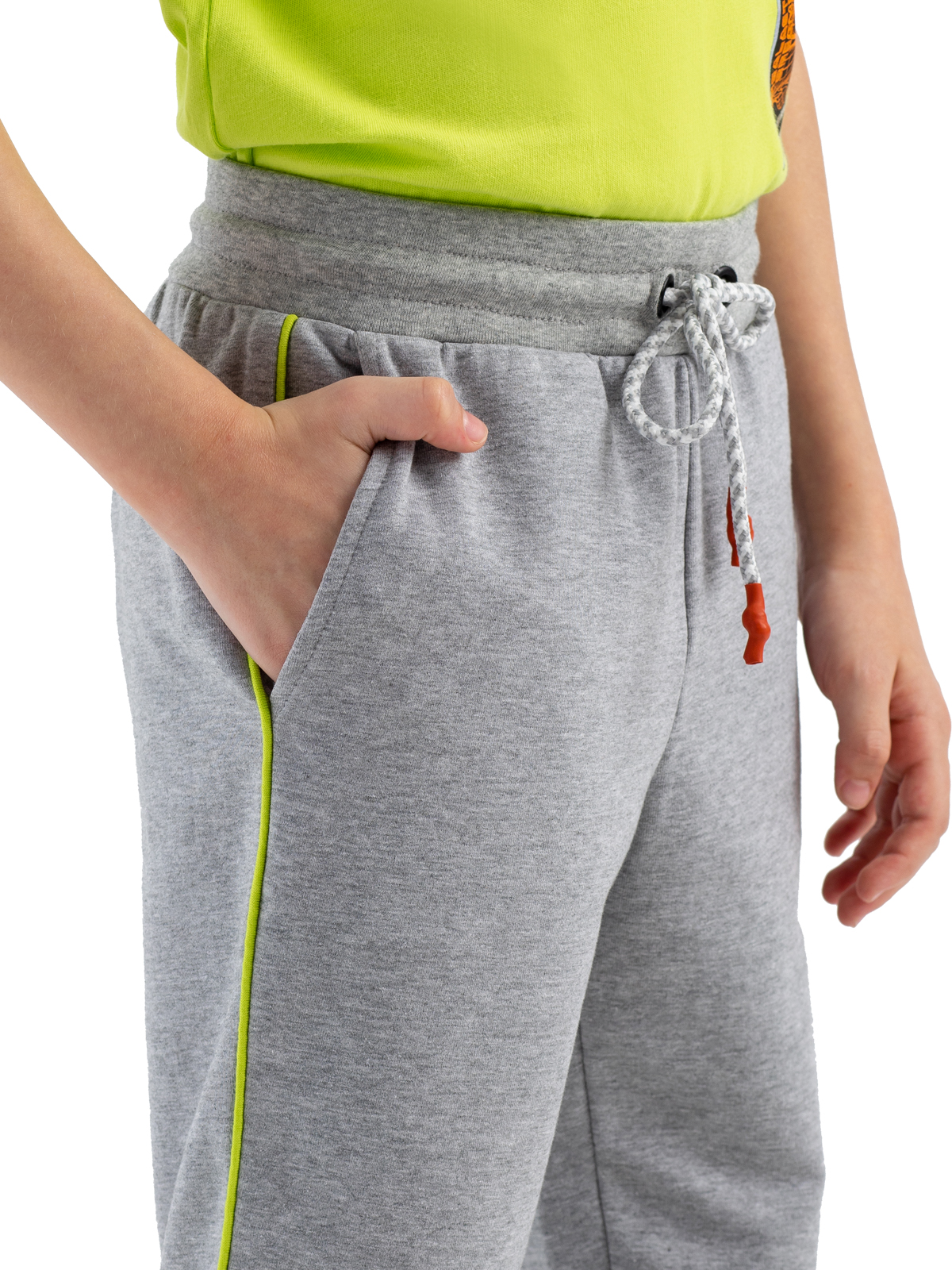 Комфортные брюки в светло-сером цвете меланж из хлопка с эластаном — практичная модель для мальчика. Модель украшена яркой жёлтой окантовкой по боковым швам. Два боковых кармана обеспечивают удобство использования. Талия с эластичной тесьмой и завязкой с контрастными наконечниками гарантирует идеальную посадку. Натуральный состав материала обеспечивает комфорт и отличную воздухопроницаемость. Брюки подходят для школы и активного отдыха.