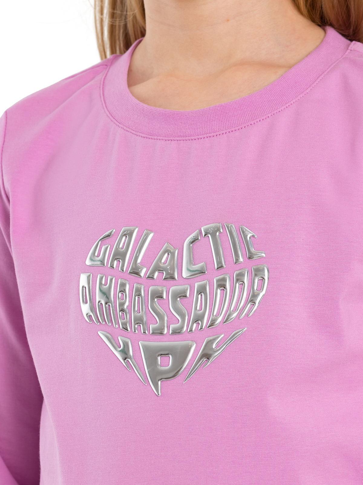 Яркий лонгслив для юных модниц выполнен в насыщенном розовом цвете с эффектным серебристым принтом в форме сердца на груди. Модель изготовлена из комфортного материала — мягкого хлопка с добавлением эластана, который отлично тянется и сохраняет форму. Практичная и стильная вещь станет любимым предметом гардероба, прекрасно сочетаясь с любой детской одеждой.