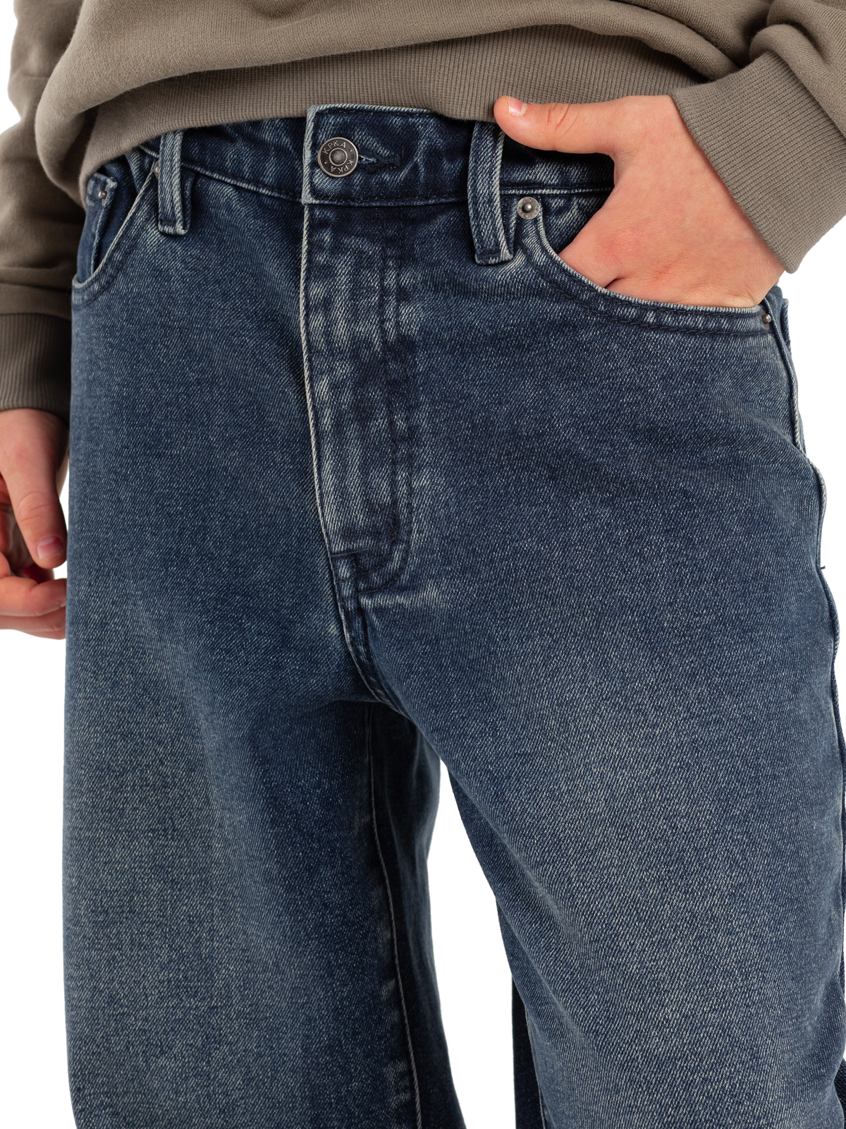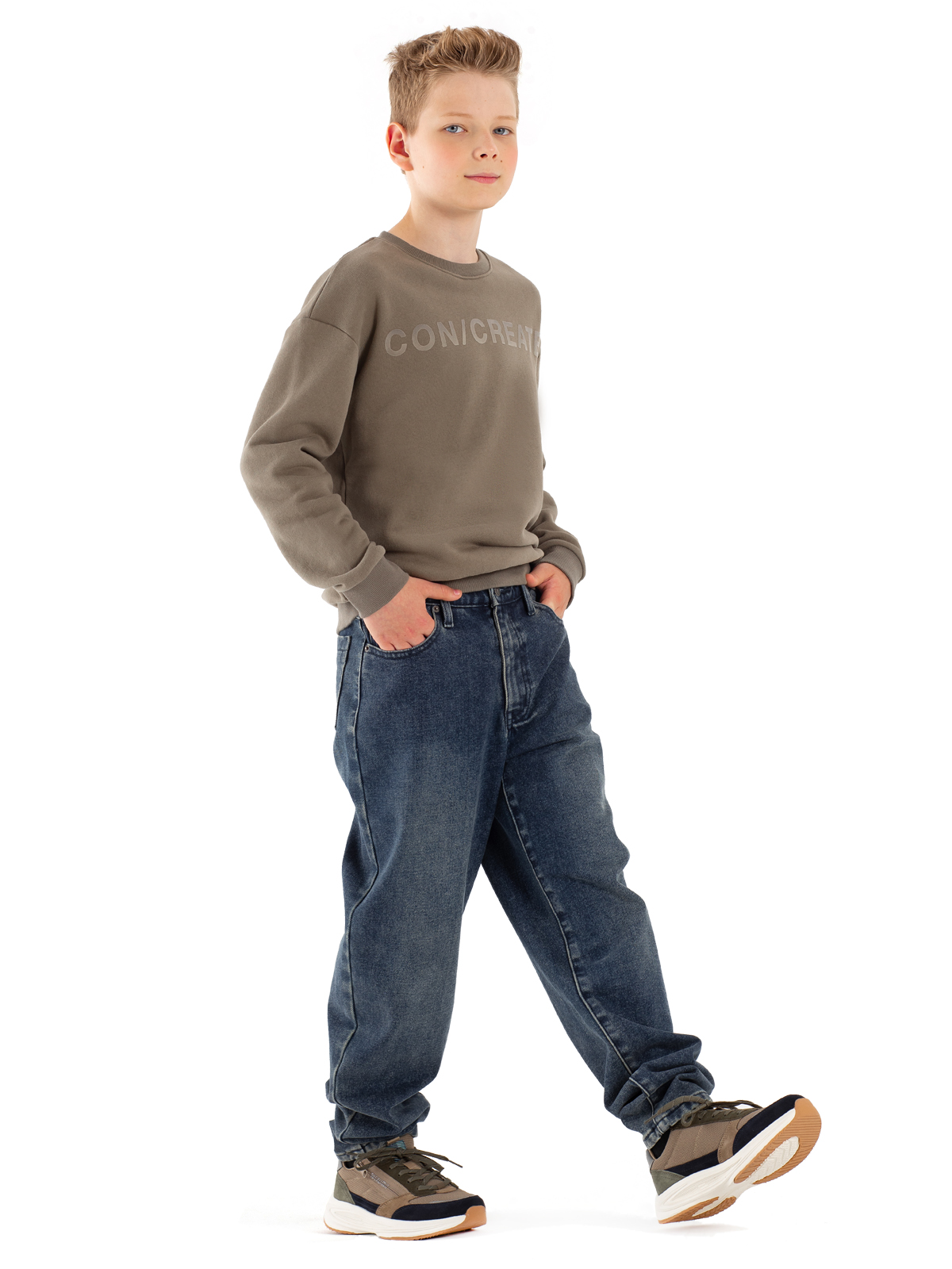 Классические джинсы тёмно-синего цвета с эффектом варки станут стильным элементом гардероба мальчика. Благородный оттенок, созданный благодаря особой обработке, делает модель особенно привлекательной. Модель выполнена из качественного материала с начёсом — смеси хлопка с добавлением полиэстера и эластана, что обеспечивает не только комфорт при носке и отличную посадку по фигуре, но и дополнительное тепло в прохладную погоду. Мягкий начёс изнутри делает джинсы особенно уютными и приятными к телу. Прямой силуэт подчёркивает достоинства любой фигуры, не стесняя движений. Функциональный дизайн включает два удобных передних кармана и два накладных кармана сзади. Прочный материал гарантирует долговечность и сохранение формы после многочисленных стирок.