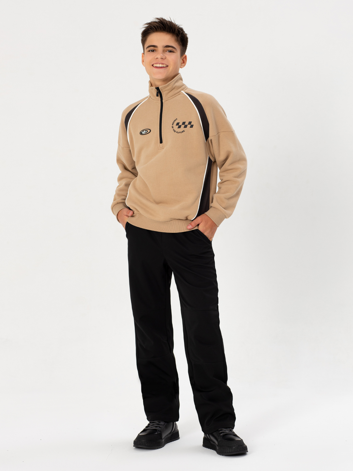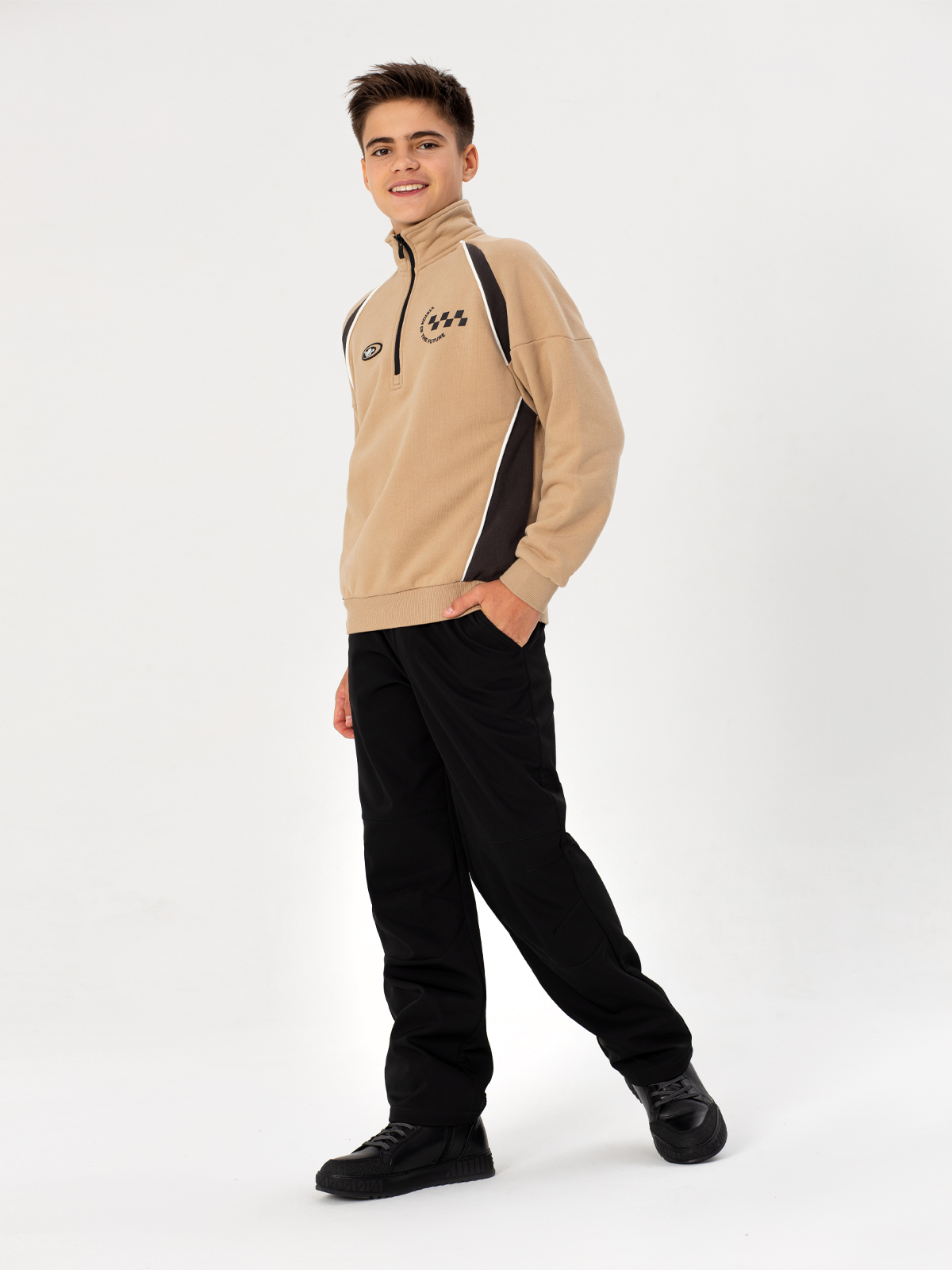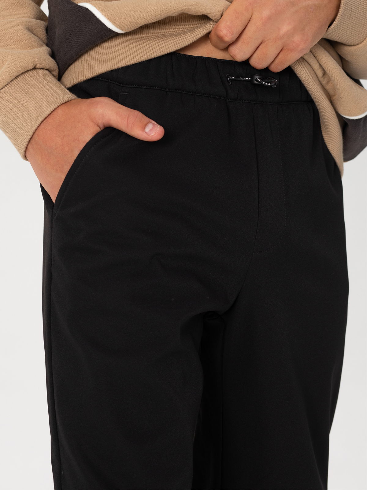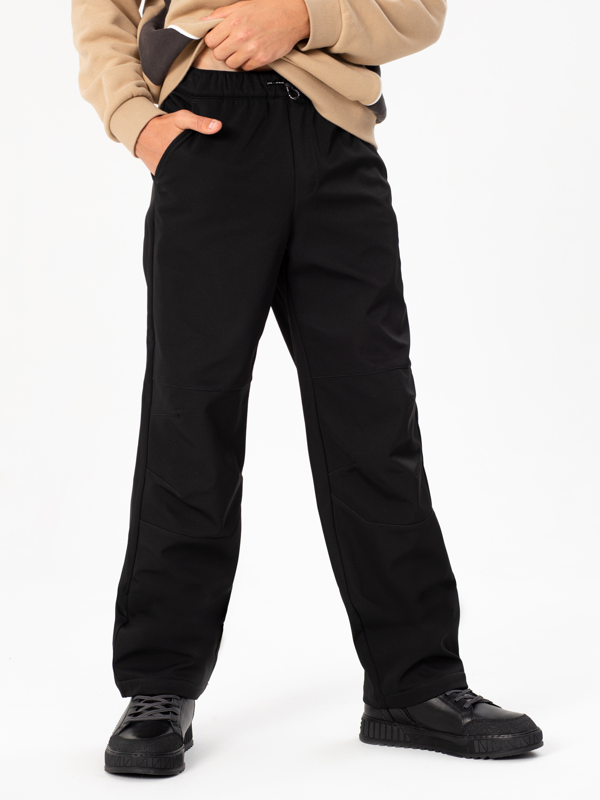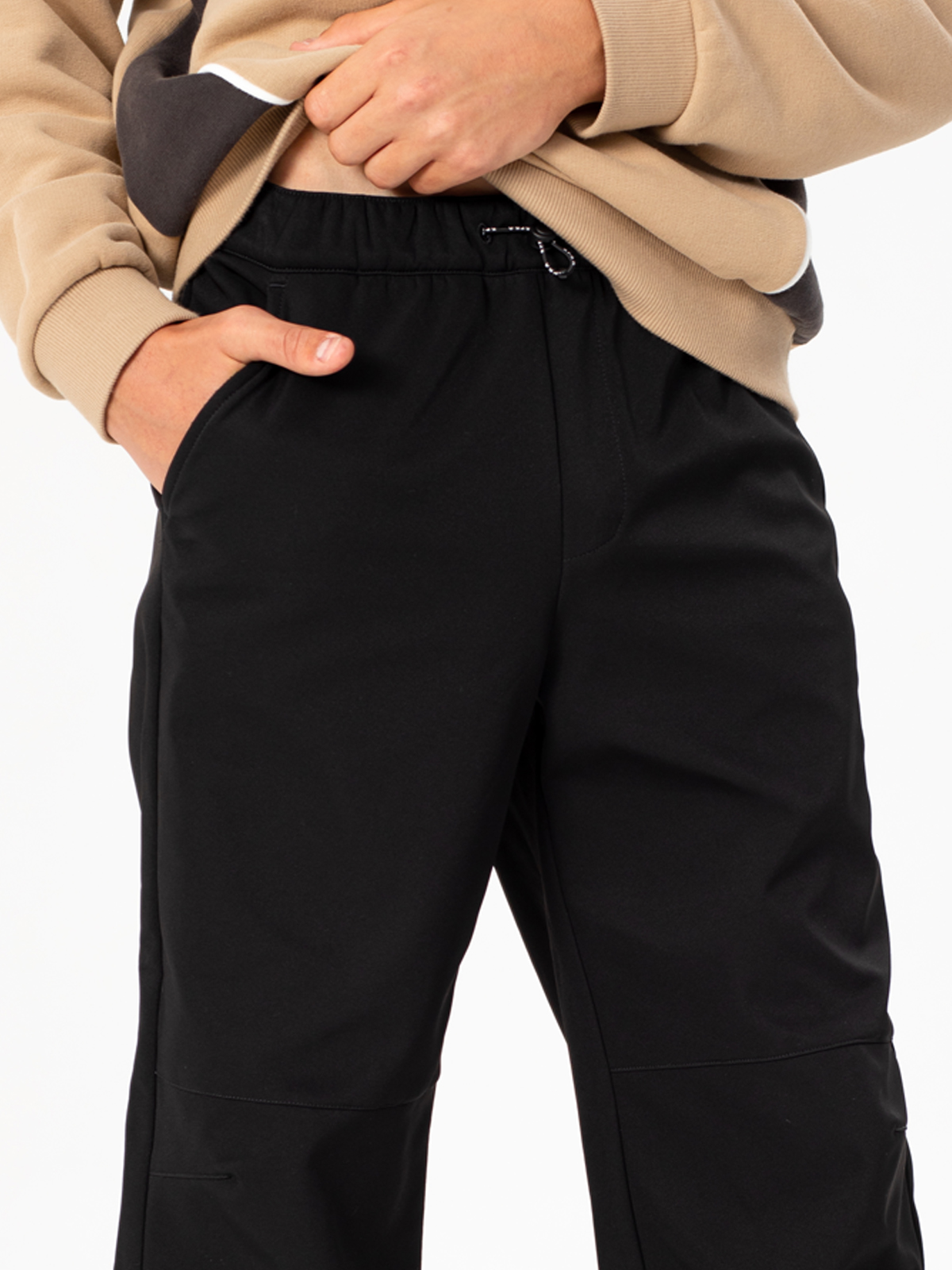Практичные брюки для мальчика в черном цвете выполнены из современного материала софтшелл, который обеспечивает превосходную защиту от влаги, грязи и ветра. Высокая степень защиты достигается благодаря мембране с показателями 8000 мм / 5000 г/м². Модель отличается продуманным дизайном: регулируемая утяжка по поясу позволяет идеально подогнать размер, а два боковых кармана дополняют конструкцию. Усиленные защитные вставки на коленях повышают износостойкость и обеспечивают дополнительную защиту при активном движении. Прочный материал и продуманная конструкция делают эти брюки отличным выбором для активных прогулок и занятий спортом в любую погоду.