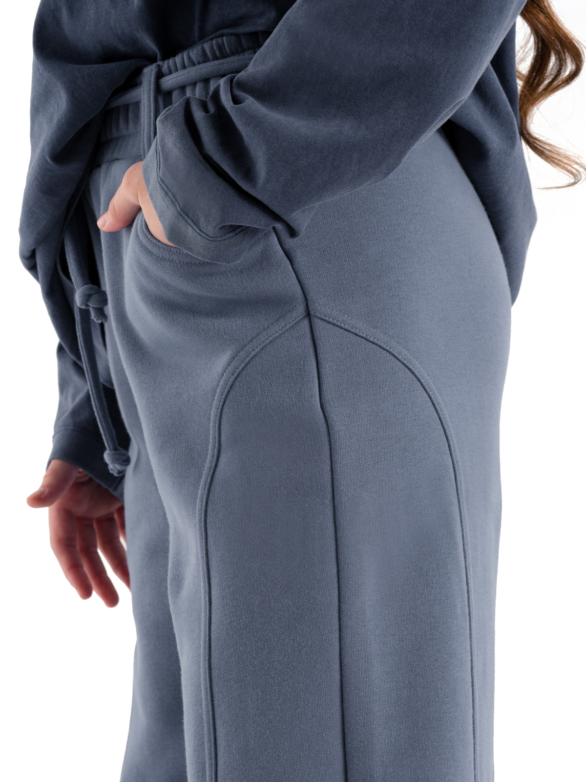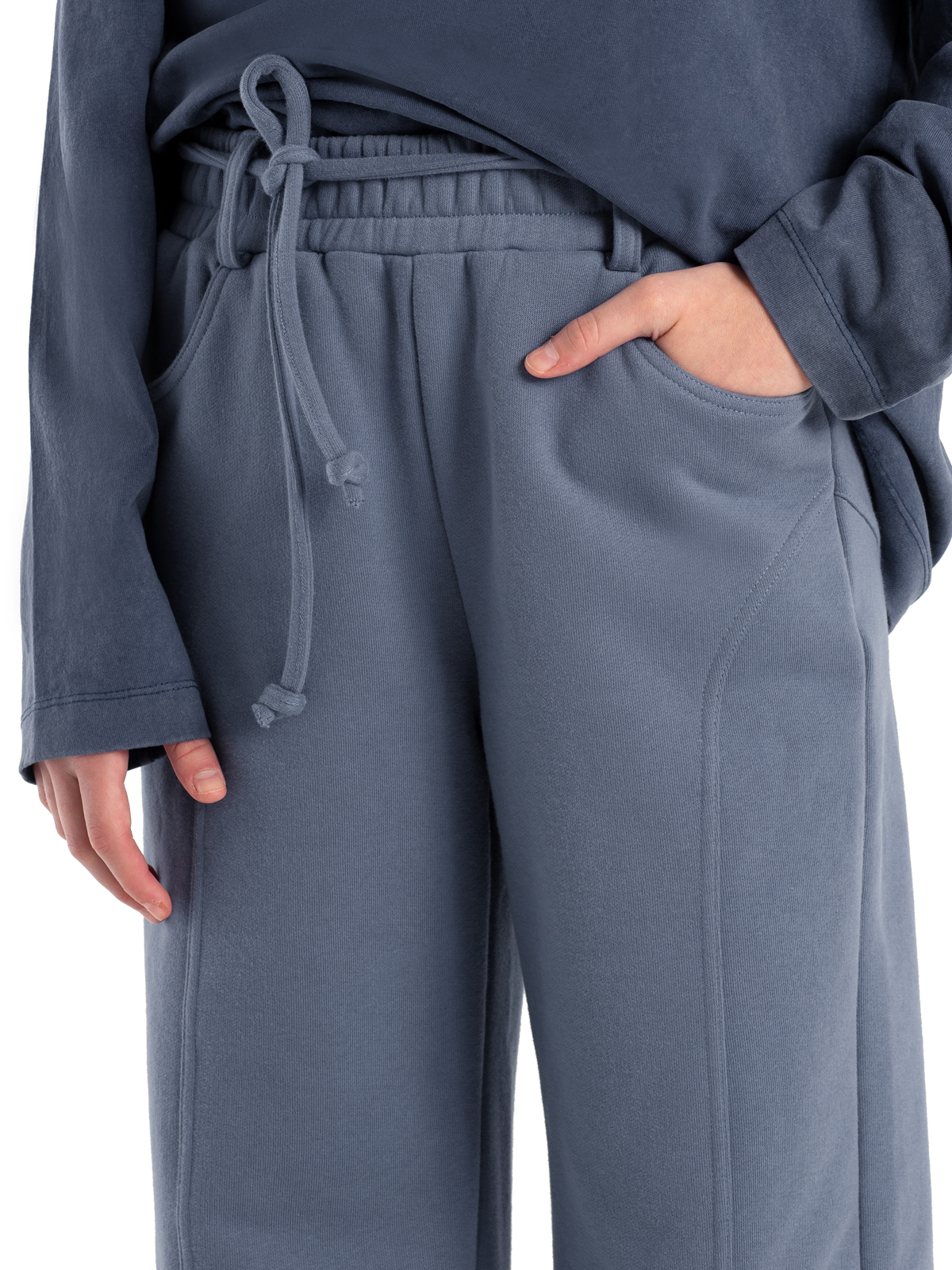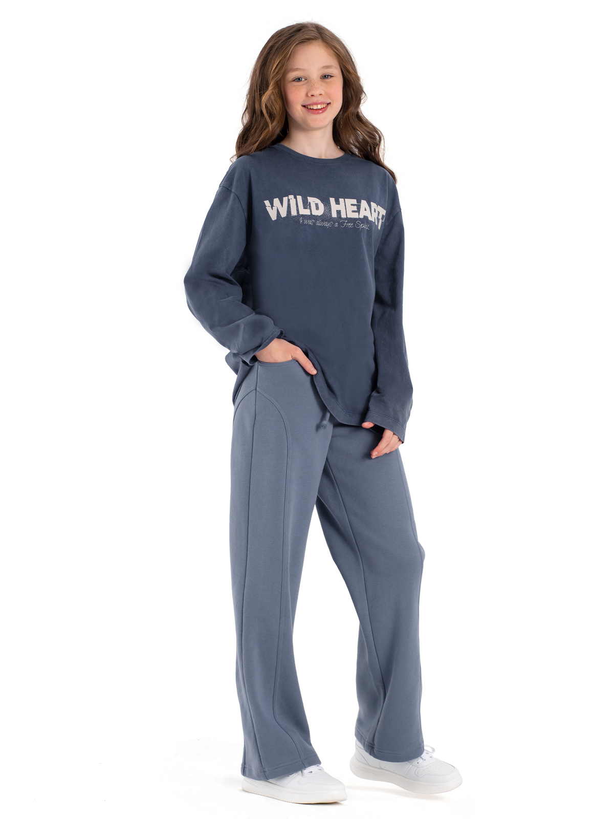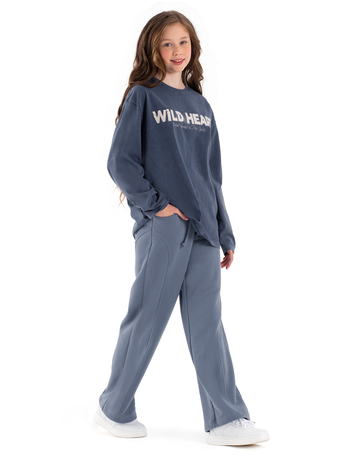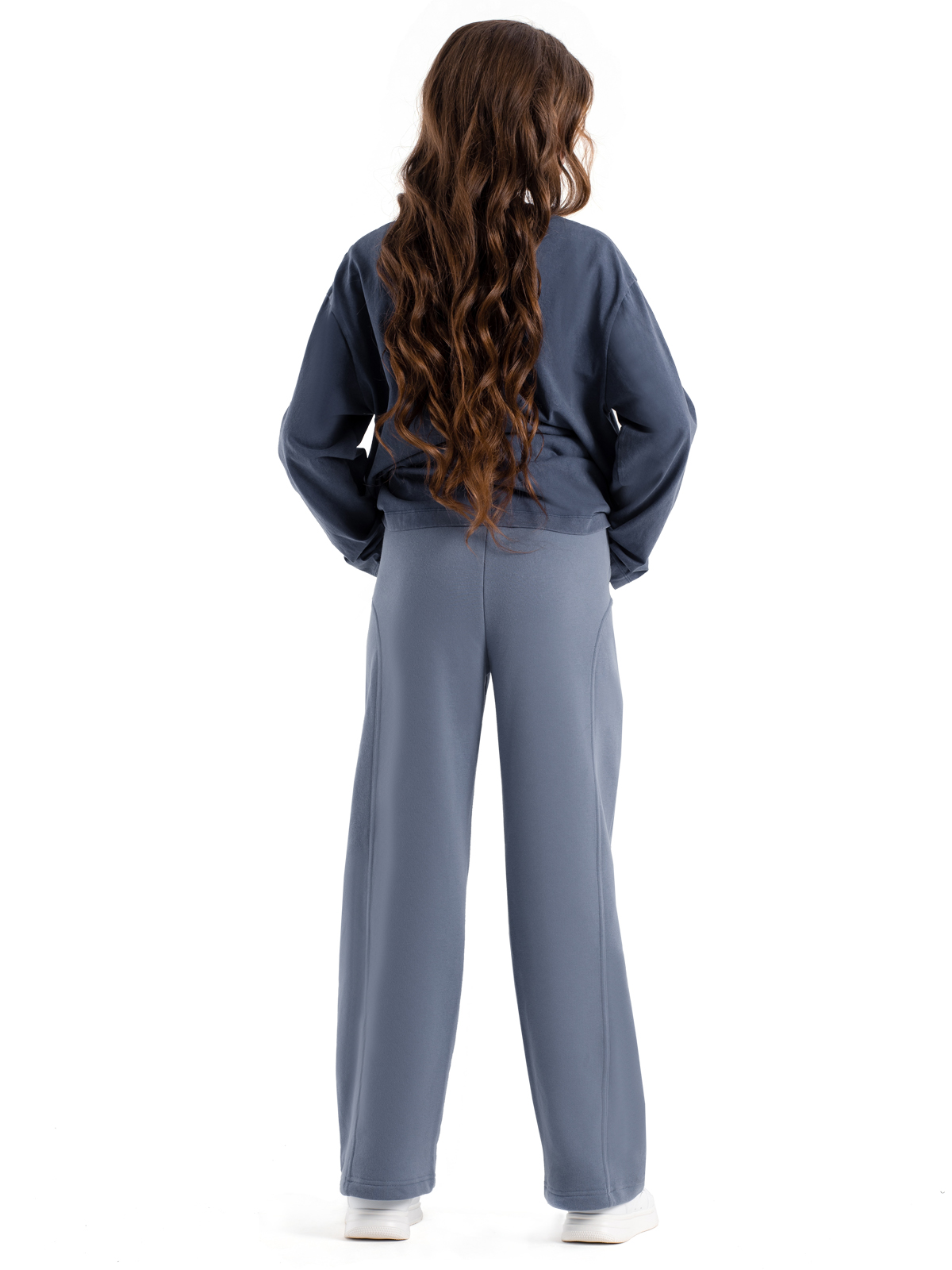 Комфортные брюки для девочки-подростка выполнены в синем цвете. Модель отличается прямым силуэтом и оригинальным кроем, обеспечивающим свободу движений. Материал состоит из хлопка с добавлением полиэстера, что гарантирует долговечность и приятные тактильные ощущения при носке. Два удобных боковых кармана позволяют хранить необходимые мелочи. Особую практичность модели придаёт пояс на резинке с толстым шнурком, который позволяет регулировать посадку по фигуре. Продуманный дизайн делает эти брюки идеальными для повседневной носки, обеспечивая максимальный комфорт в течение всего дня.