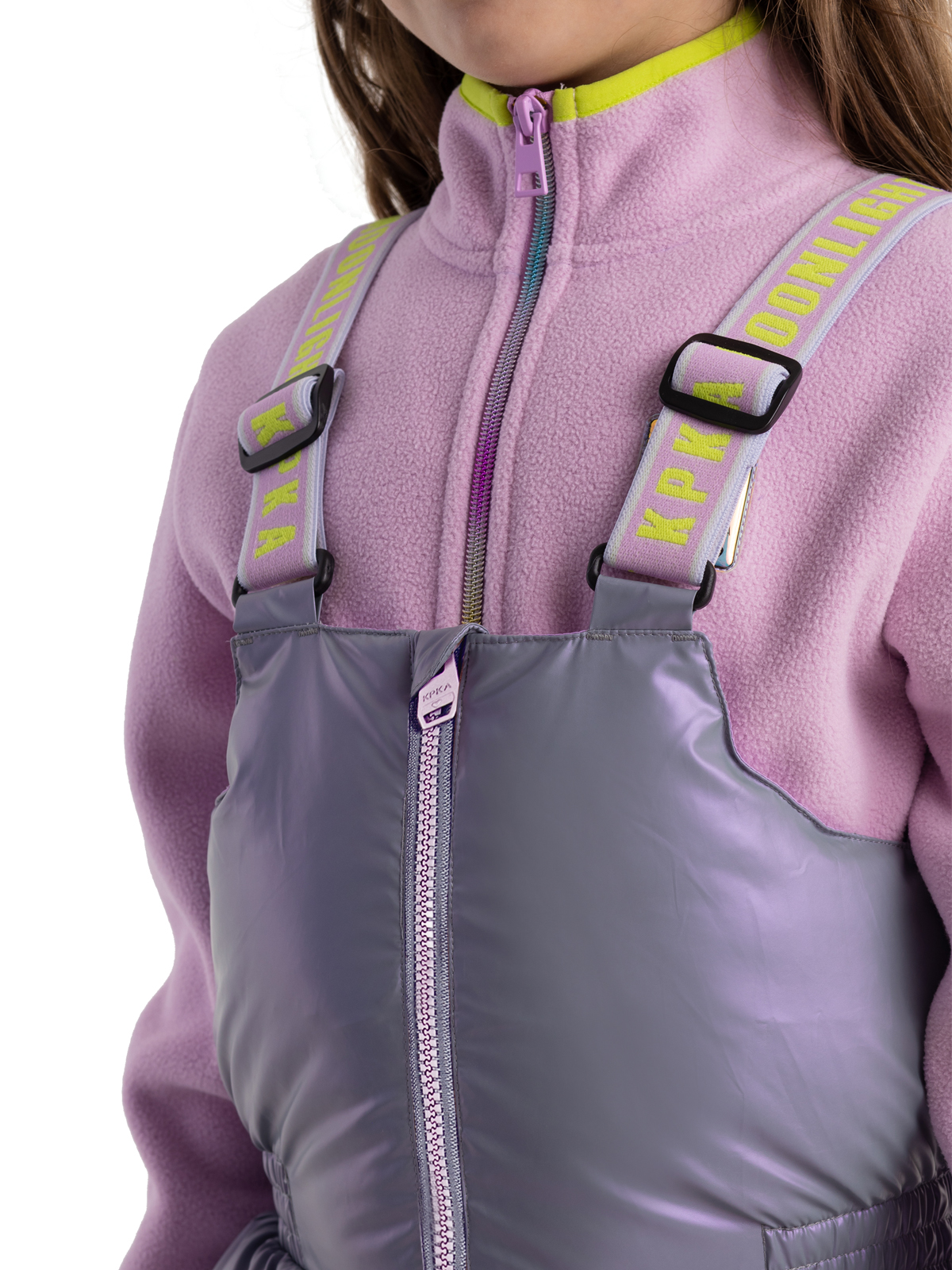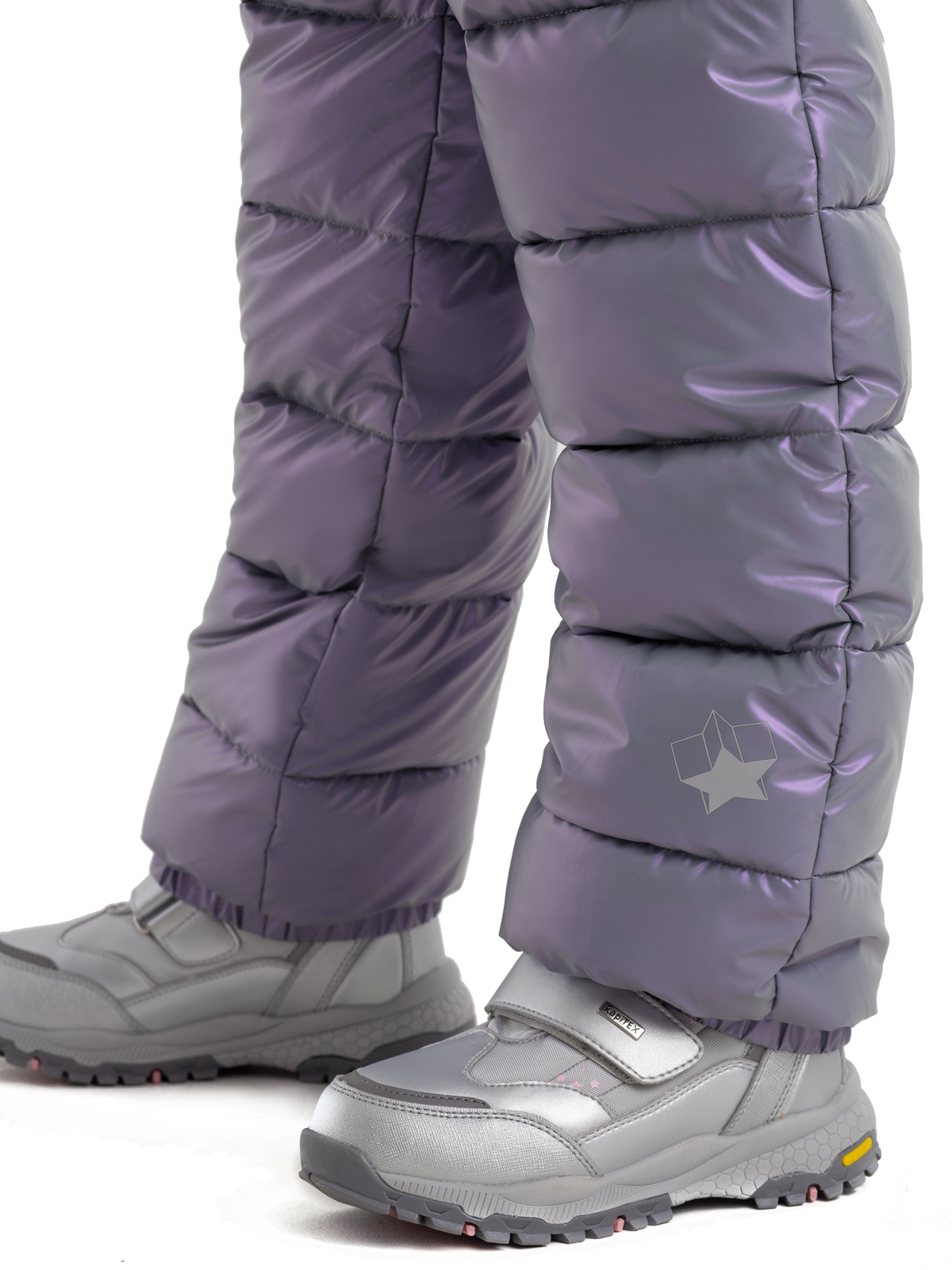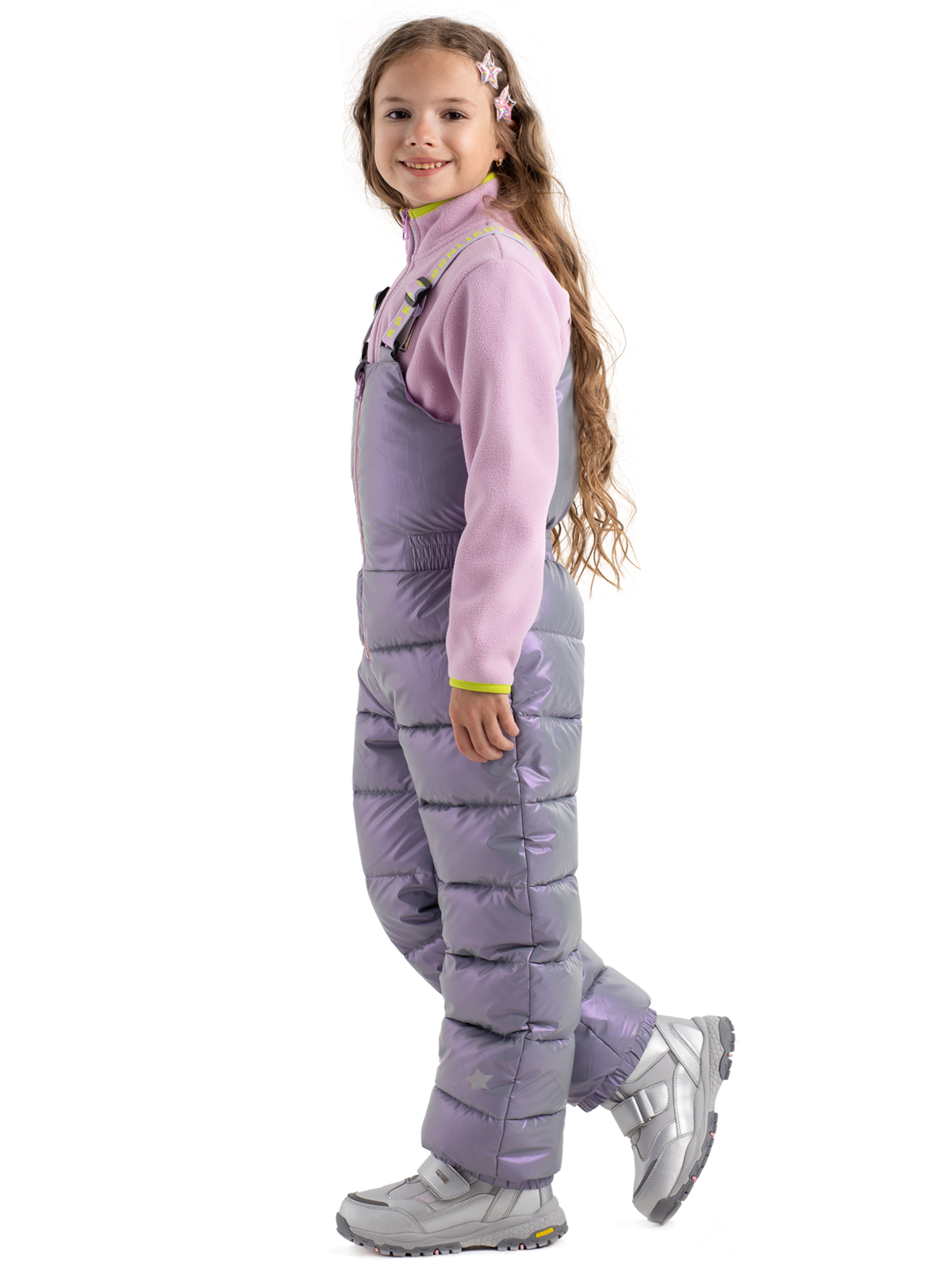 Стильный стеганный полукомбинезон прямого силуэта с утеплителем - искуственным пухом 200 г/м2 и дополнительным утеплением синтепоном. Технологичная ткань с водостойким PU-покрытием не дает ребенку промокнуть. Модель с регулируемыми бретелями из эластичной жаккардовой тесьмы. Верхняя часть полукомбинезона утеплена флисом. Кулиса на талии - с резинкой для удобства прилегания. Штаны оснащены специальной подкладкой и ветрозащитной манжетой на резинке с латексом - защищающей кожу от низких температур, ветра и попадания снега. Светоотражающие элементы по низу изделия обеспечивают защиту ребенка в темное время суток.