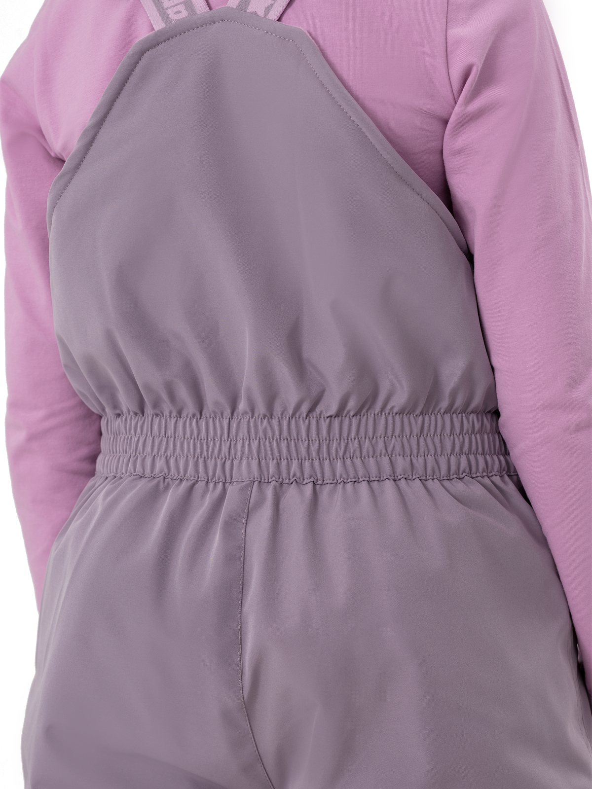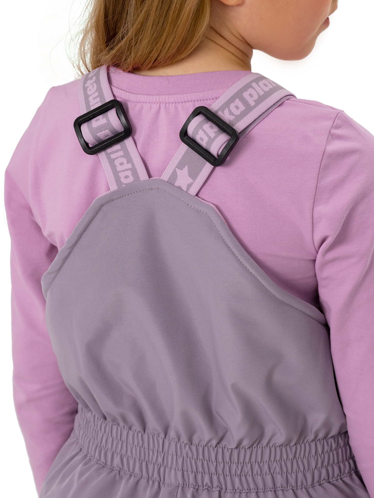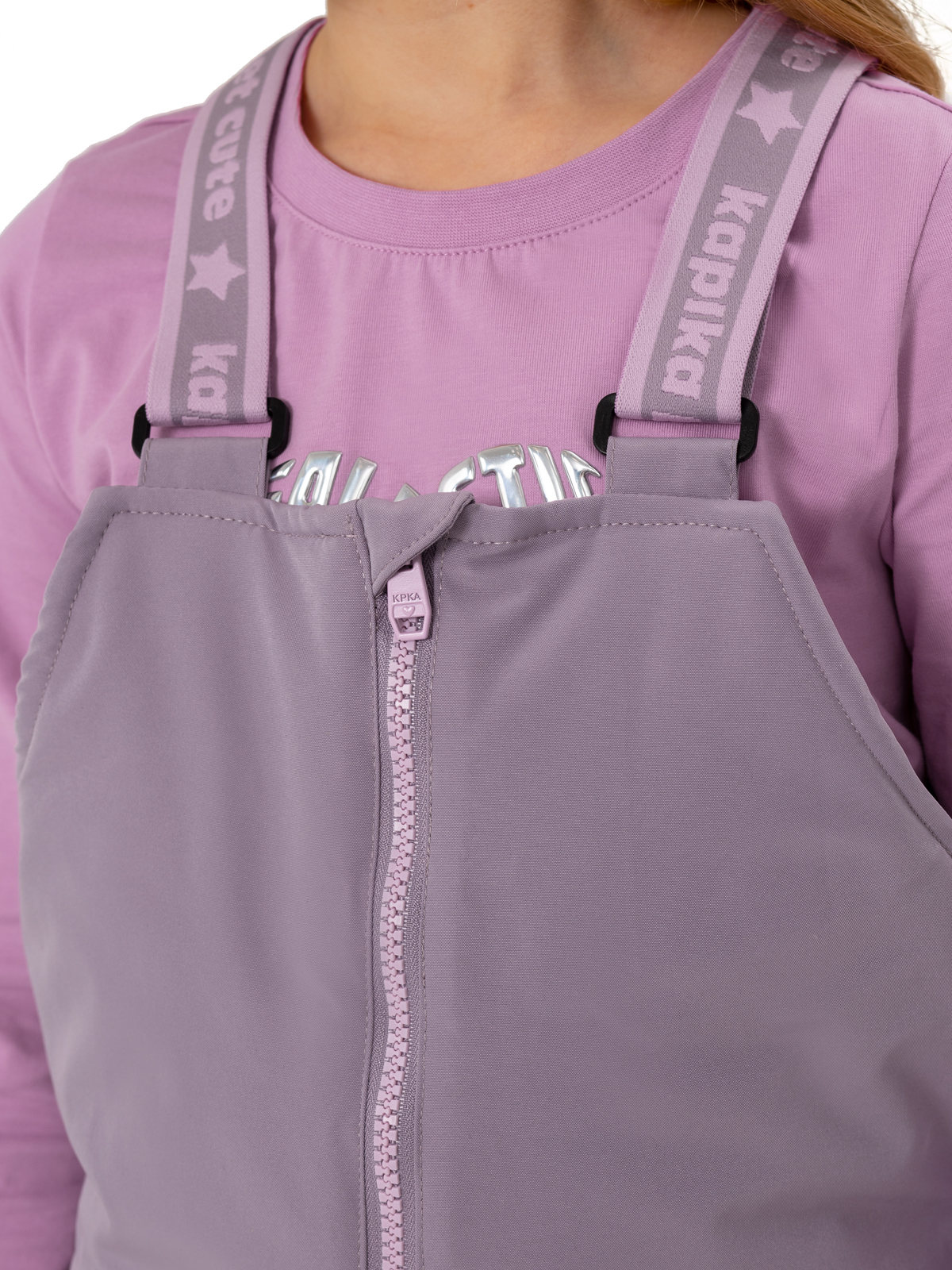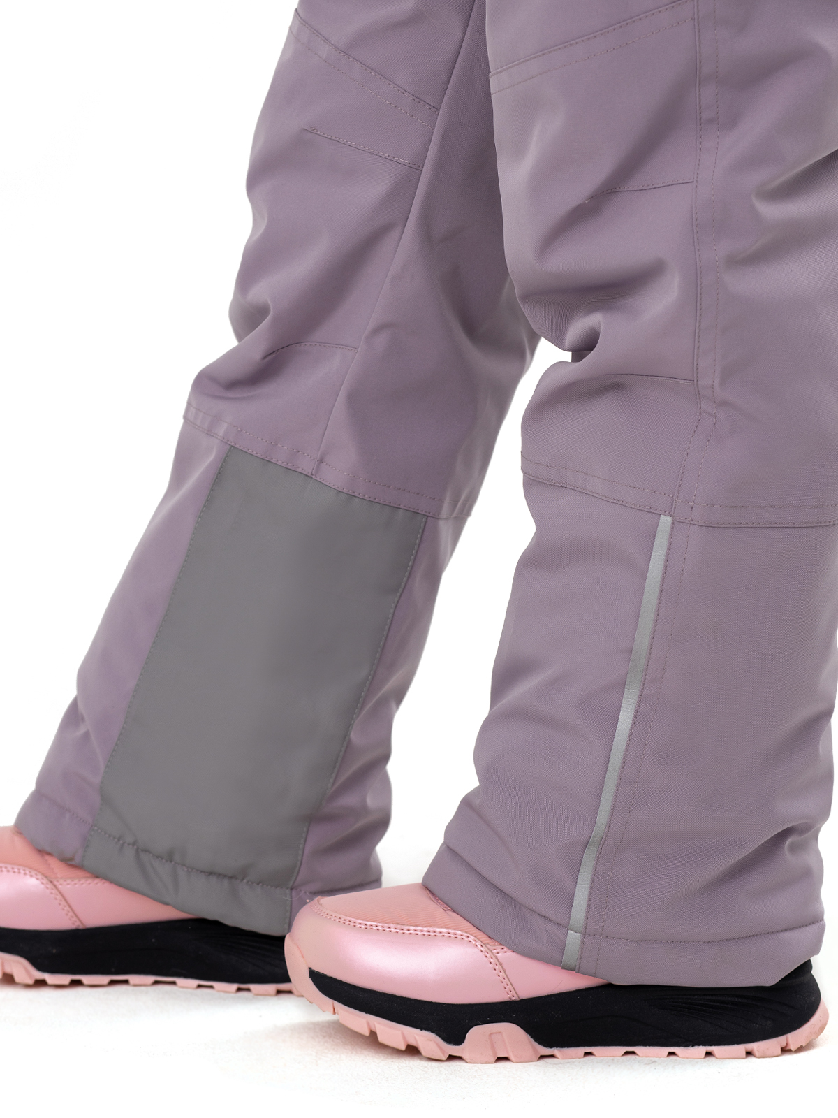 Утеплённые брюки в нежном лиловом цвете — практичная модель для девочки. Современная мембрана с показателями 8000мм/5000г/м2/24ч обеспечивает отличную защиту от влаги и хорошую паропроницаемость, а синтепоновый утеплитель плотностью 160 г/м² надёжно сохраняет тепло. Удобная застёжка-молния в сочетании с эластичной резинкой на талии и регулируемыми эластичными лямками гарантирует комфортную посадку. Два кармана на молниях позволяют безопасно хранить необходимые вещи. Практичные детали включают внутренние снежные гетры, которые защищают от попадания снега, и усилители на внутренней части брючин, повышающие износостойкость. Светоотражающие тесьмы обеспечивают безопасность в тёмное время суток.