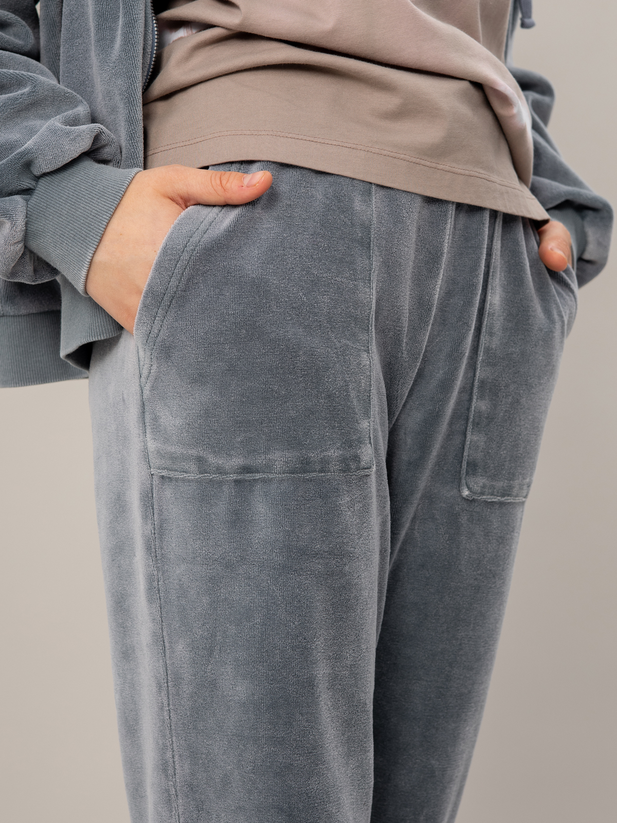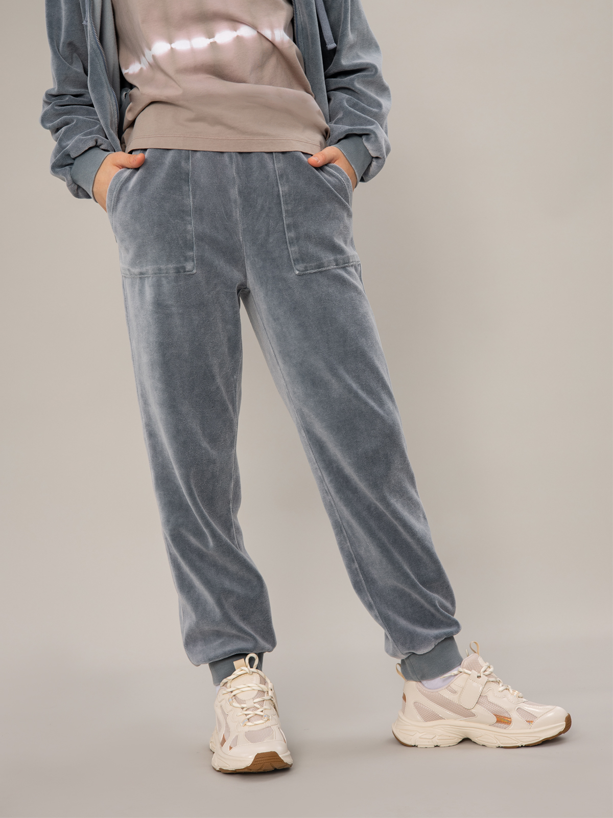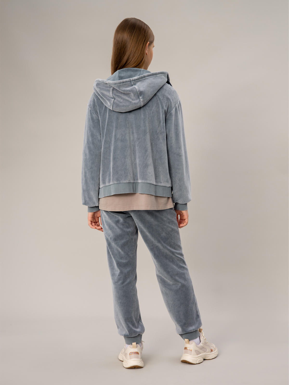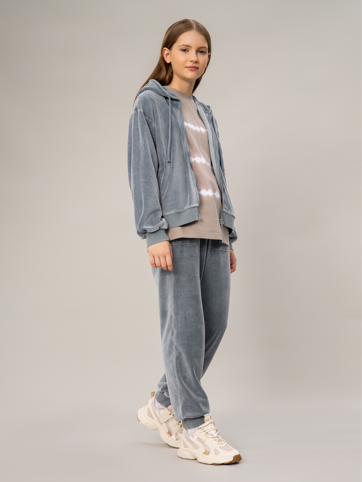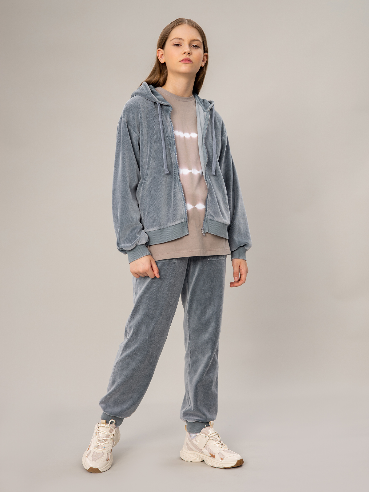 Стильные велюровые джоггеры для девочки в сером цвете — гармоничное сочетание с худи из той же коллекции. Модель создана из мягкого велюра на основе хлопка с добавлением полиэстера, что гарантирует комфорт и долговечность. Дизайн включает резинку и тесьму по поясу, эластичные манжеты по низу брючин и накладные карманы. Прочная ткань проста в уходе, а практичный крой делает джоггеры подходящими для повседневной носки и активного отдыха. Модель станет любимой вещью в гардеробе девочки.