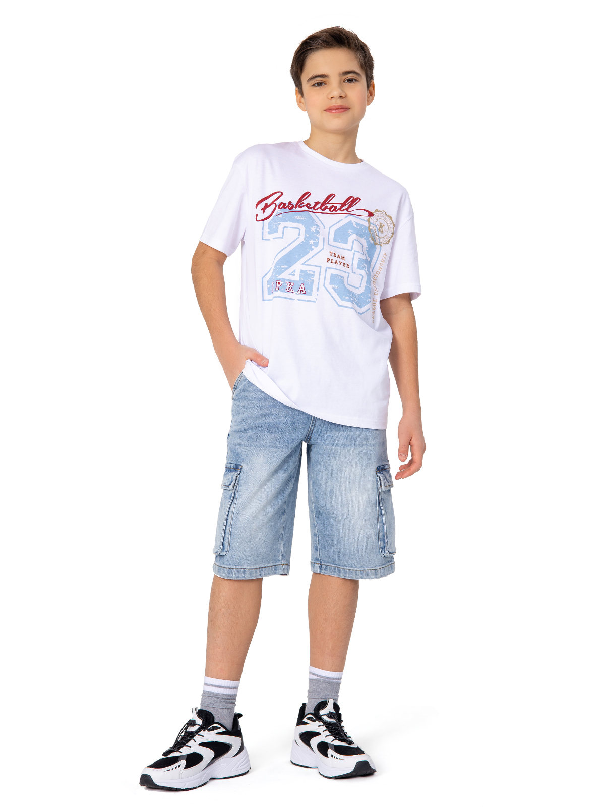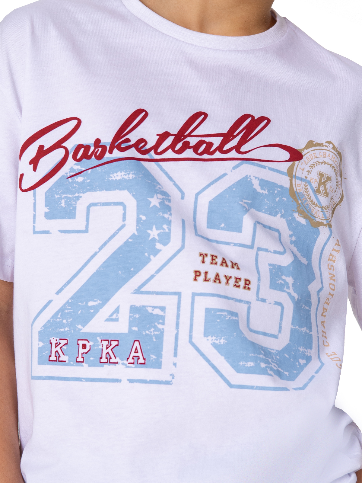 Футболка oversize белого цвета с крупным ярким притом в баскетбольной эстетике. Модель выполнена из высококачественного гребенного хлопка. Идеально подходит для прогулок и занятий спортом.