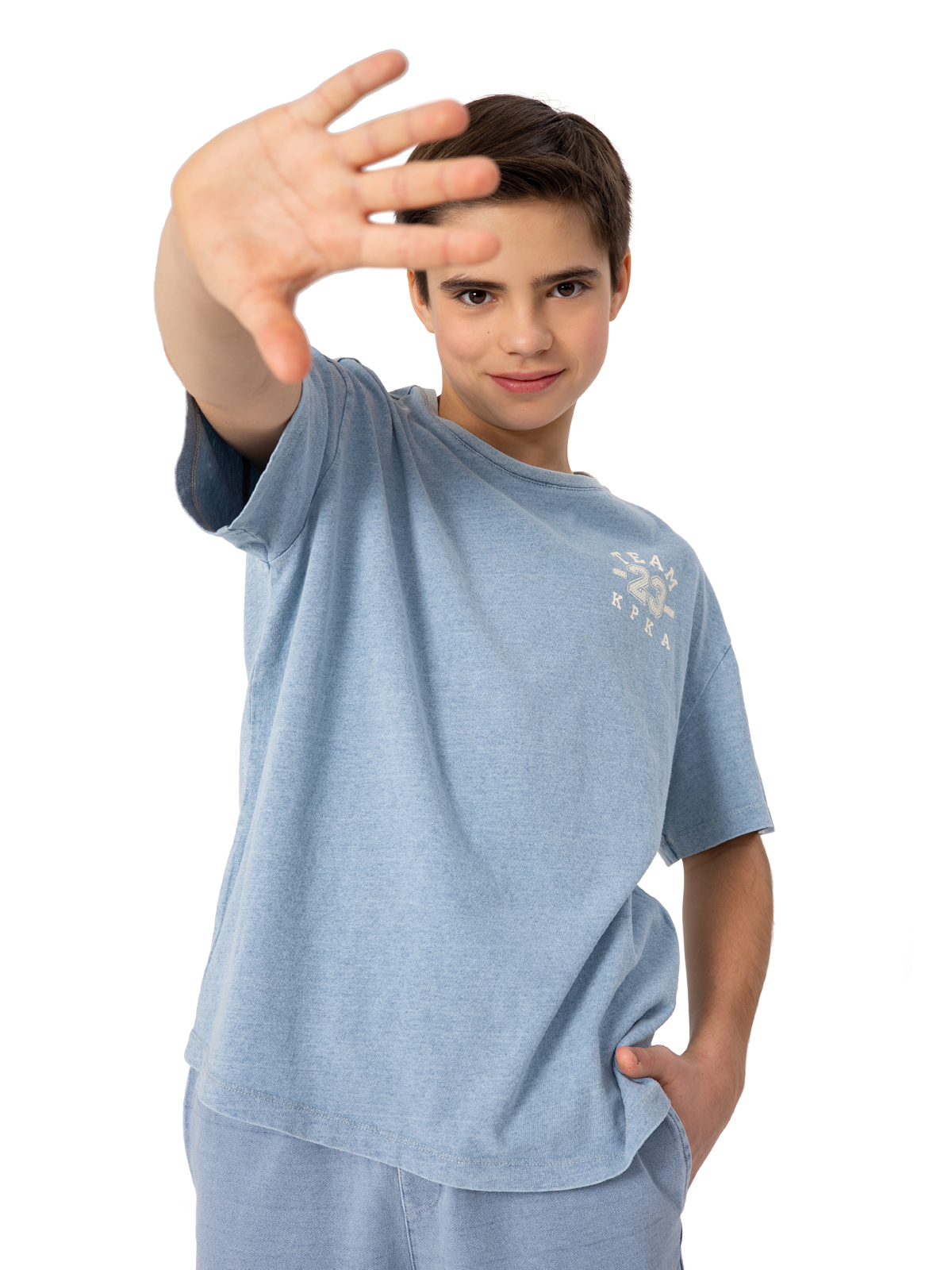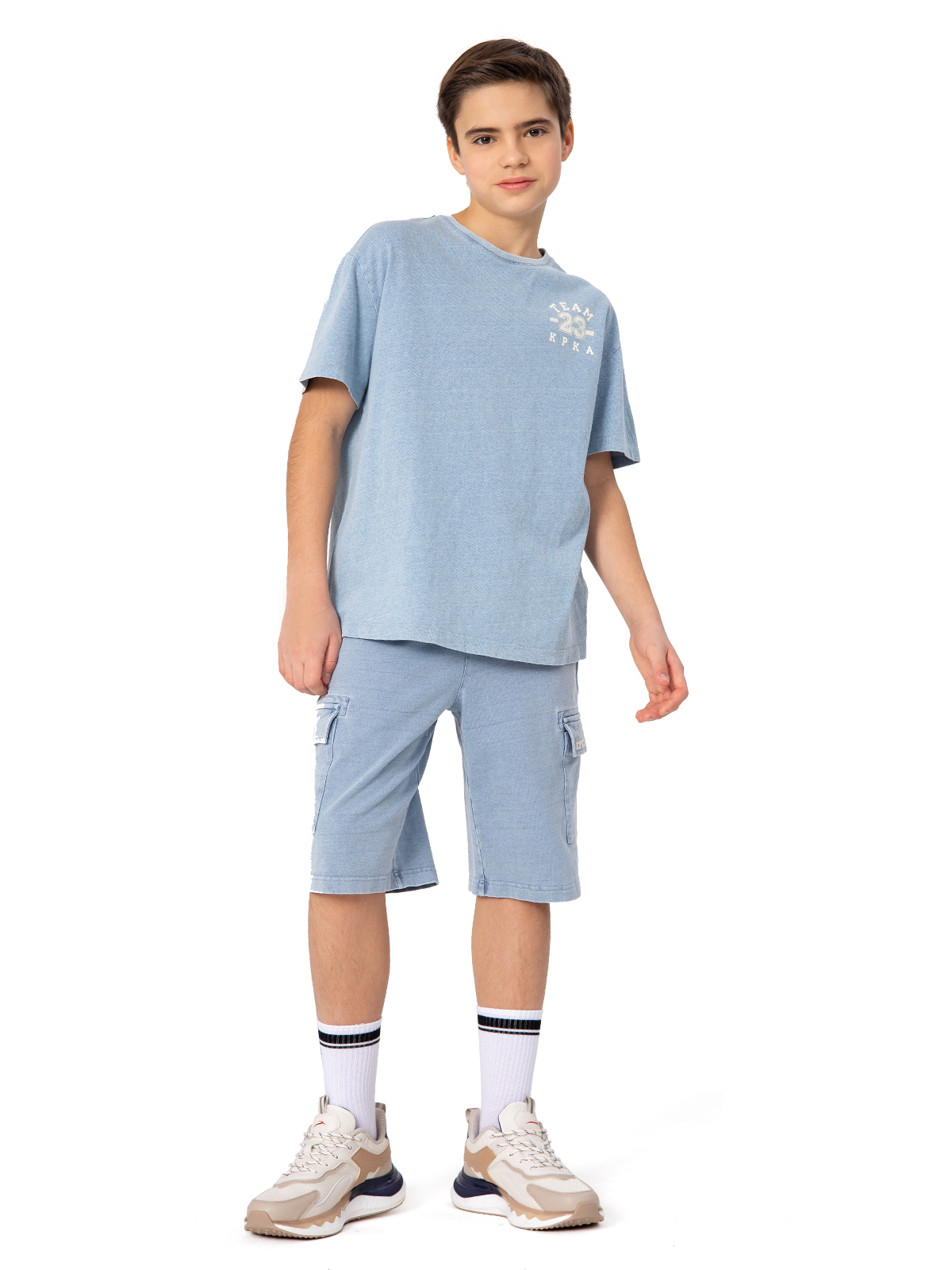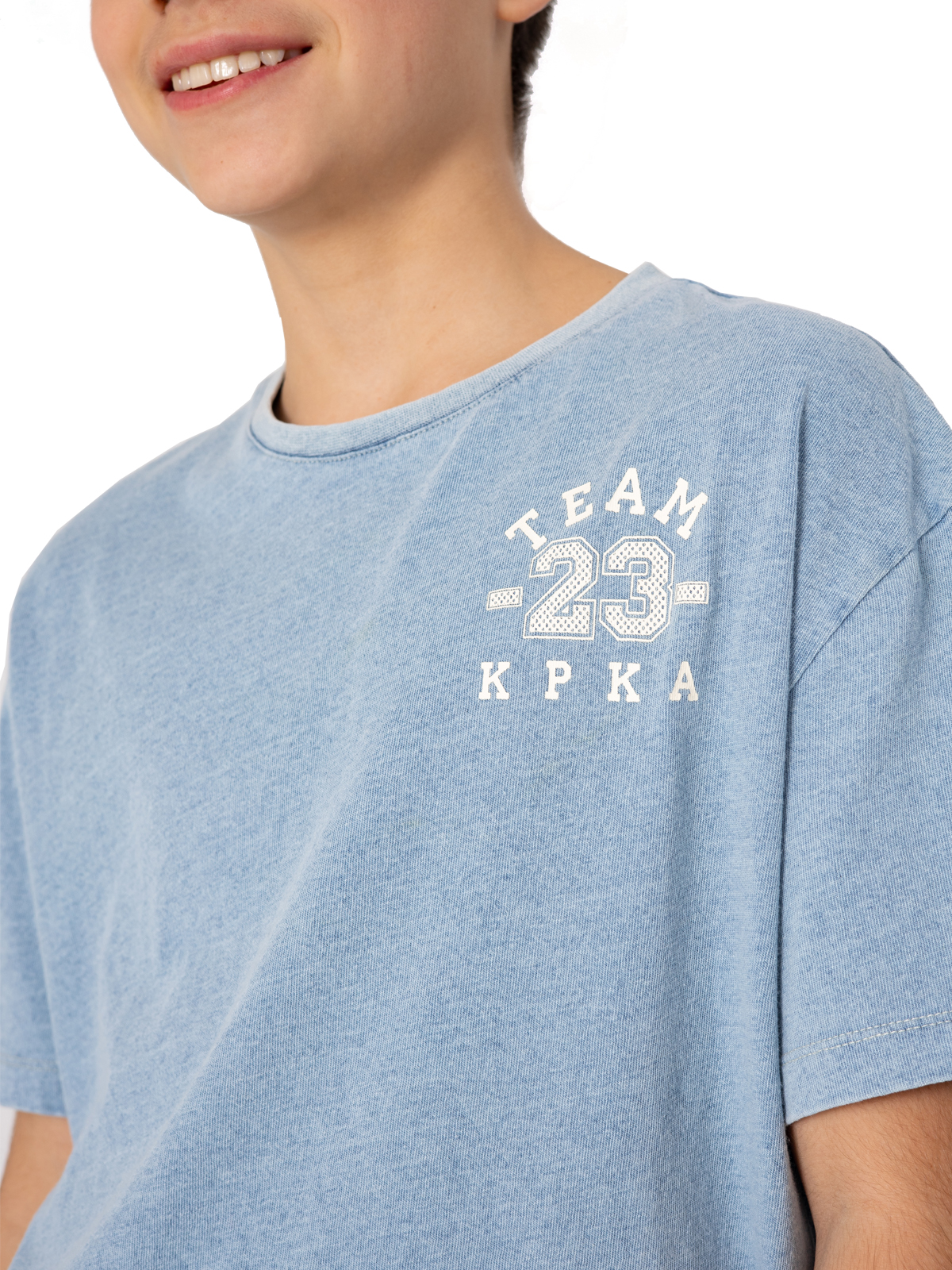 Футболка прямого кроя с имитацией денима небесно-голубого цвета, который можно по праву назвать лучшим по сочетаемости с другими цветами летней палитры. Горловина изделия выполнена из трикотажного риба, за счет этого она держит форму и не растягивается. Акцентом данной модели является термопринт с номером легенды баскетбола - Майкла Джордана. Комбинируется с шортами арт NJBCH10-Z2 и толстовкой арт NJBCJ04-Z2