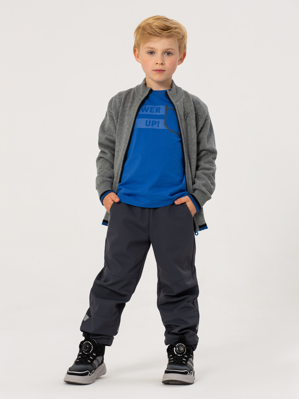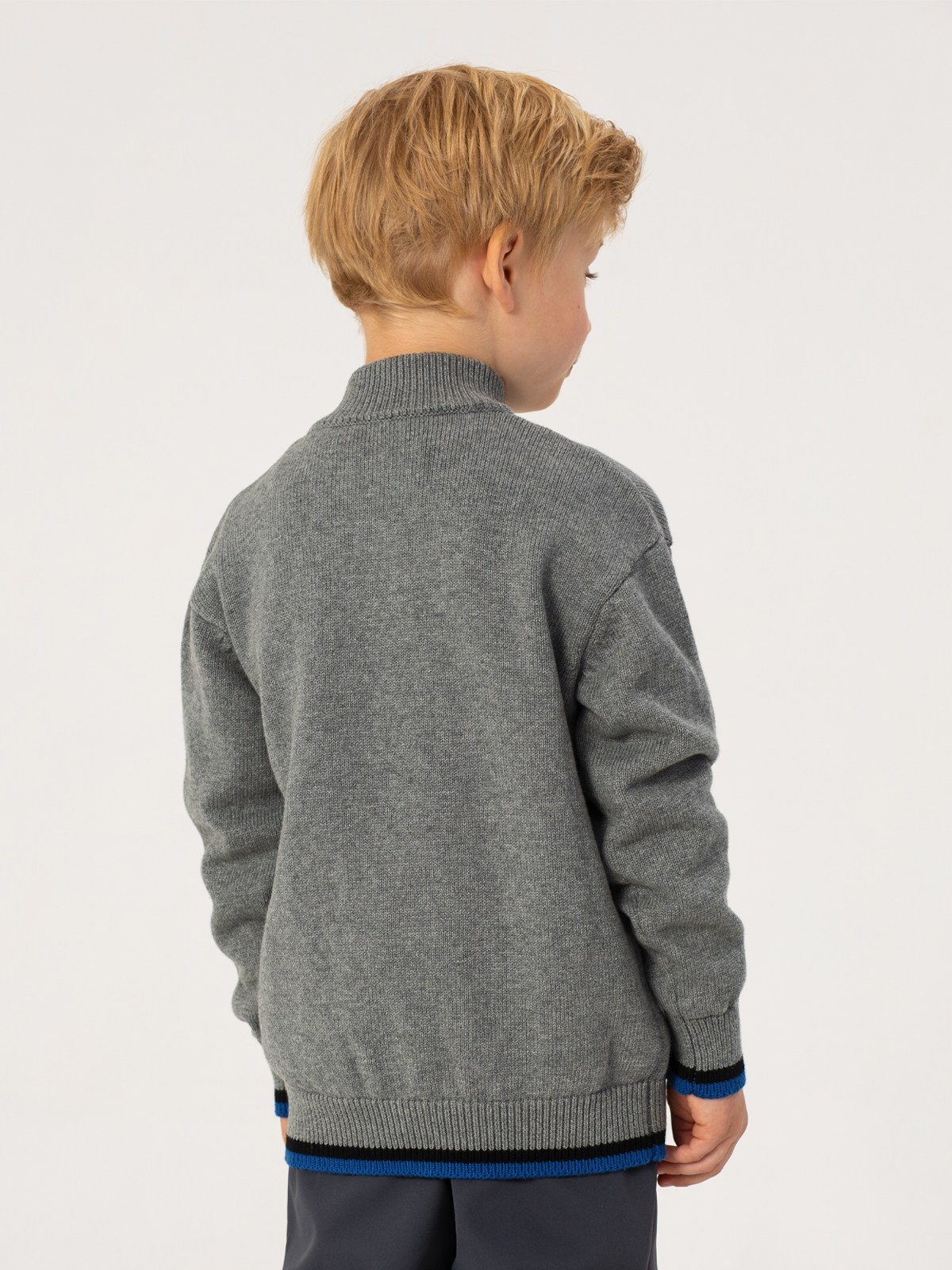 Практичный вязаный кардиган серого цвета для мальчика — то, что нужно для повседневной носки. Изделие полностью из натурального хлопка, поэтому в нём будет комфортно весь день. Модель украшена днкоративными элементами: полоска по рукавам и низу, стильный пуллер того же оттенка, а так же рельефная надпись на груди. Два удобных кармана помогут хранить важные мелочи. Мягкая вязка и удобный крой делают кардиган комфортным вноске в любой ситуации.