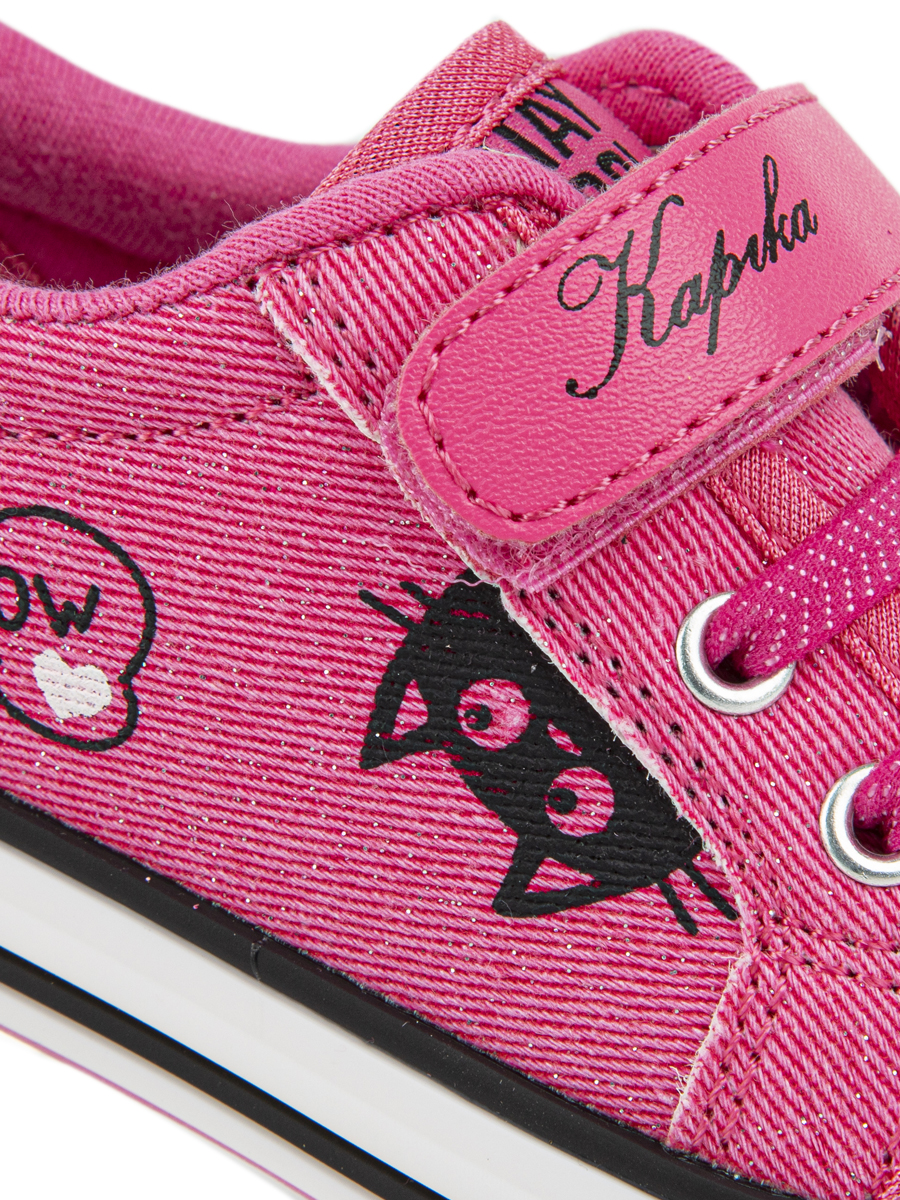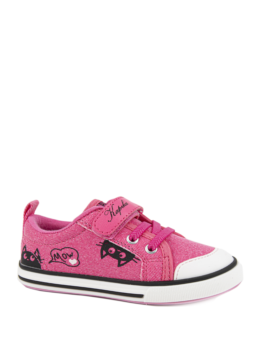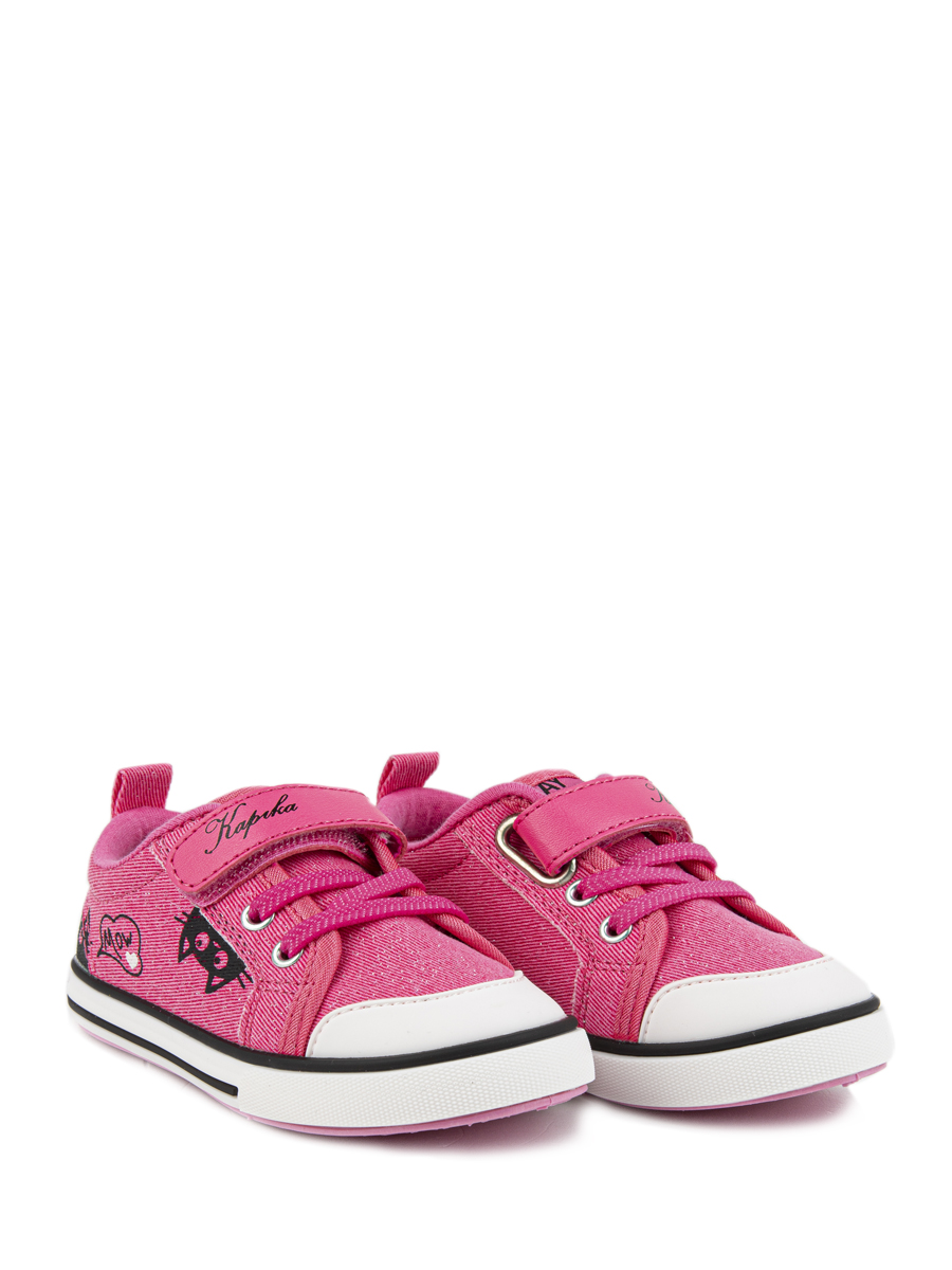 Кеды из плотного хлопка с ярким оригинальным принтом. Хлопковая подкладка, резиновая гибкая подошва, шнурки-резинки и кожаная стелька обеспечат комфорт и удобство при носке.
