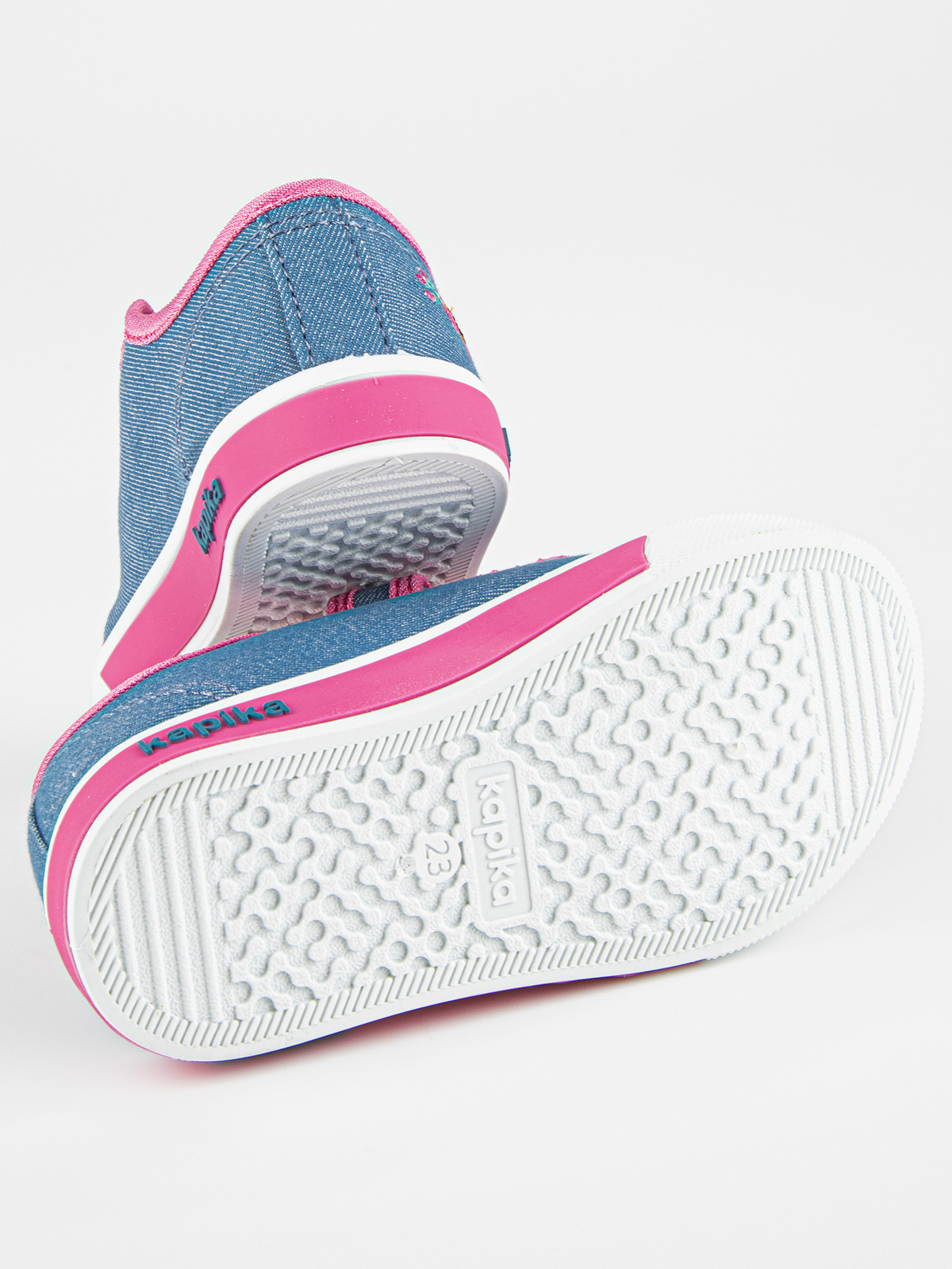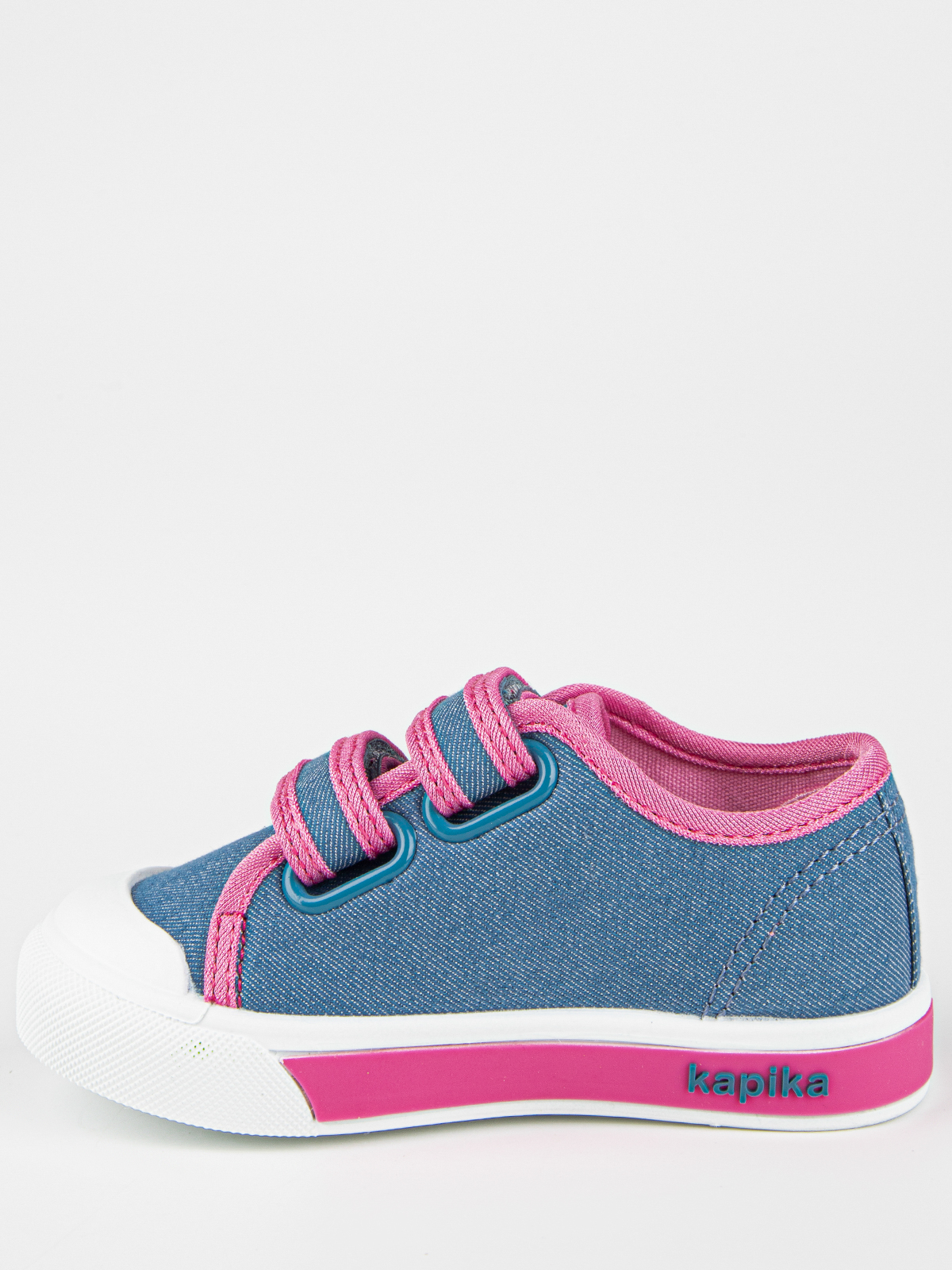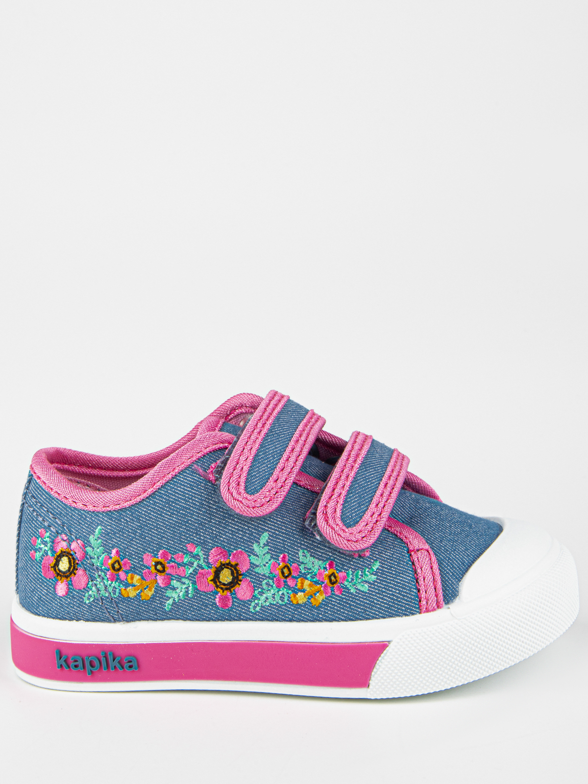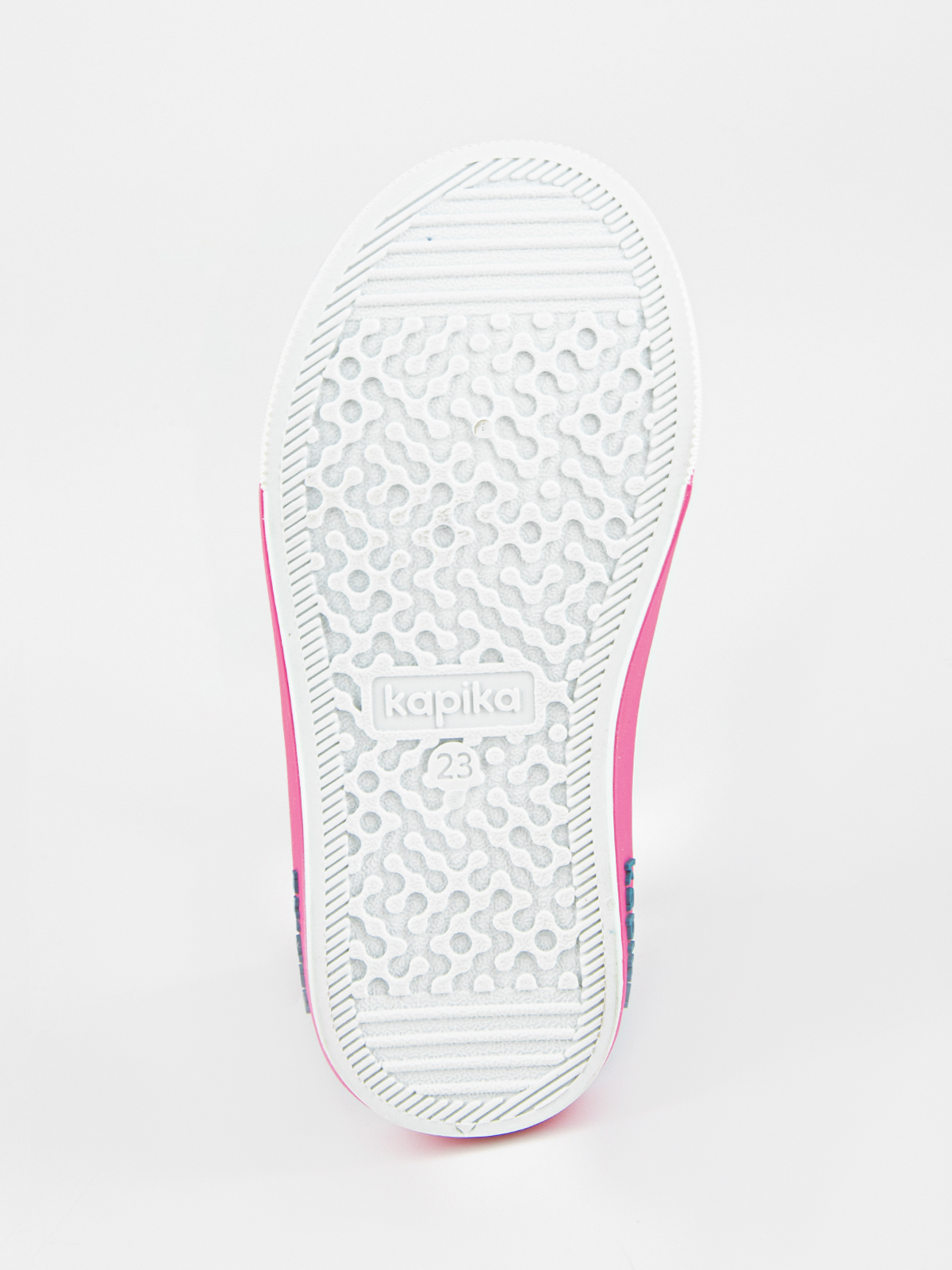 Кеды Капика из плотного хлопка с застежками-липучками и принтом обязательно понравятся каждой девочке. Подкладка из хлопка, гибкая подошва с защищенной носовой частью из ПВХ и кожаная стелька обеспечивают комфорт и удобство при ношении. Капика создает качественную и стильную обувь для маленьких модниц.
