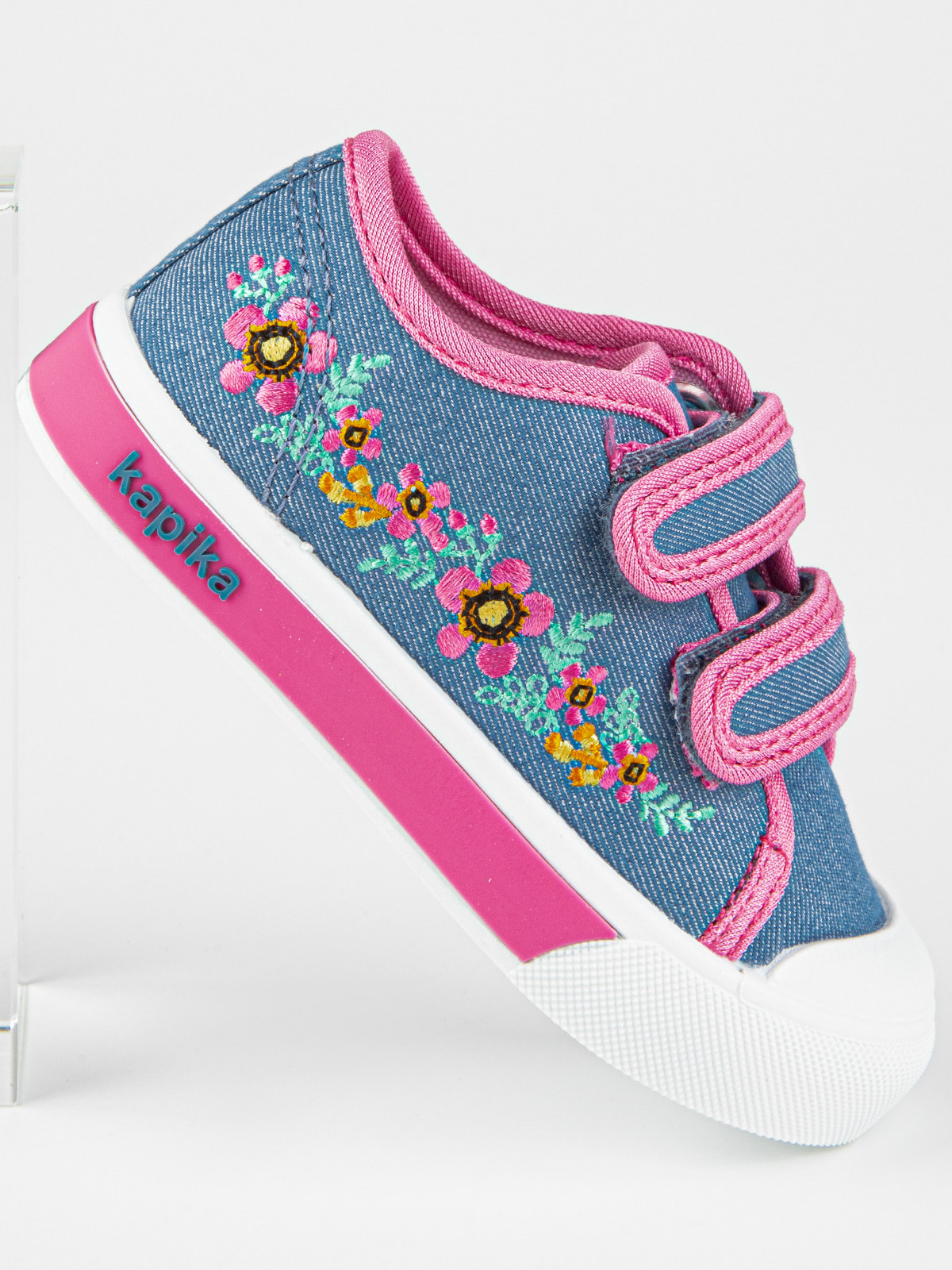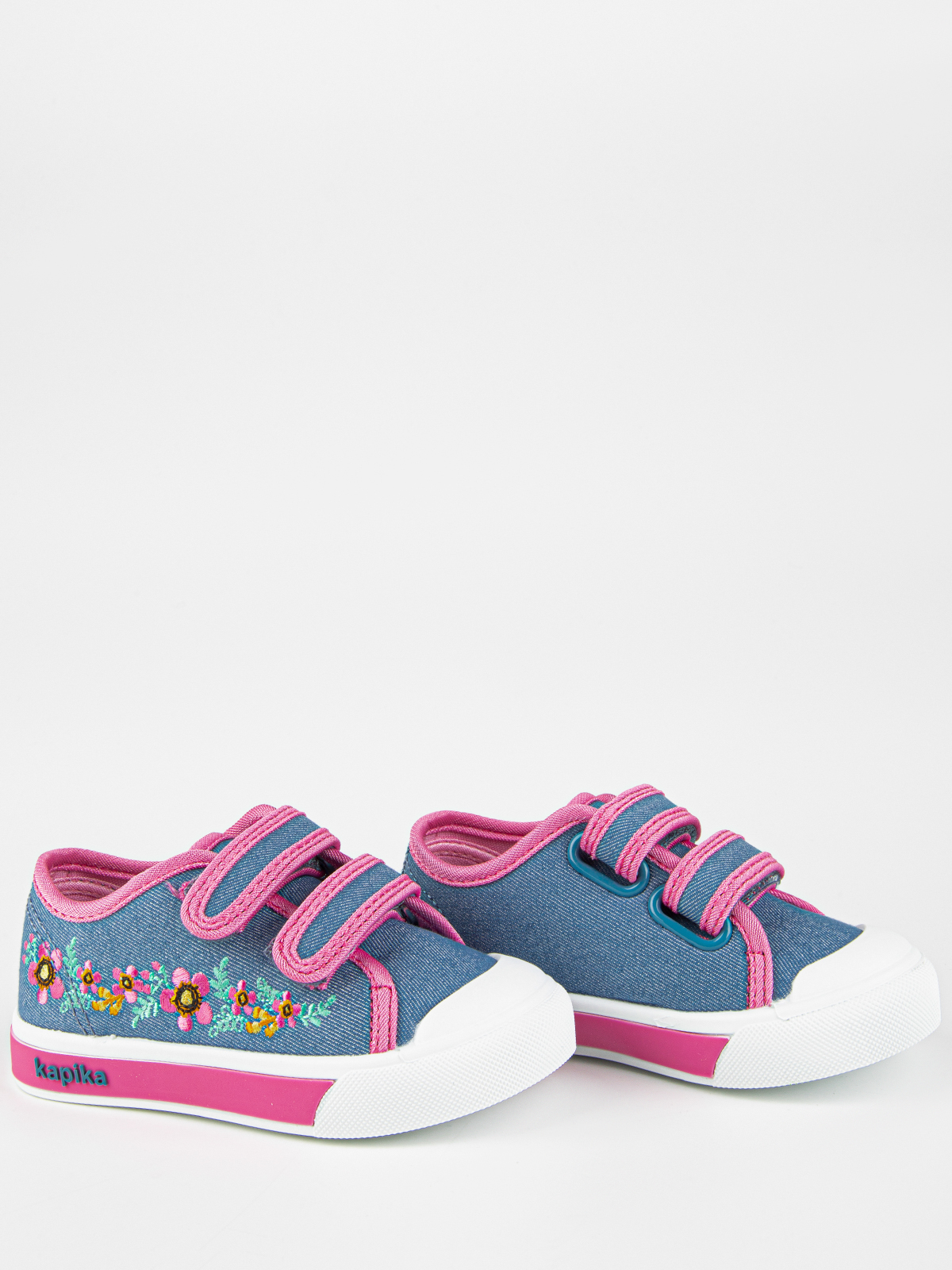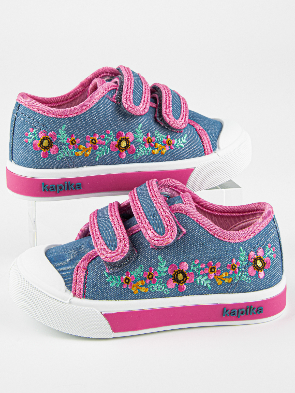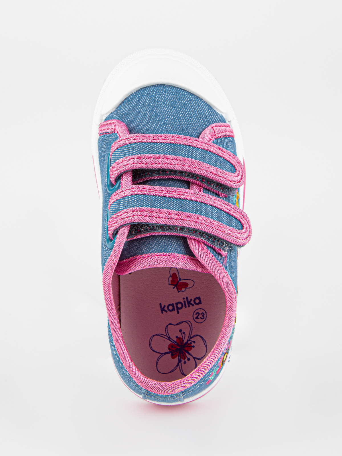 Кеды Капика из плотного хлопка с застежками-липучками и принтом обязательно понравятся каждой девочке. Подкладка из хлопка, гибкая подошва с защищенной носовой частью из ПВХ и кожаная стелька обеспечивают комфорт и удобство при ношении. Капика создает качественную и стильную обувь для маленьких модниц.