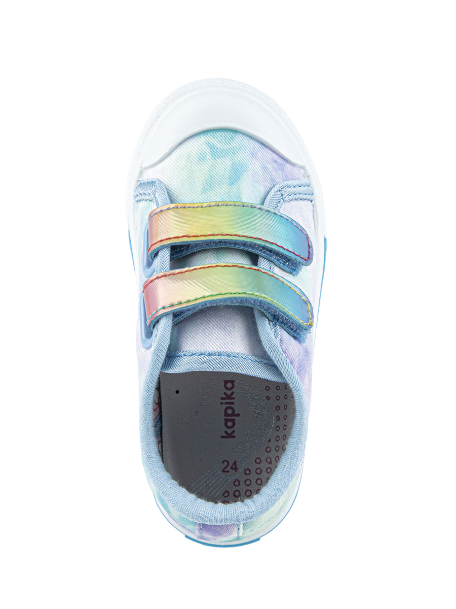 Кеды Капика из плотного хлопка с яркими застежками-липучками и принтом обязательно понравятся каждой девочке. Подкладка из хлопка, гибкая подошва с защищенной носовой частью из ПВХ и кожаная стелька обеспечивают комфорт и удобство при ношении. Капика создает качественную и стильную обувь для маленьких модниц.