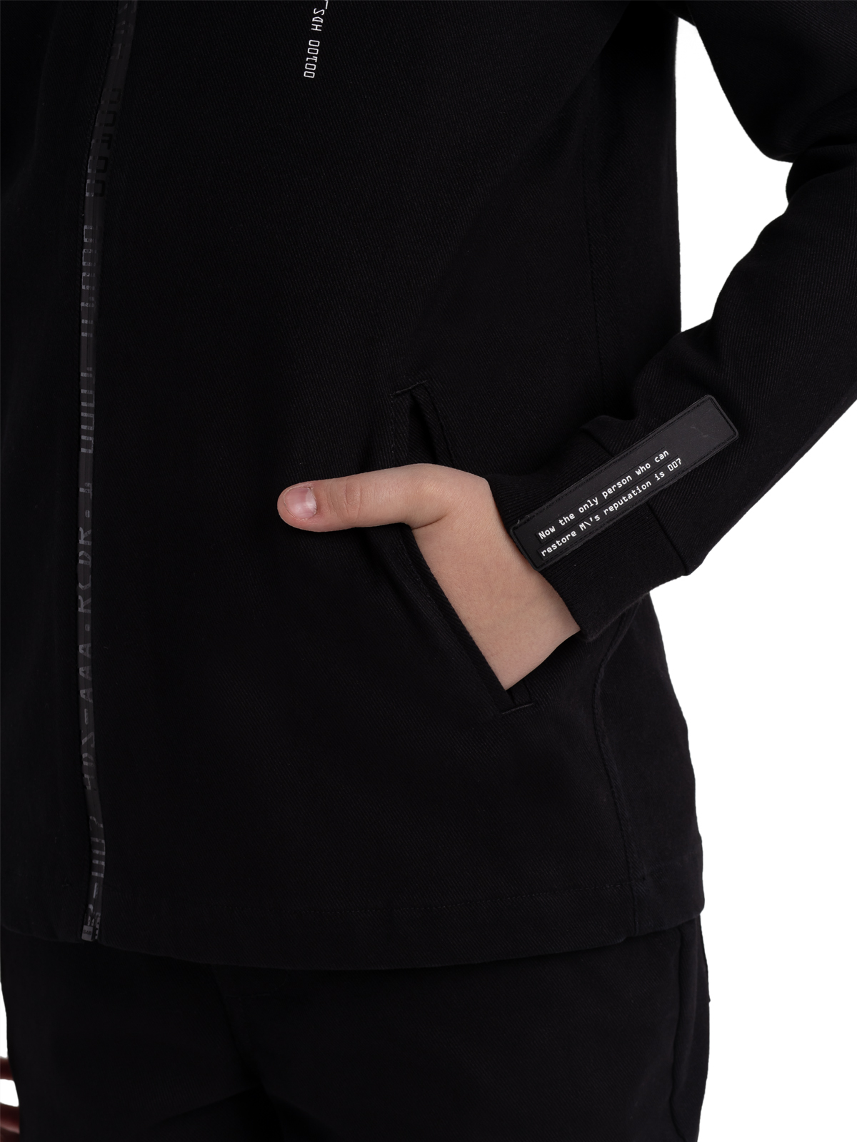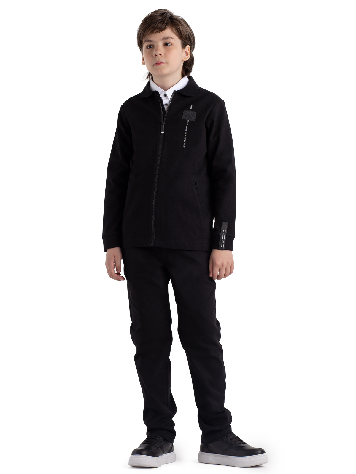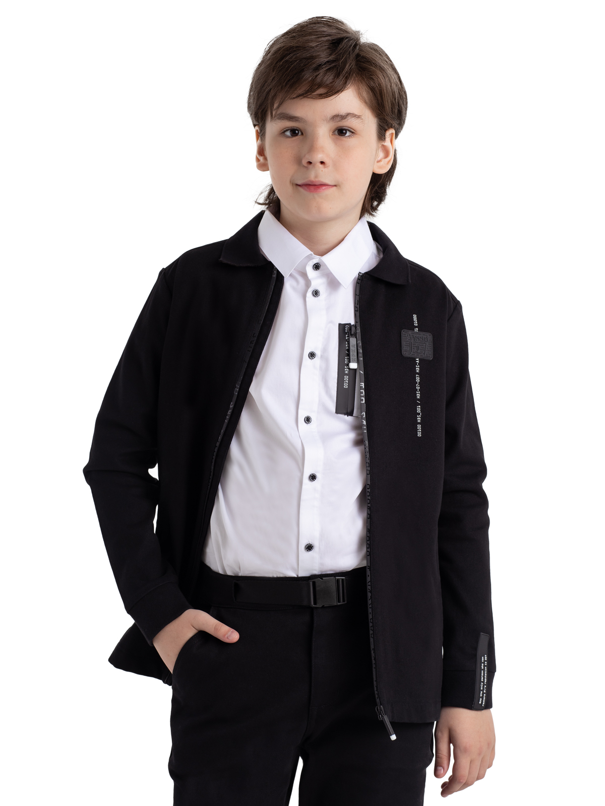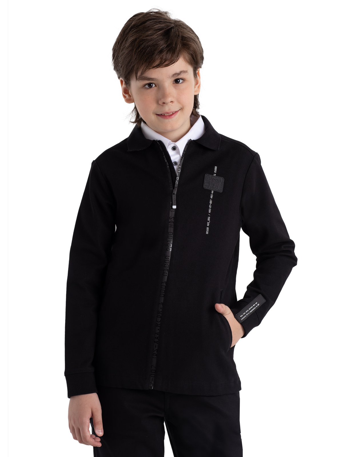Школьный пиджак на молнии выполнен из плотного хлопка черного цвета. Дополнен такими элементами дизайна как принтованная ветрозащитная молния, принт и силиконовый патч на груди, вставка с контрастным принтом на рукаве. Плотный высококачественный хлопок пиджака для школы прекрасно держит форму, не пилингуется, не теряет цвет после стирки. Универсальный силуэт подойдет на любую фигуру, материал школьного пиджака мало мнется, удобен в носке и не сковывает движения ребенка позволяя сосредоточиться на уроках.