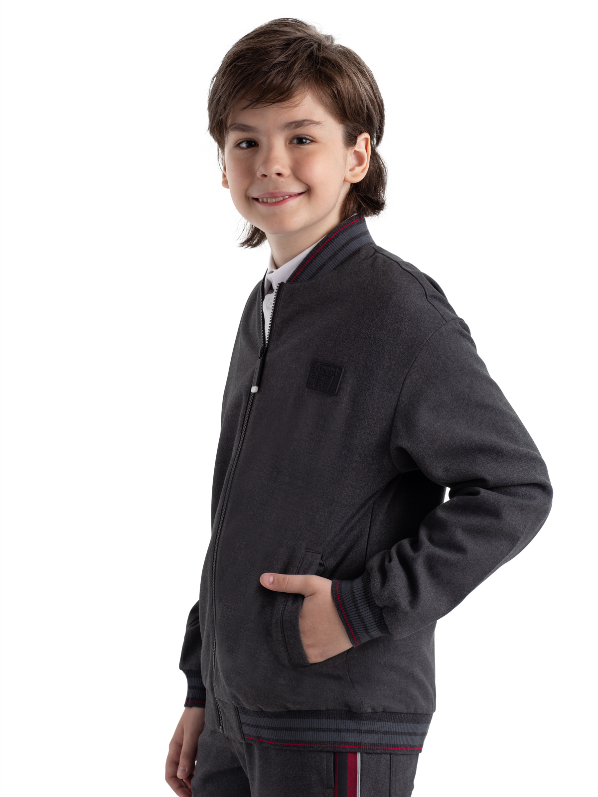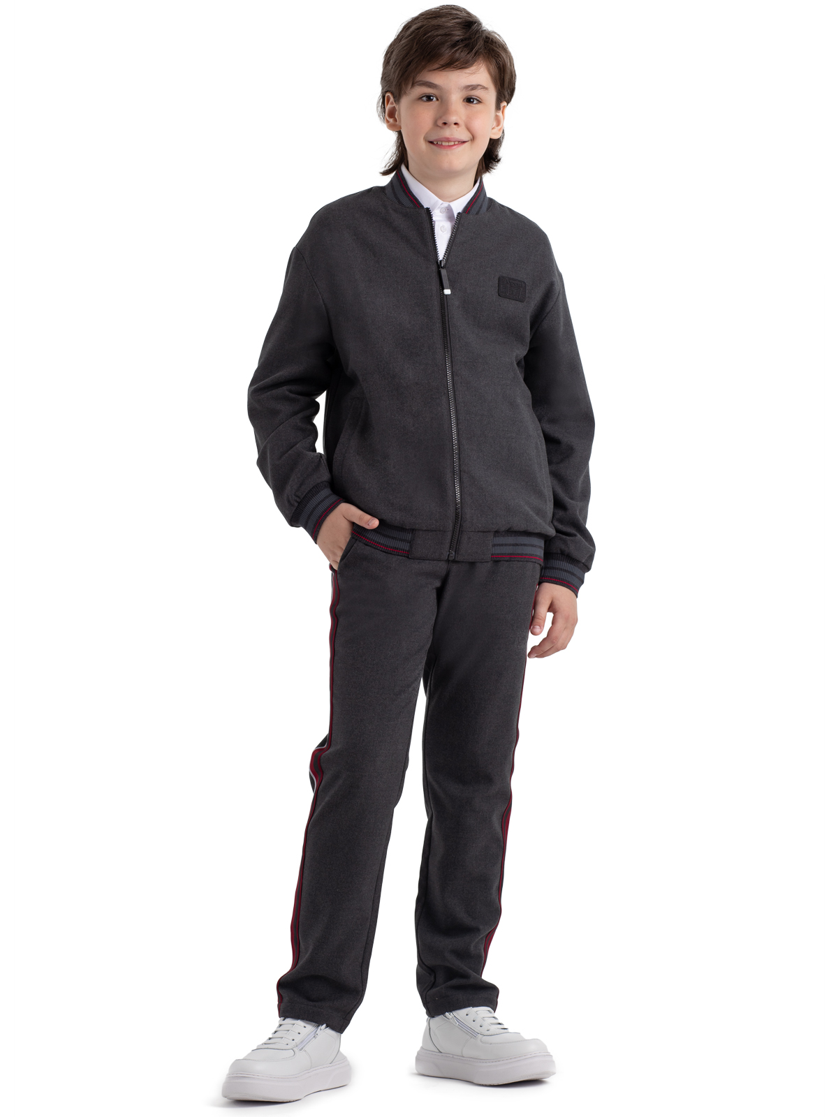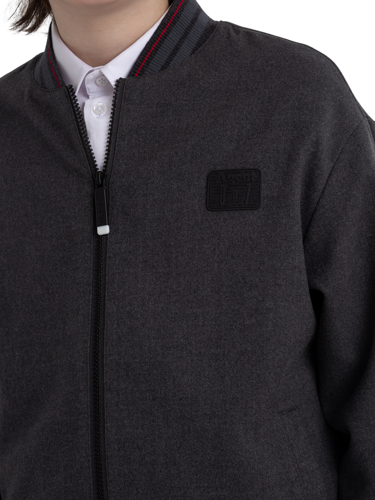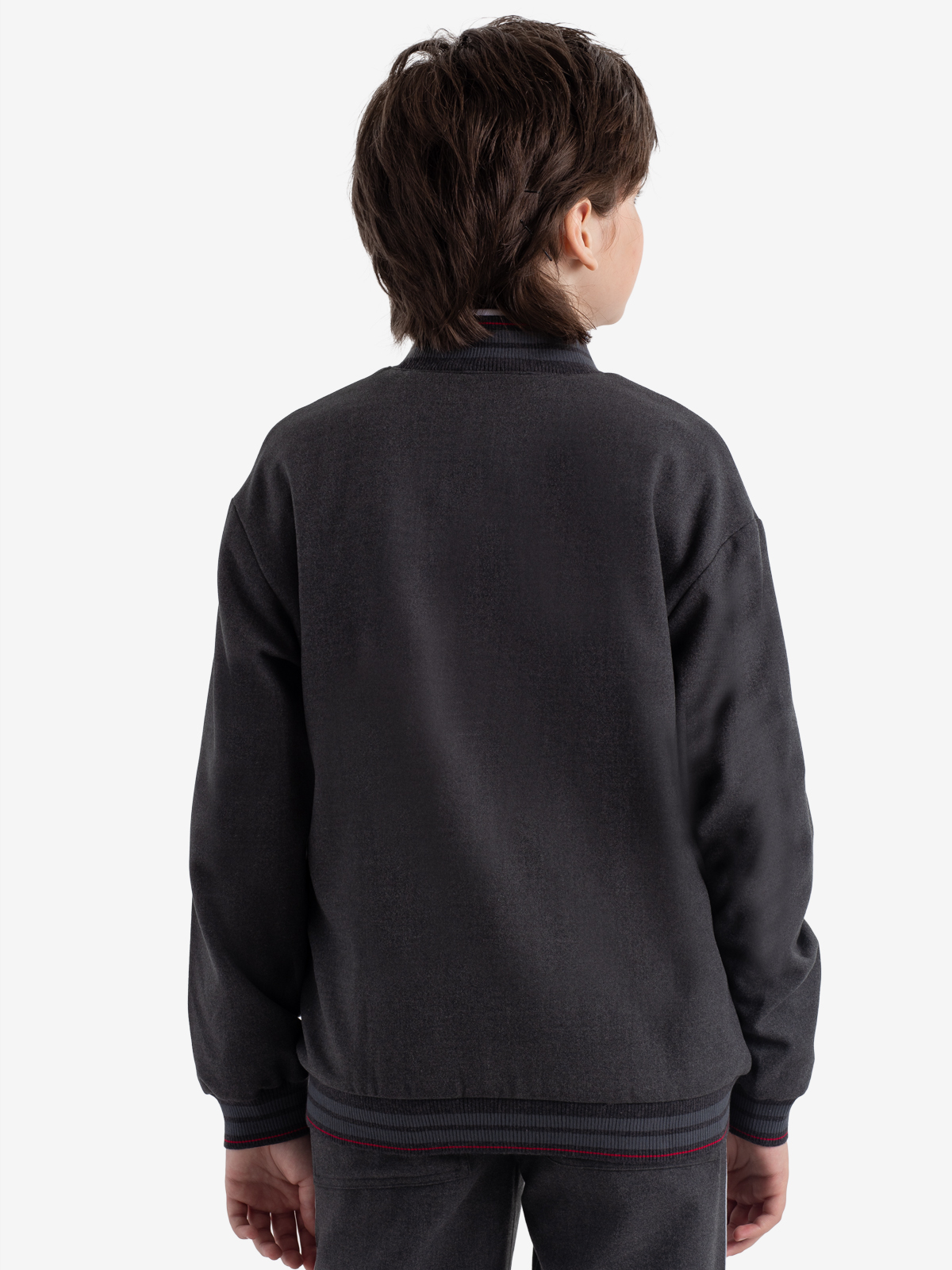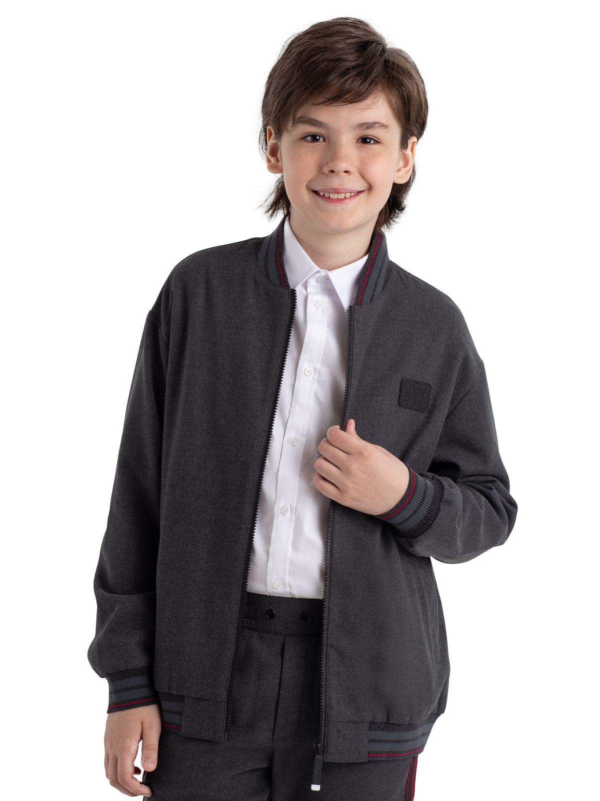 Школьный пиджак на молнии темно-серого цвета выполнен из качественной поливискозы, дополнен подкладкой. Ткань школьного пиджака отлично держит форму, не скатывается. Низ, воротник и манжеты пиджака для школы дополнены жаккардным рибом. Силиконовый патч на груди не деформируется при стирке. Модель имеет функциональные карманы. Свободный крой и универсальный силуэт делают пиджак подходящим для любой фигуры, сочетать модель с рубашками и футболками, свитерами и лонгсливами.