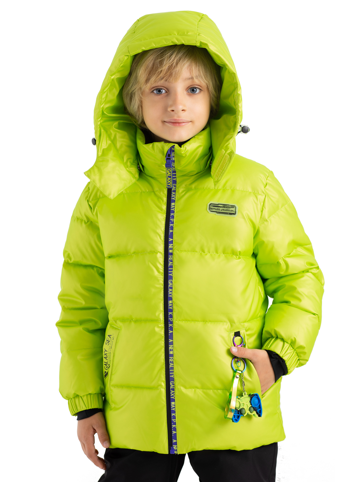 В этой стильной куртке ребенок будет не только защищен от всех зимних непогод, но и выглядеть ярко и смело. Пуховик яркого цвета изготовлен из ткани с водоотталкивающим покрытием, которая надежно защищает от дождя и ветра, а утеплитель из искусственного пуха 300г/м2 не даст ребенку замерзнуть. Пуховик со съемным капюшоном, на регулируемой кулисе, имеет снежную «юбку», служащую для исключения попадания снега при падении или катания по глубокому снегу, а также – для защиты от ветра. Центральная молния – водостойкая и прекрасно защищает от ветра, карманы на липучке. Куртка дополнена тематическими принтами на карманах, также имеются светоотражающий элемент на спинке, защищающий в темное время суток и стильный силиконовый патч на груди, также имеется съемный брелок с функциональной игрушкой pop-it. Эластичные манжеты из лайкры с прорезью для большого пальца сохраняют тепло. Рефлективная подкладка с фольгированным принтом (OMNI-HEAT) эффективно удерживает тепло внутри.