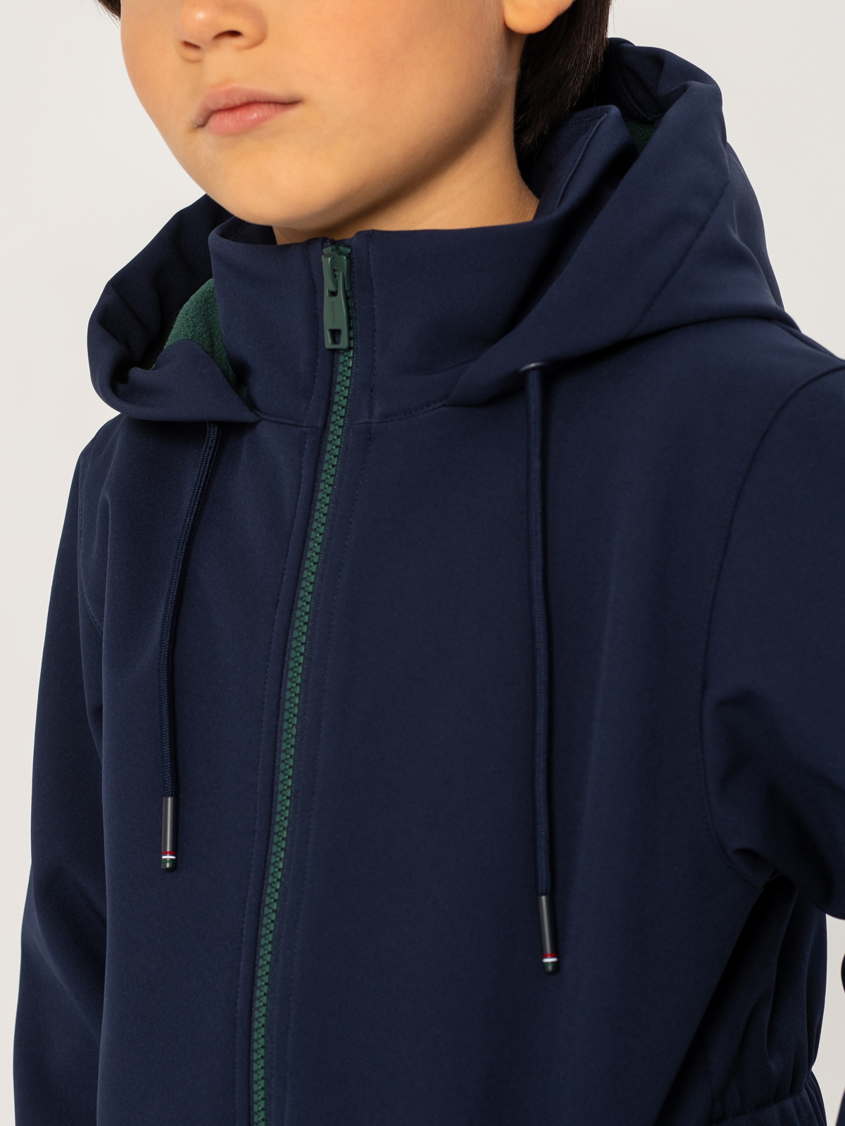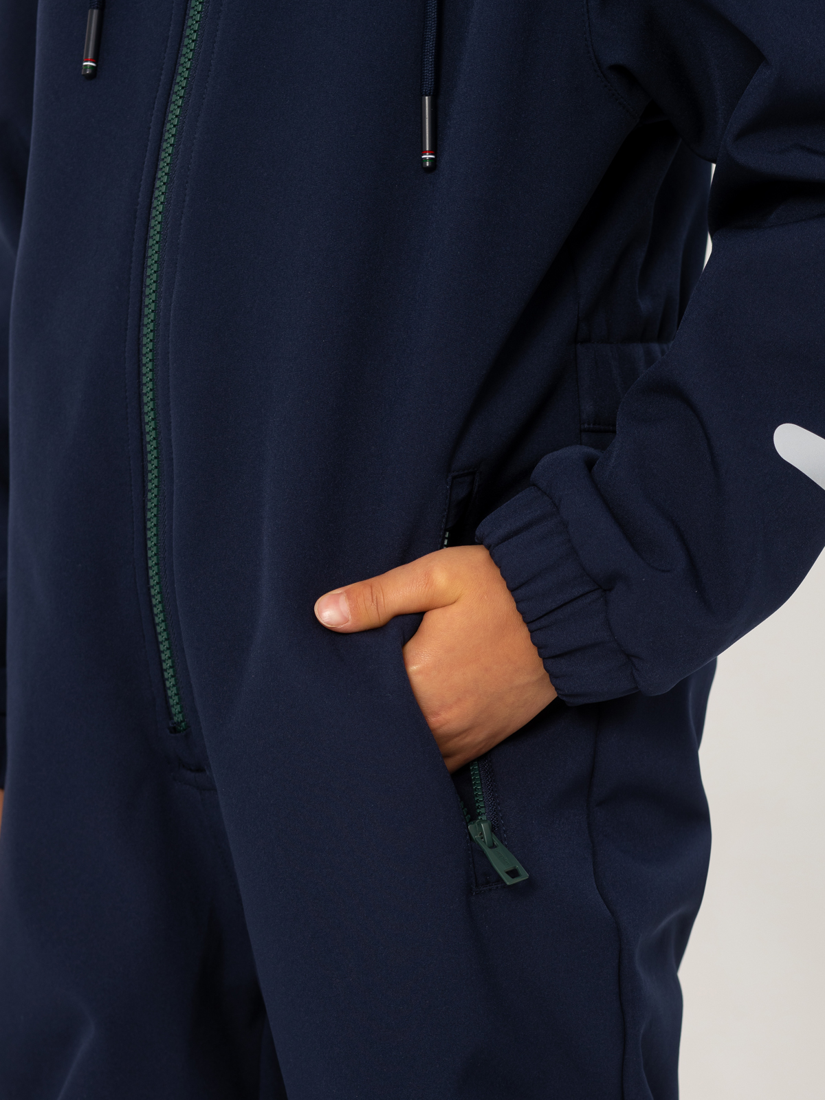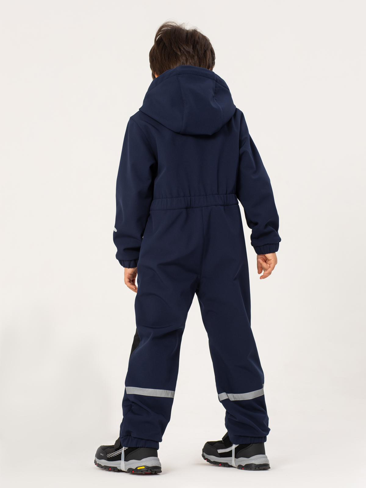 Демисезонный комбинезон для мальчиков выполнен из современного материала софтшелл с водонеппроницаемой мембраной 5000мм/5000г/м2/24ч в практичном тёмно-синем цвете. Удобная застёжка-молния обеспечивает лёгкое надевание, а регулируемый капюшон на кулиске надёжно защищает от ветра и осадков. Мягкая подкладка из микрофлиса создаёт дополнительный комфорт при носке. Модель оснащена светоотражающими элементами для безопасности ребёнка в тёмное время суток. Комбинезон отлично подходит для прогулок и активного отдыха в межсезонье, сочетая в себе практичность, комфорт и современный дизайн.