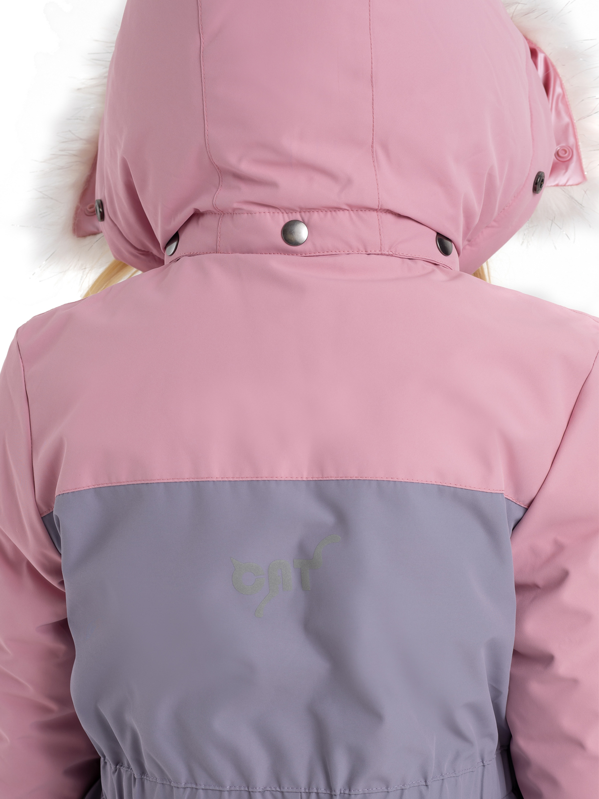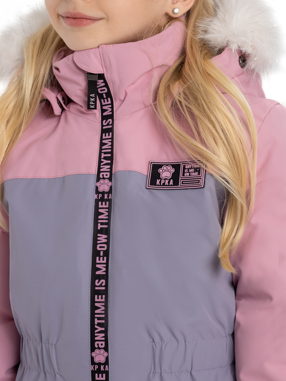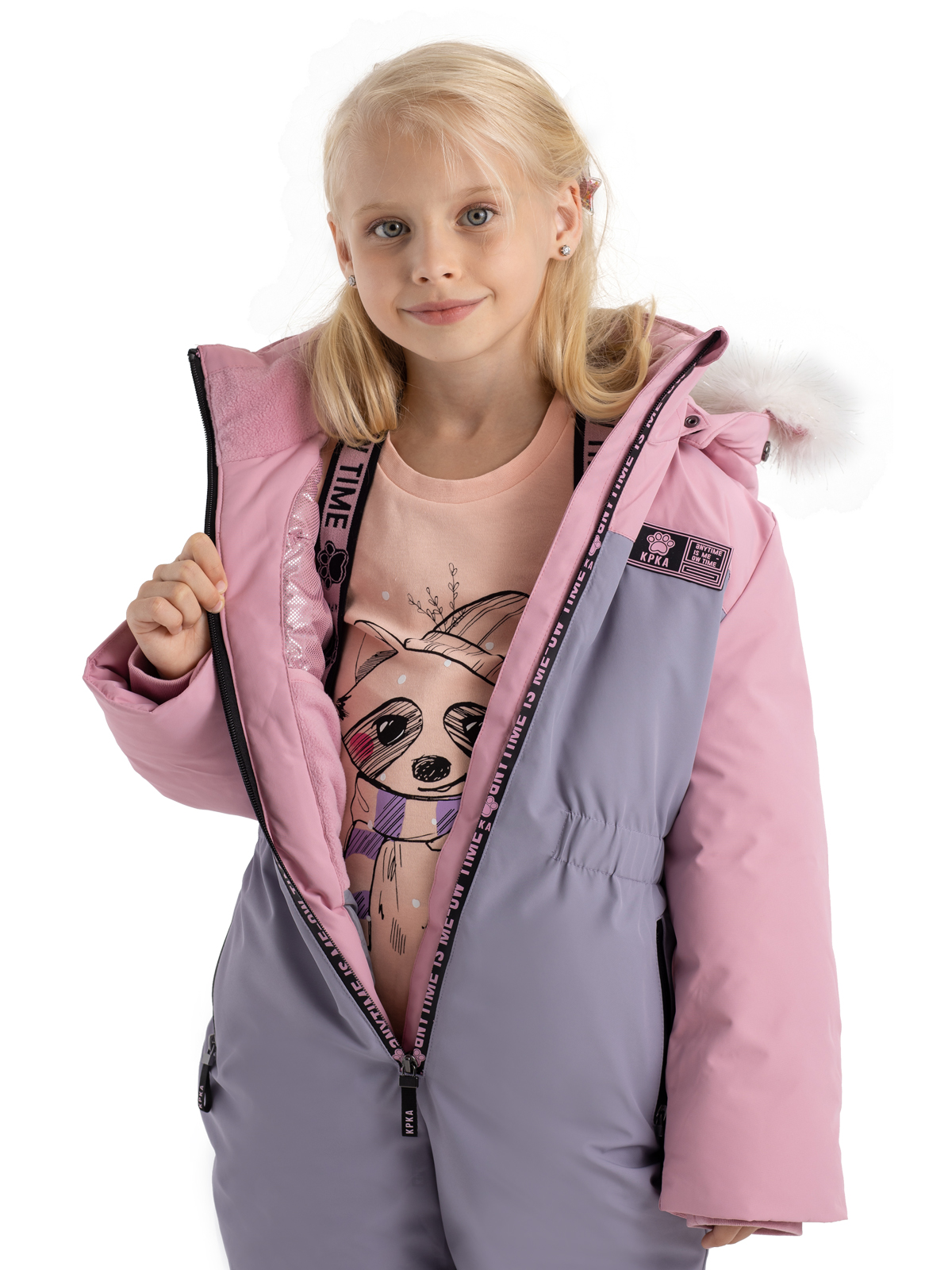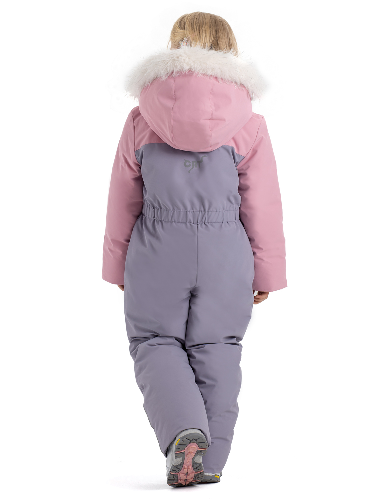 Зимний двухцветный комбинезон для девочки из тканей с водостойким PU-покрытием. От холодов защитит утеплитель - искуственный пух 200 г/м2 и дополнительное утепление синтепоном, а рефлективная подкладка с фольгированным принтом (OMNI-HEAT) эффективно удержит тепло внутри. Комбинезон дополнен подкладкой из мягкого микрофлиса в воротнике и верхней части изделия. Съемный капюшон имеет регулируемую кулису по краюи декорирован искуственным съемным мехом. Высокий воротник, манжеты из риба и центральная ветрозащитная, непромокаемая молния с внутренней планкой надежно защищают от ветра. Кулиса на талии - с резинкой для удобства прилегания. Комбинезон имеет два боковых кармана. На комбинезоне имеются светоотражающий принт на спине, и нашивные светоотражающие элементы по низу брючин для защиты ребенка в темное время суток.
