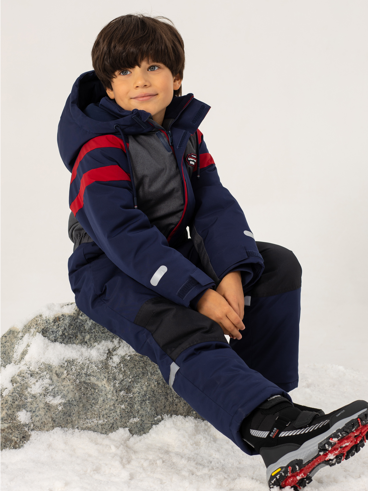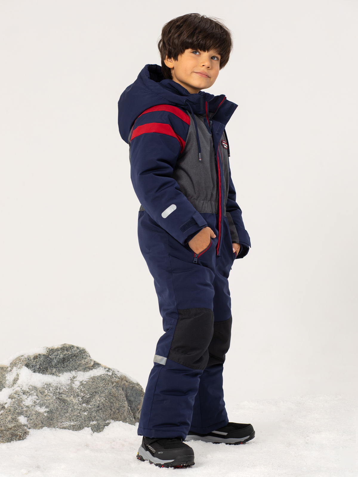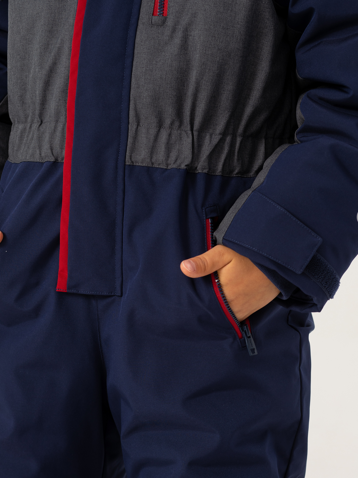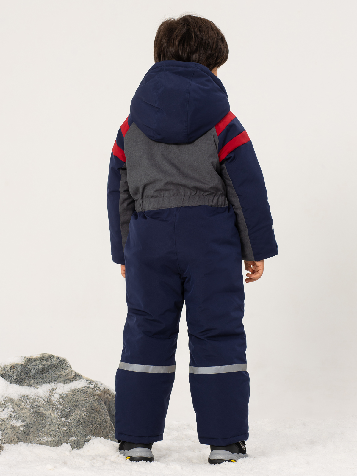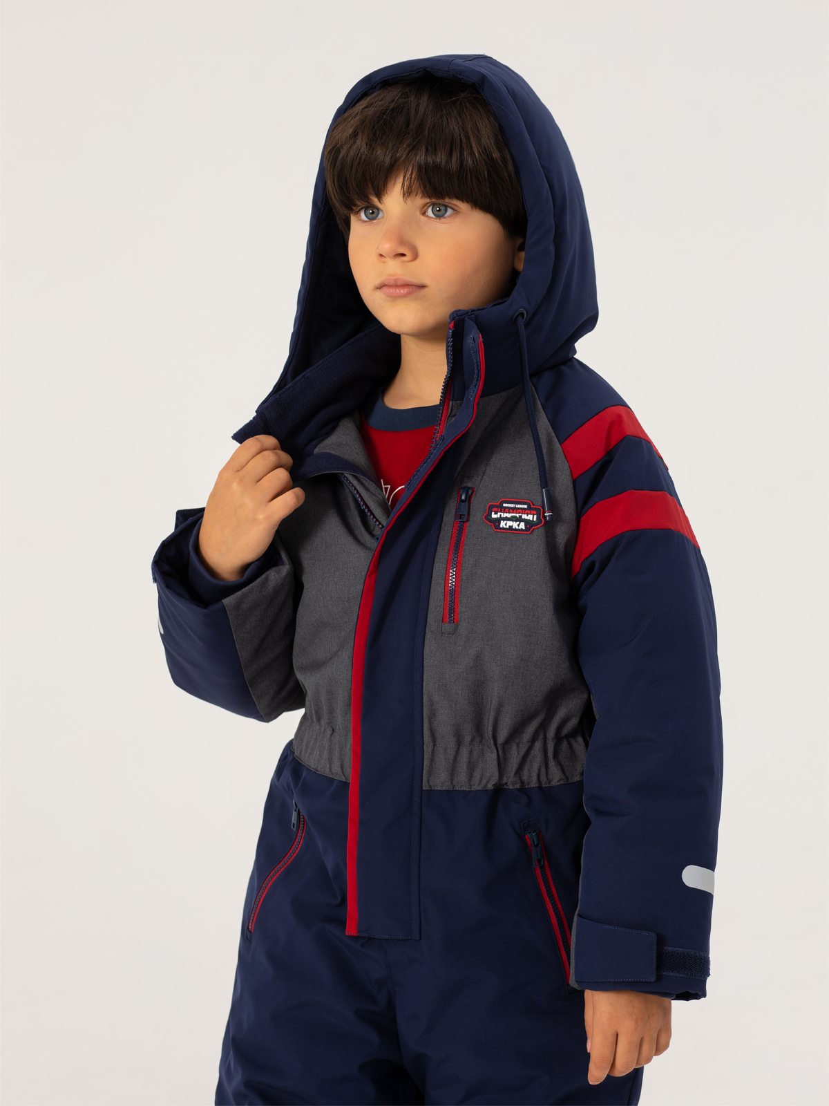 Утепленный комбинезон выполнен из прочного текстиля с водонипронецаемой мембраной 5000мм/5000г/м2/24ч. Утеплитель: Dupont Sorona 240 г/м2. Модель прямого кроя. Детали: ветрозащитный клапан с липучками, застежка на молнии, регулируемые капюшон, низ брючин, талия и манжеты, внутренние эластичные манжеты с отверстием для большого пальца, внутренние снежные гетры с силиконовыми полосками, силиконовые петли для фиксации за подошву обуви, светоотражающие элементы, съемный регулируемый капюшон.