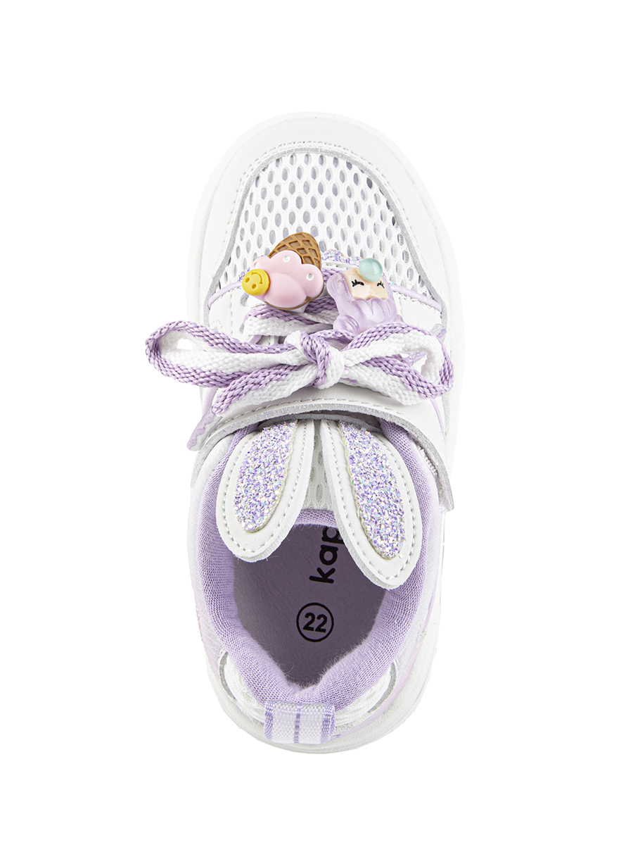 Стильные кроссовки не оставят равнодушными даже самых требовательных модниц. Мягкий вентилируемый материал верха, легкая амортизирующая подошва в сочетании с современным дизайном – все это делает данную модель незаменимым спутником любого ребенка. Модель оснащена кожаной антибактериальной стелькой, которая не только эффективно поглощает влагу и неприятные запахи, но и снижает ударную нагрузку