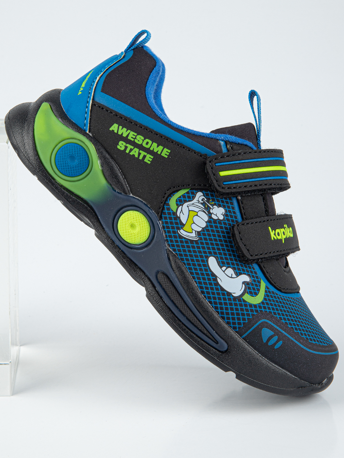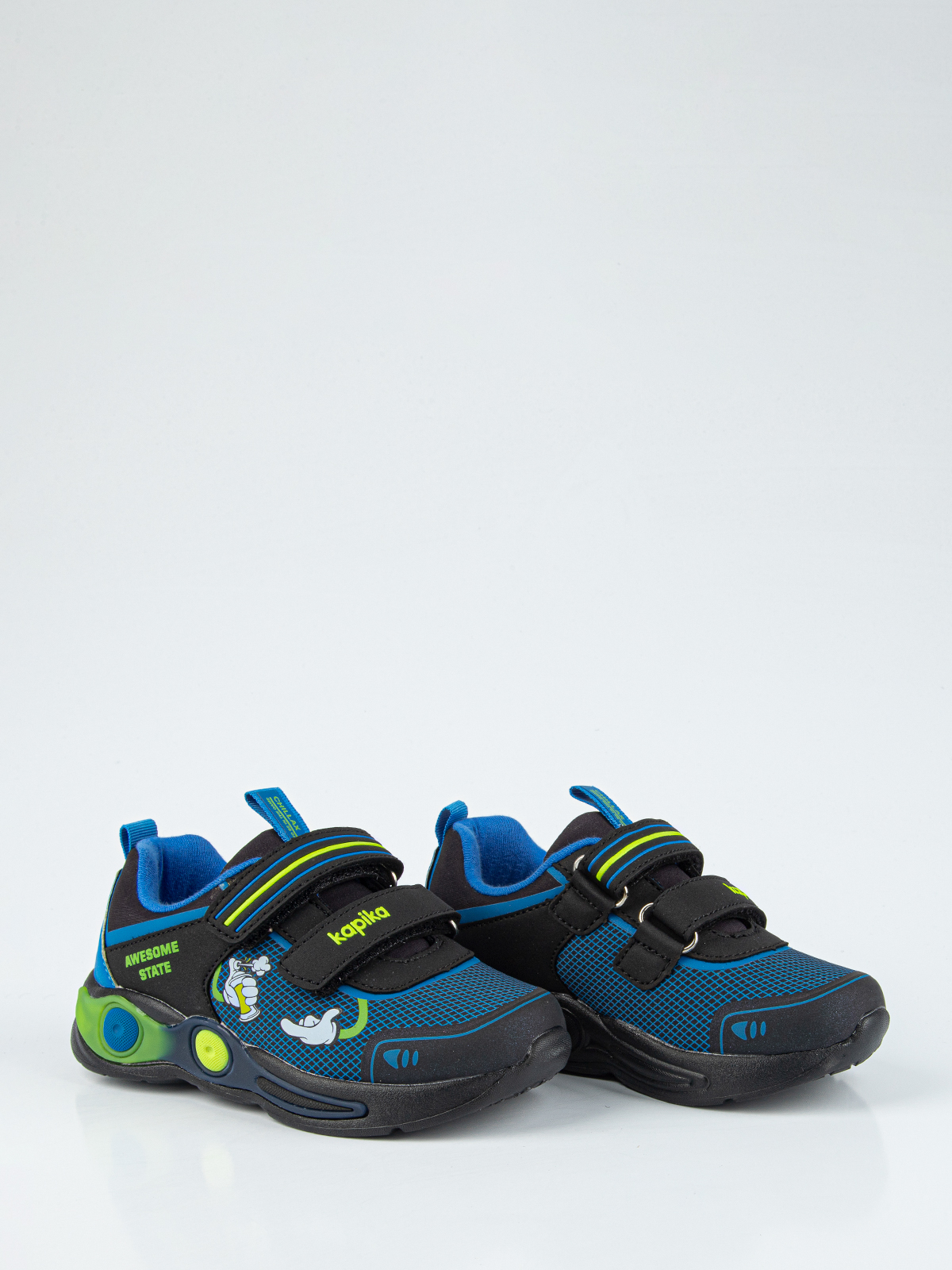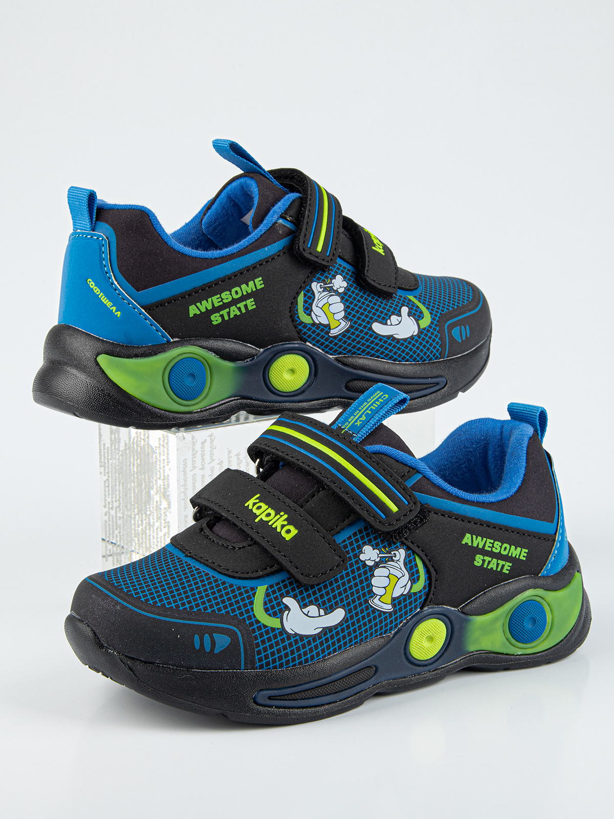 Эта модель детских кроссовок изготовлена из водоотталкивающего материала софтшелл, который обеспечивает надежную защиту ног ребенка в любых погодных условиях. Дизайн кроссовок продуман до мелочей, чтобы удовлетворить вкусы самых требовательных клиентов. Носочная часть кроссовок защищена, материал верха мягкий и приятный на ощупь, а легкая амортизирующая подошва обеспечивает комфорт при ходьбе. Кожаная антибактериальная стелька эффективно поглощает влагу, неприятные запахи и снижает нагрузку на ноги ребенка при ходьбе.