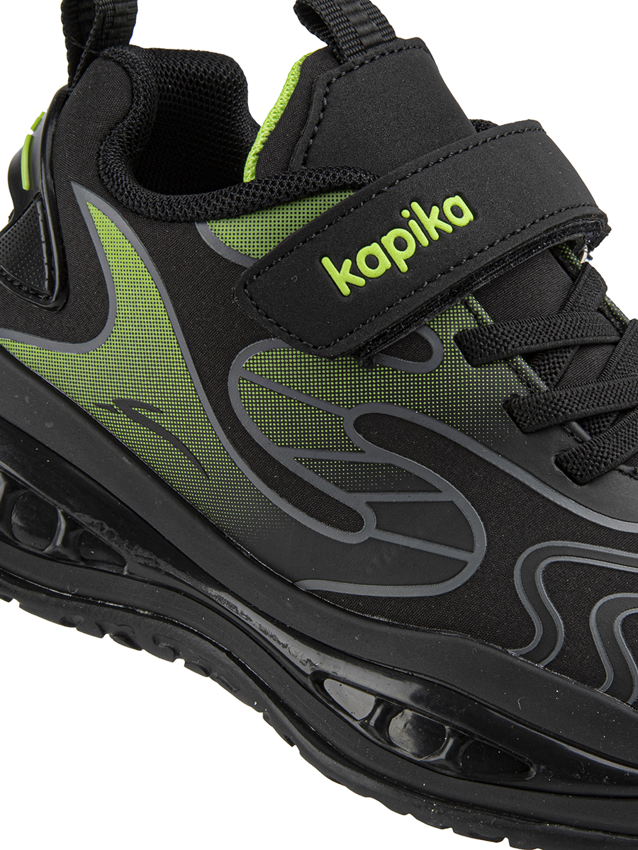 Эта модель детских кроссовок изготовлена из водоотталкивающего материала софтшелл, который обеспечивает надежную защиту ног ребенка в любых погодных условиях. Дизайн кроссовок продуман до мелочей, чтобы удовлетворить вкусы самых требовательных клиентов. Носочная часть кроссовок защищена, материал верха мягкий и приятный на ощупь, а легкая амортизирующая подошва обеспечивает комфорт при ходьбе. Кожаная антибактериальная стелька эффективно поглощает влагу, неприятные запахи и снижает нагрузку на ноги ребенка при ходьбе.